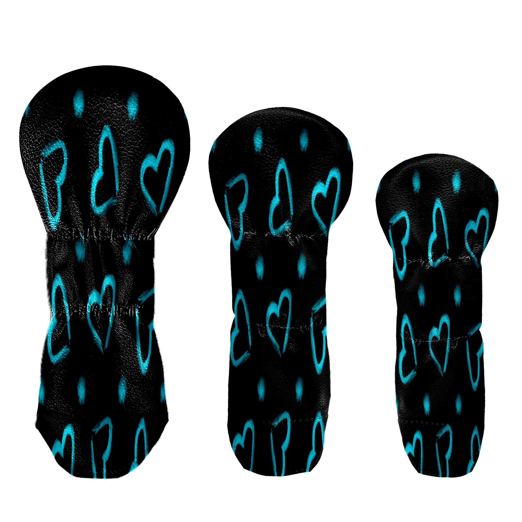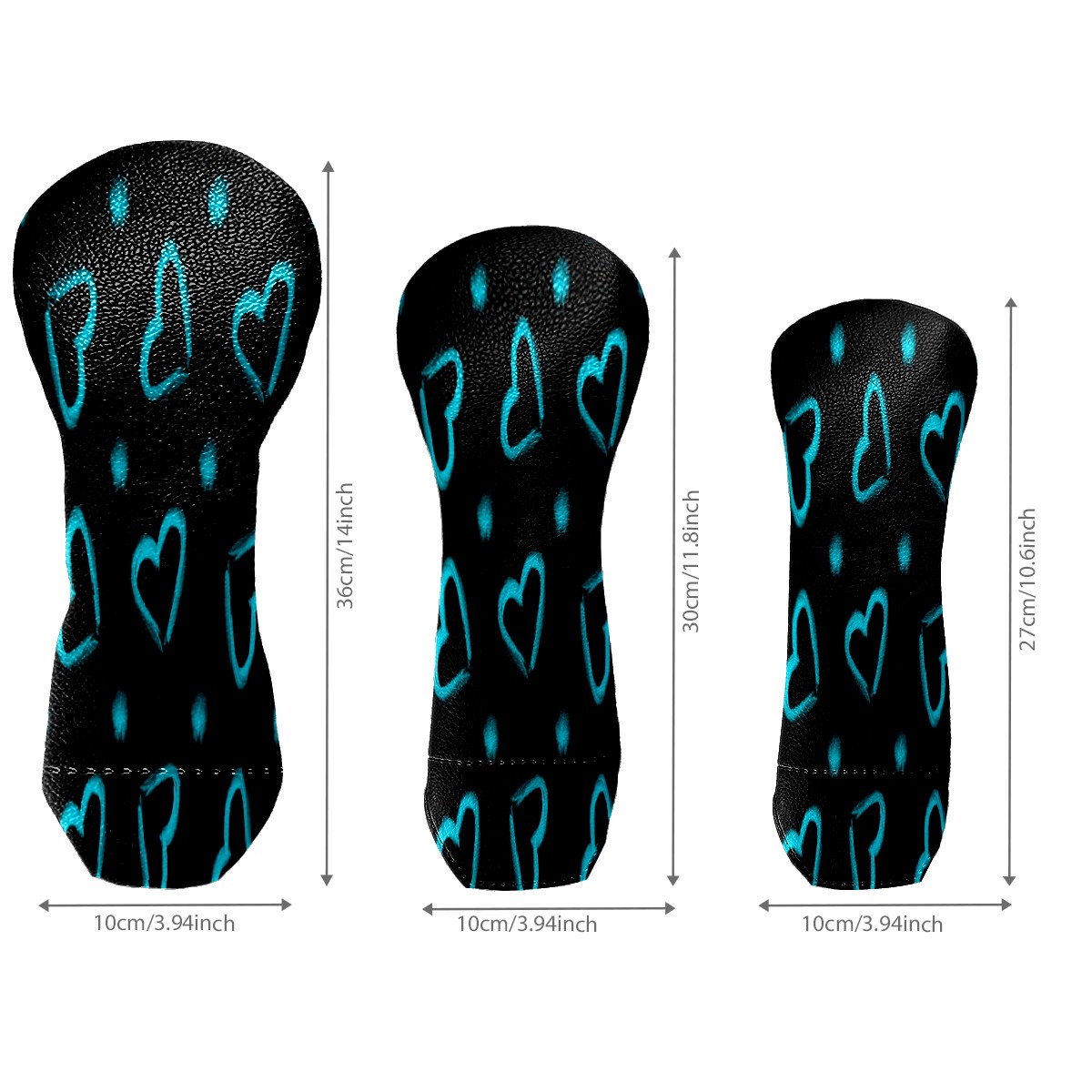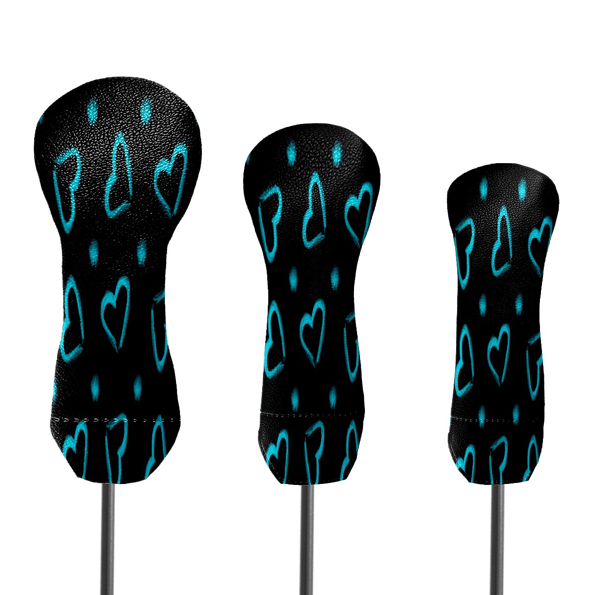PU Leather Golf Putter Head Covers for Driver, Fairway Wood & Hybrid Clubs, Unisex, Fits All Brands Black And Blue Valentines Day