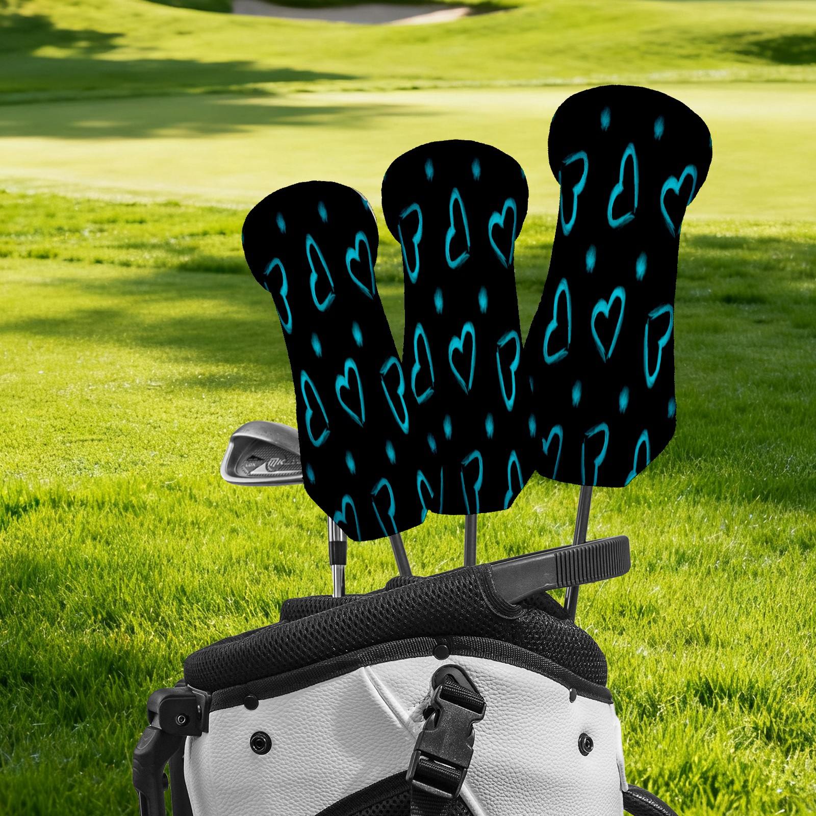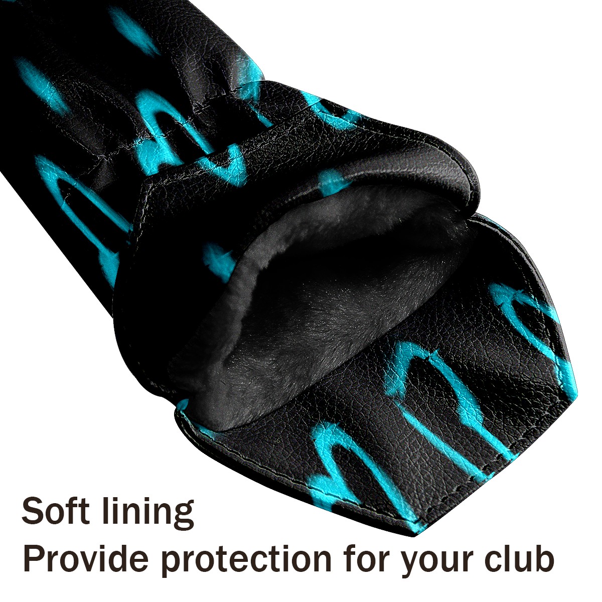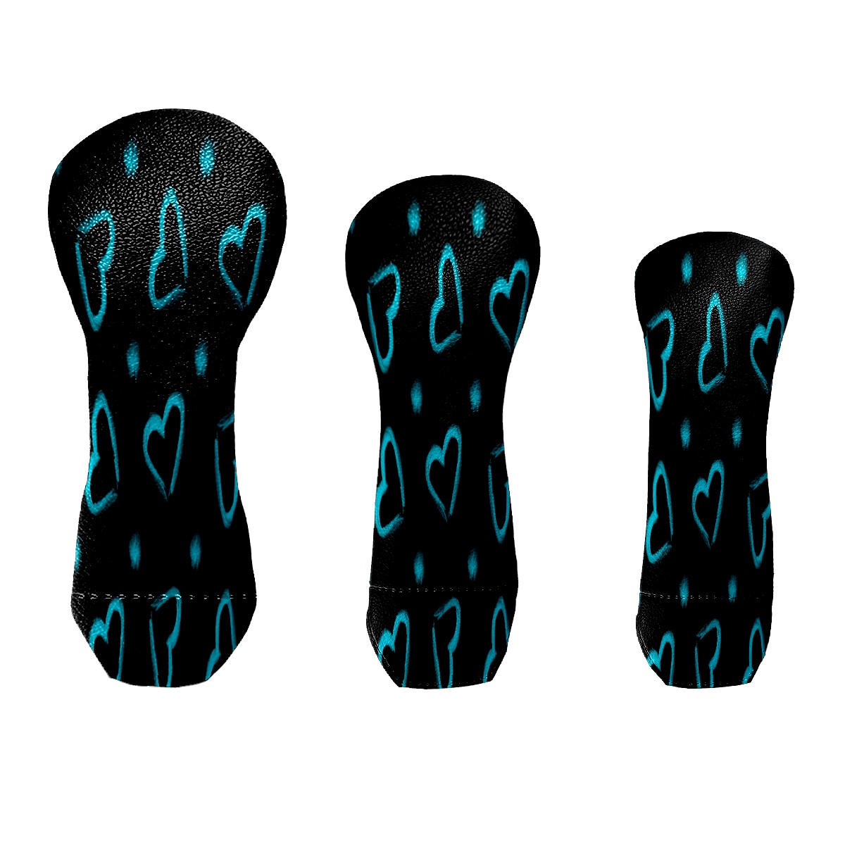 PU Leather Golf Putter Head Covers for Driver, Fairway Wood & Hybrid Clubs, Unisex, Fits All Brands Black And Blue Valentines Day