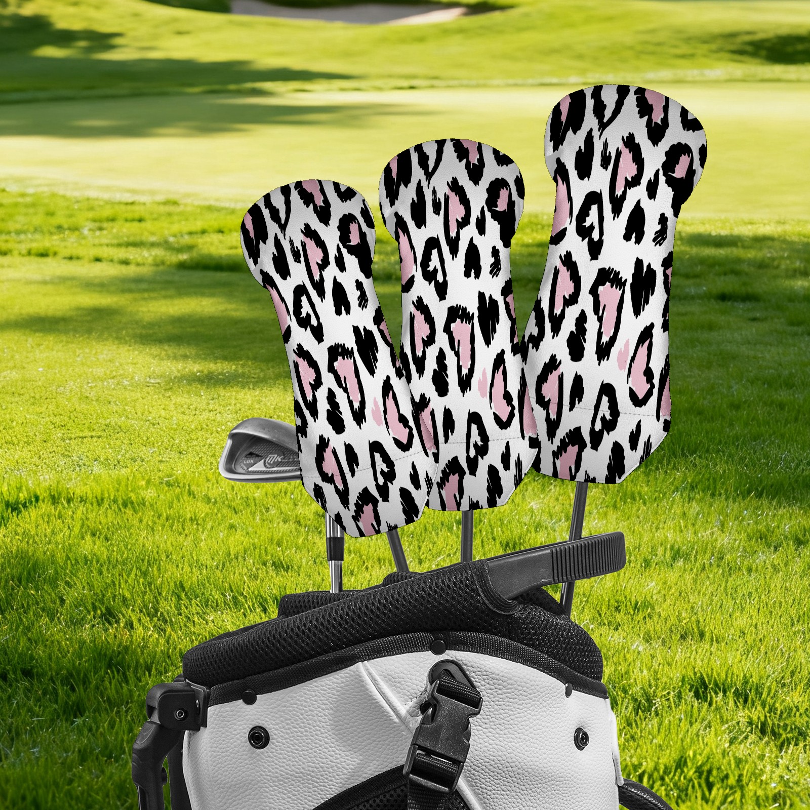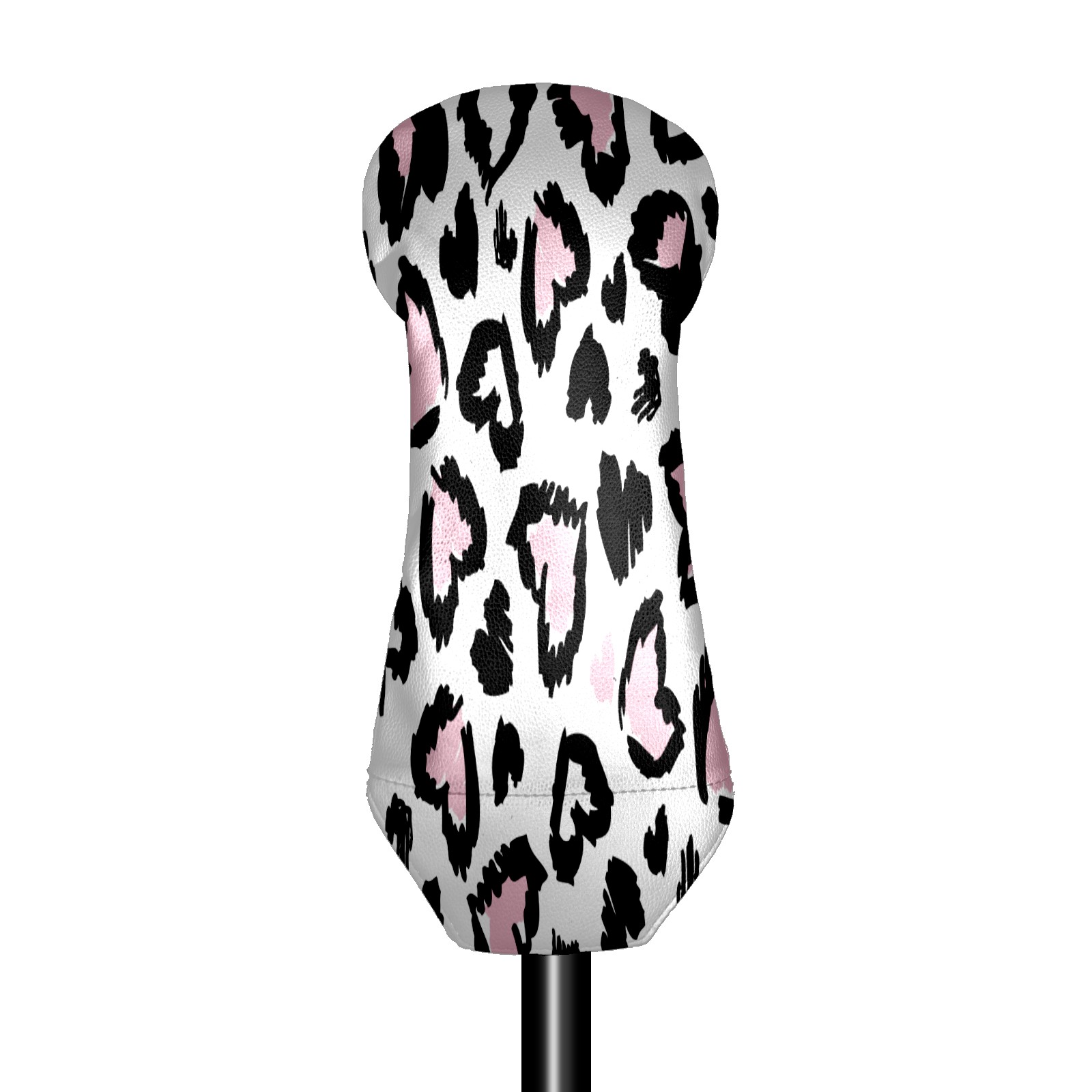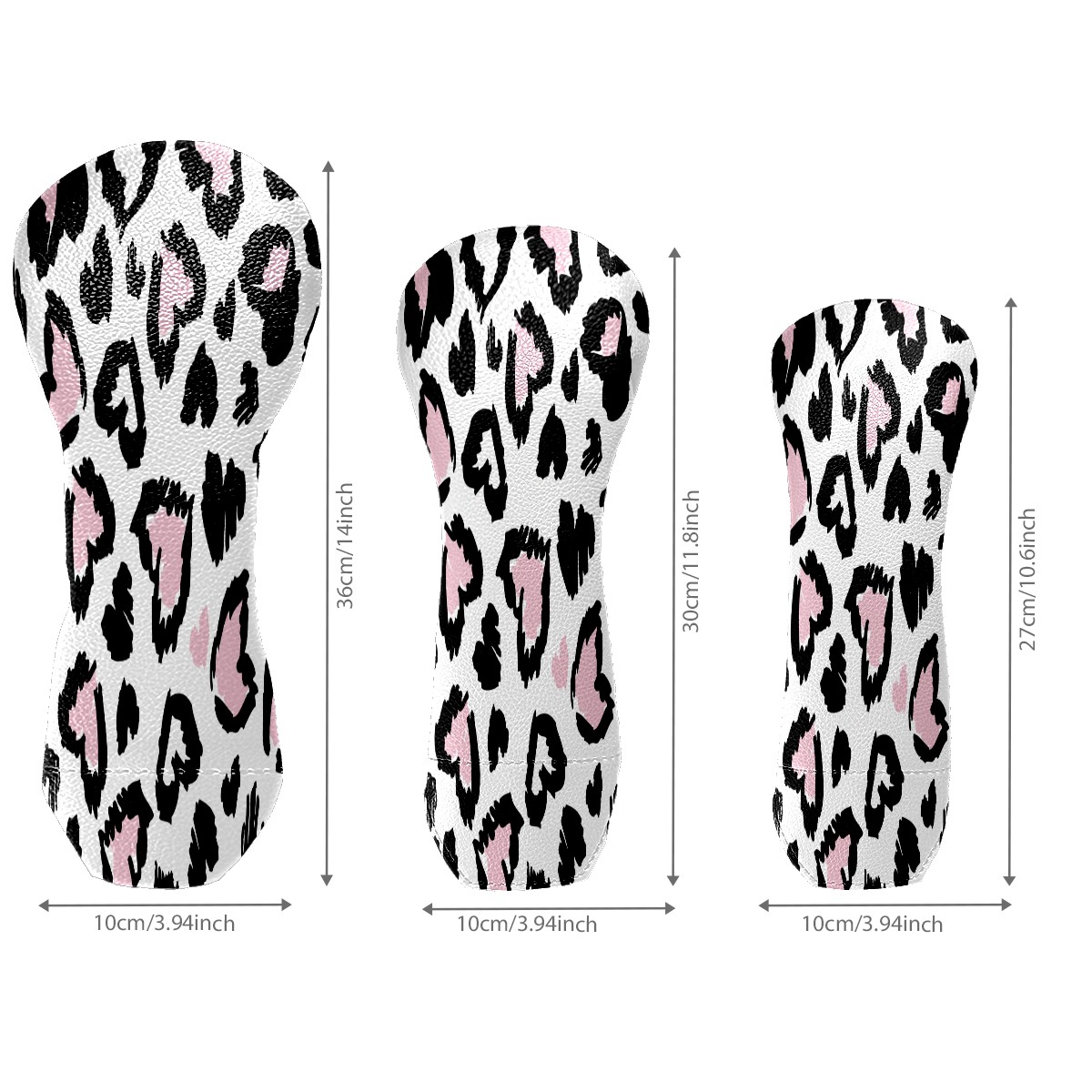PU Leather Golf Putter Head Covers for Driver, Fairway Wood & Hybrid Clubs, Unisex, Fits All Brands Loving Heart Leopard Print
