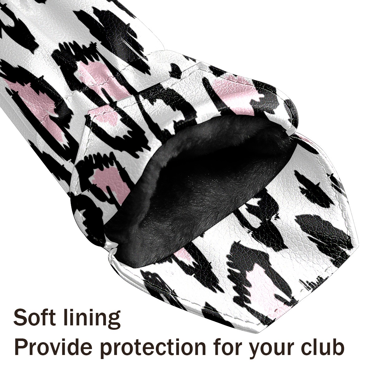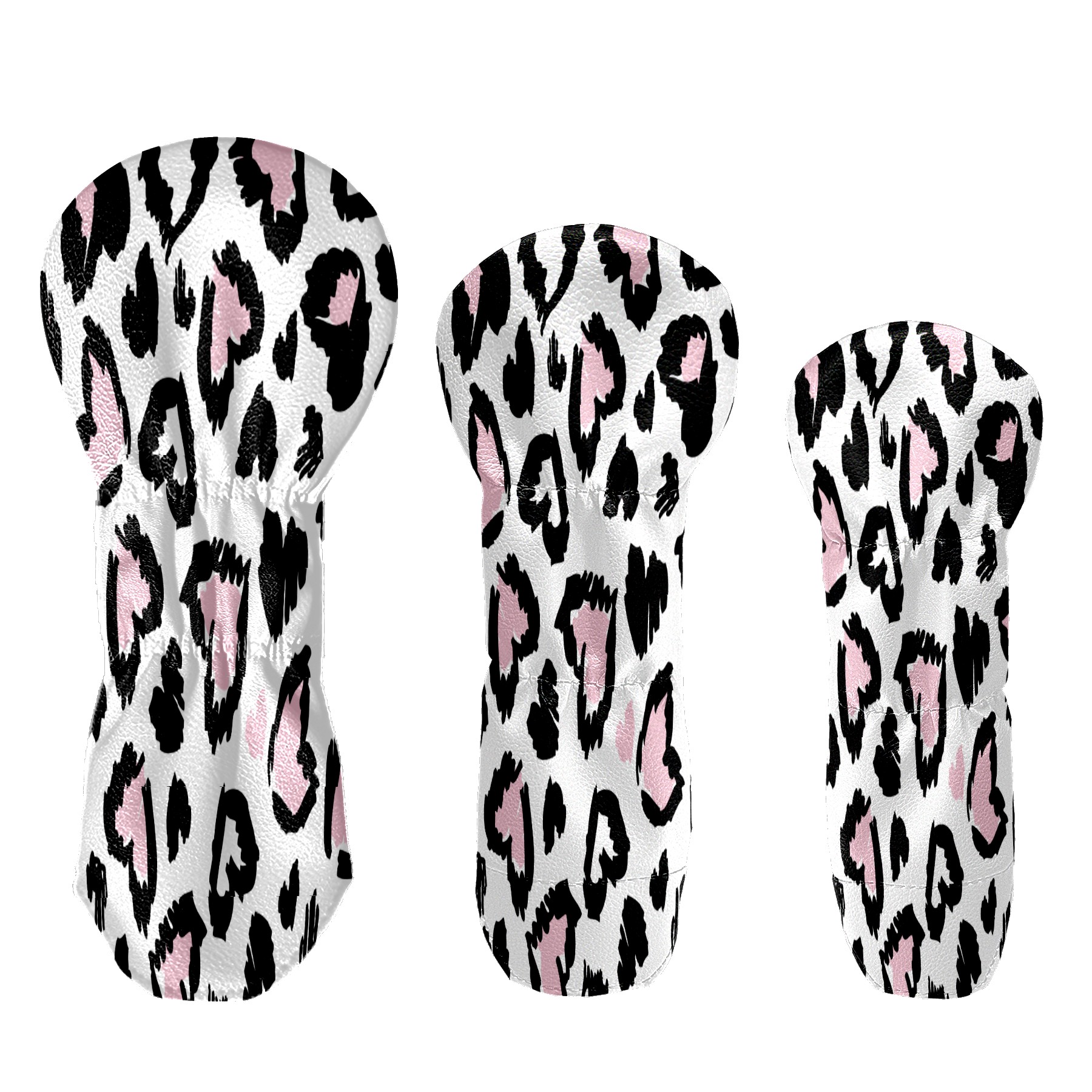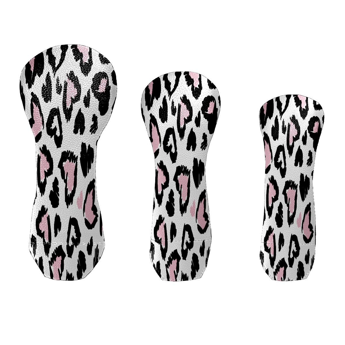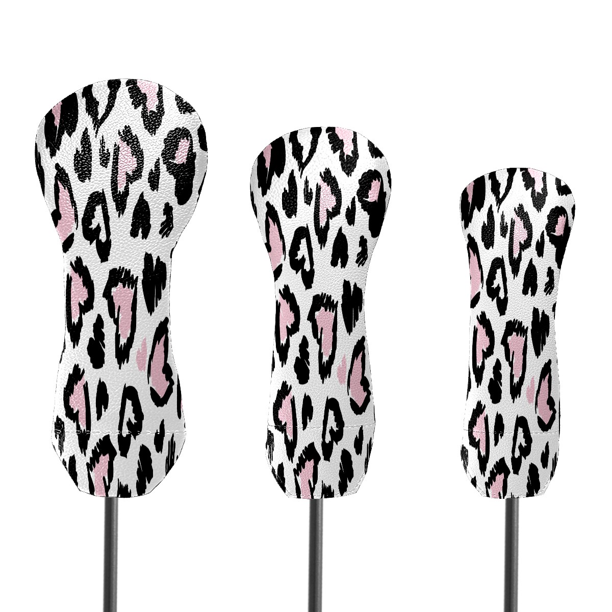 PU Leather Golf Putter Head Covers for Driver, Fairway Wood & Hybrid Clubs, Unisex, Fits All Brands Loving Heart Leopard Print