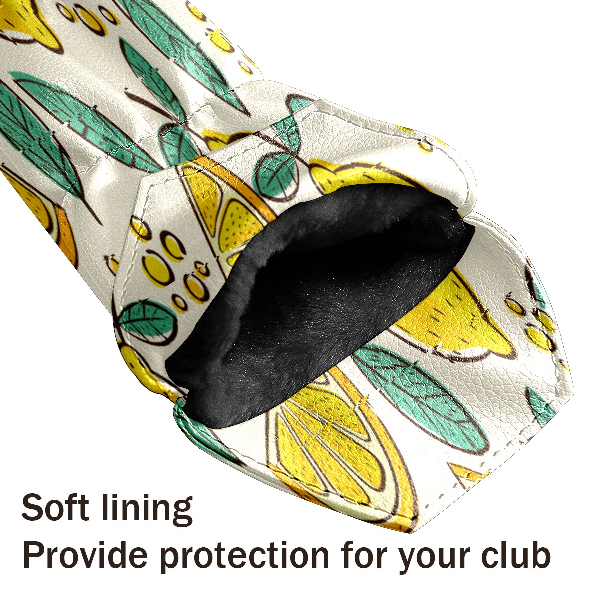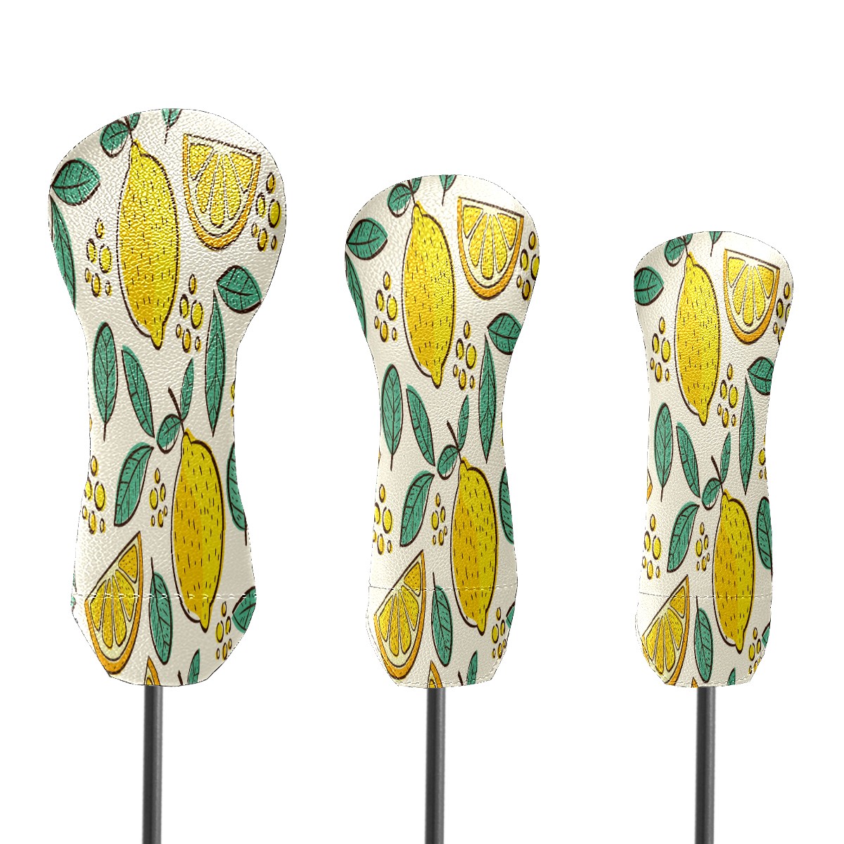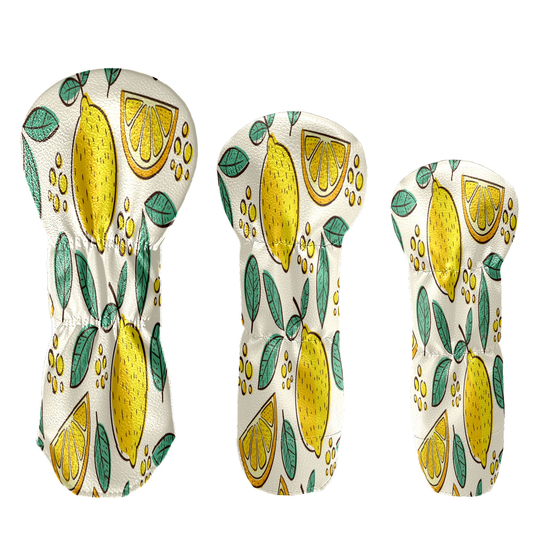 PU Leather Golf Putter Head Covers for Driver, Fairway Wood & Hybrid Clubs, Unisex, Fits All Brands Hand Drawn Summer Yellow Lemon Green Leaves