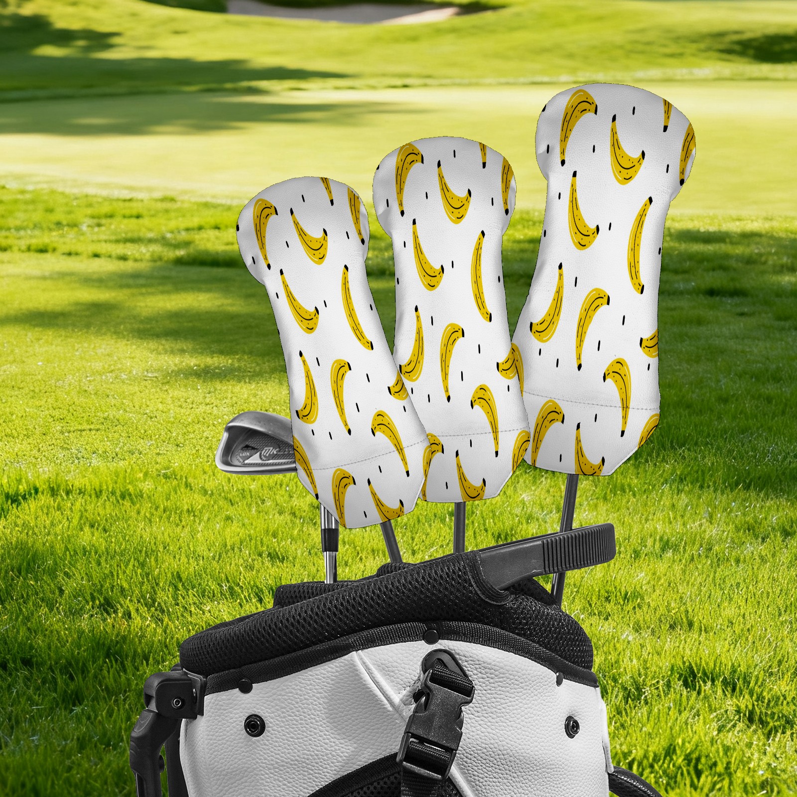 PU Leather Golf Putter Head Covers for Driver, Fairway Wood & Hybrid Clubs, Unisex, Fits All Brands Yellow Banana Pattern Summer Fruit