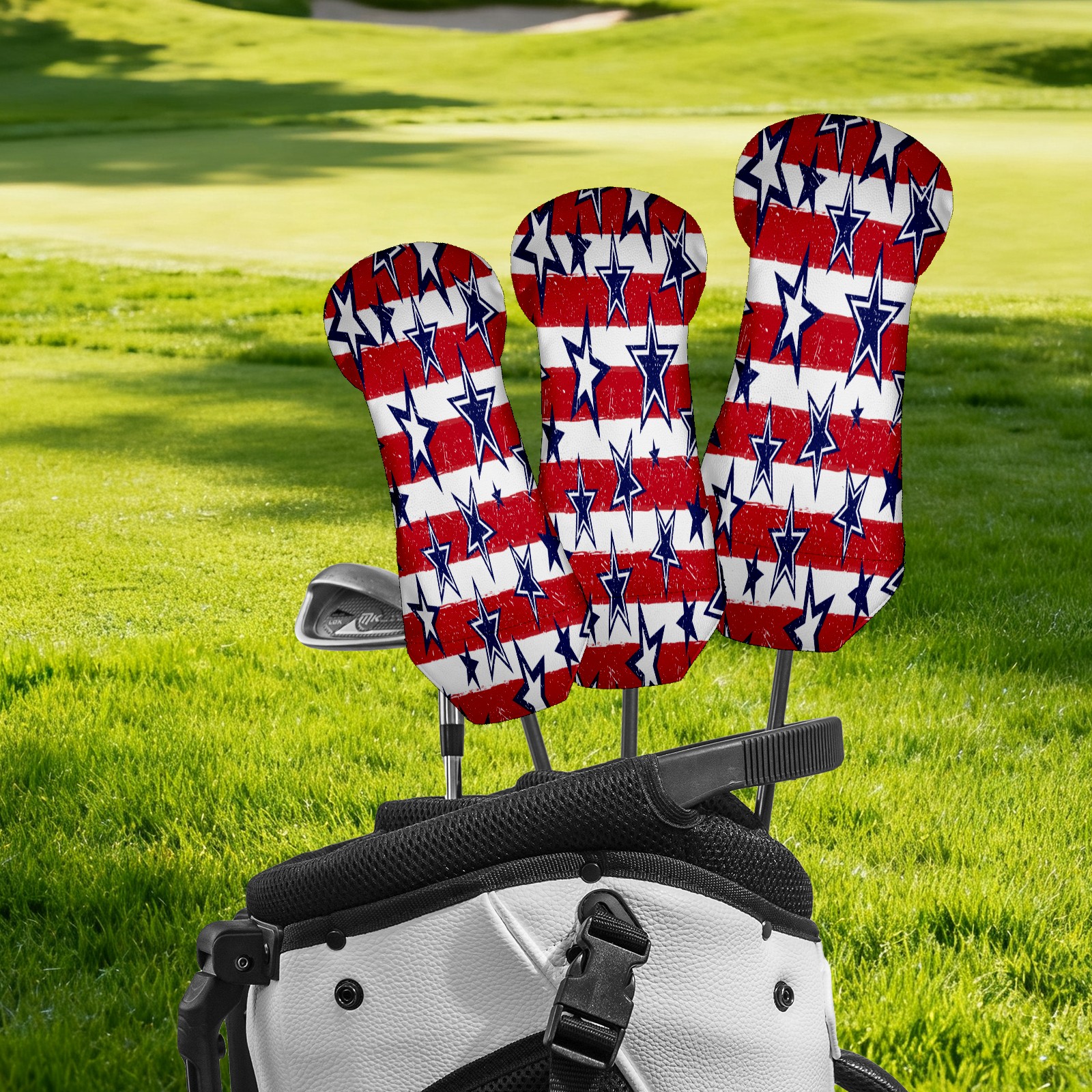 PU Leather Golf Putter Head Covers for Driver, Fairway Wood & Hybrid Clubs, Unisex, Fits All Brands Blue Star Red White Stripes USA Flag