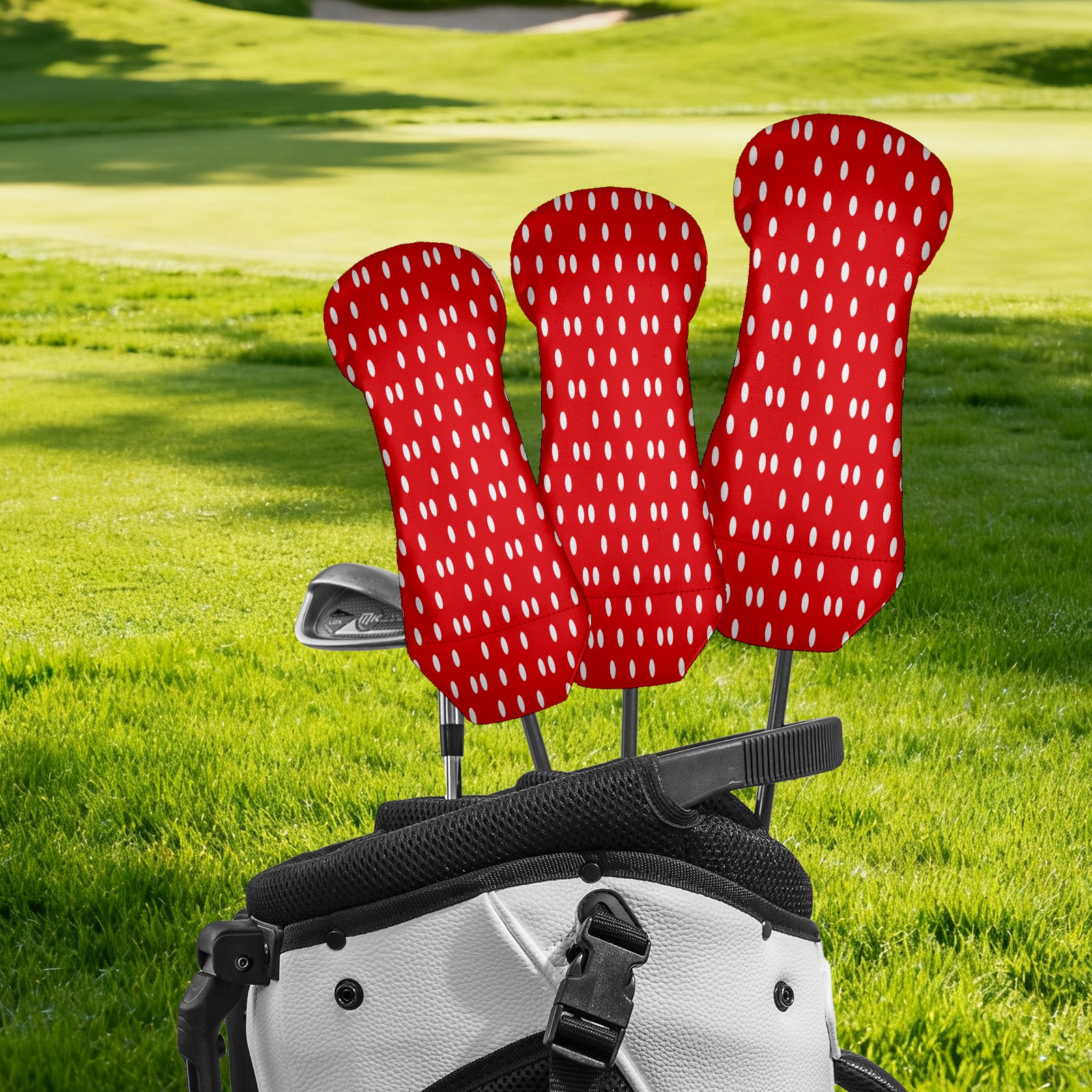 PU Leather Golf Putter Head Covers for Driver, Fairway Wood & Hybrid Clubs, Unisex, Fits All Brands Christmas Red White Polka Dot Geometric Pattern