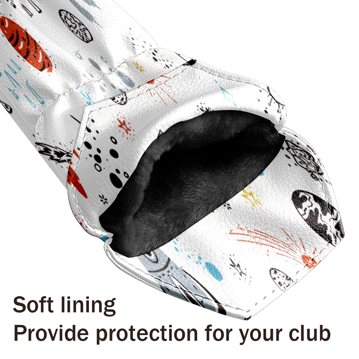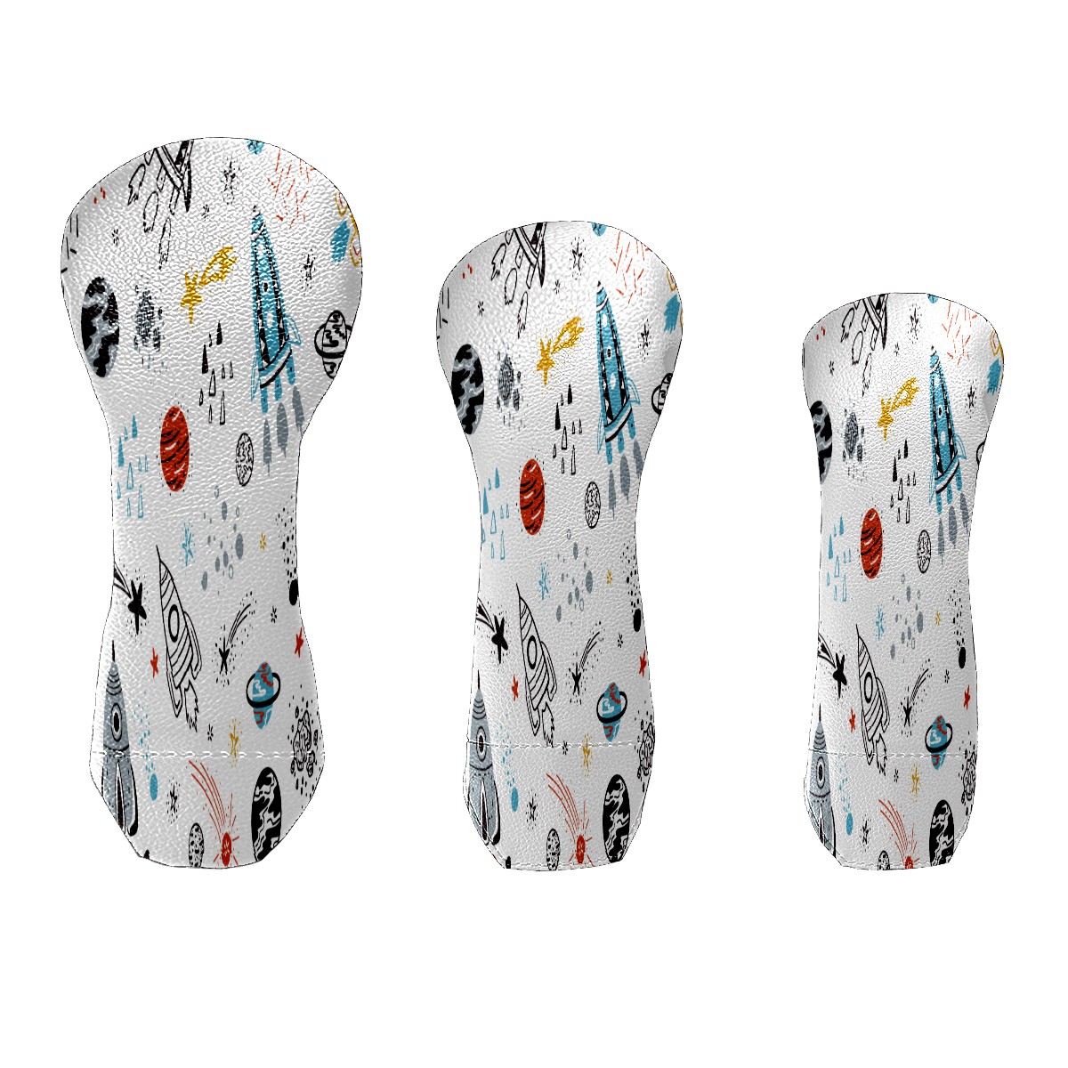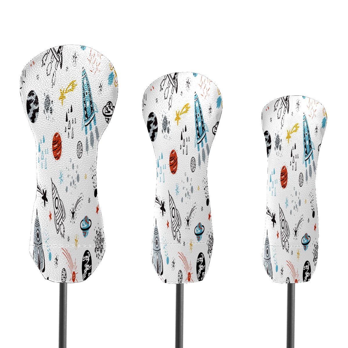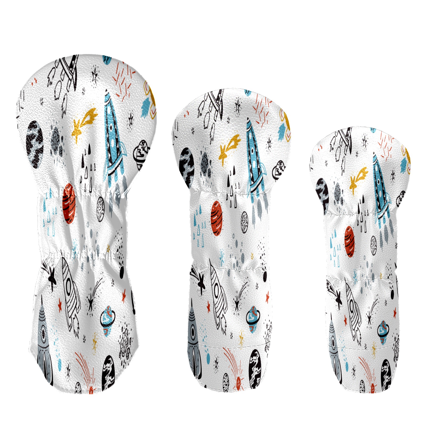 PU Leather Golf Putter Head Covers for Driver, Fairway Wood & Hybrid Clubs, Unisex, Fits All Brands Outer Spaceship Rockets Planet Galaxy