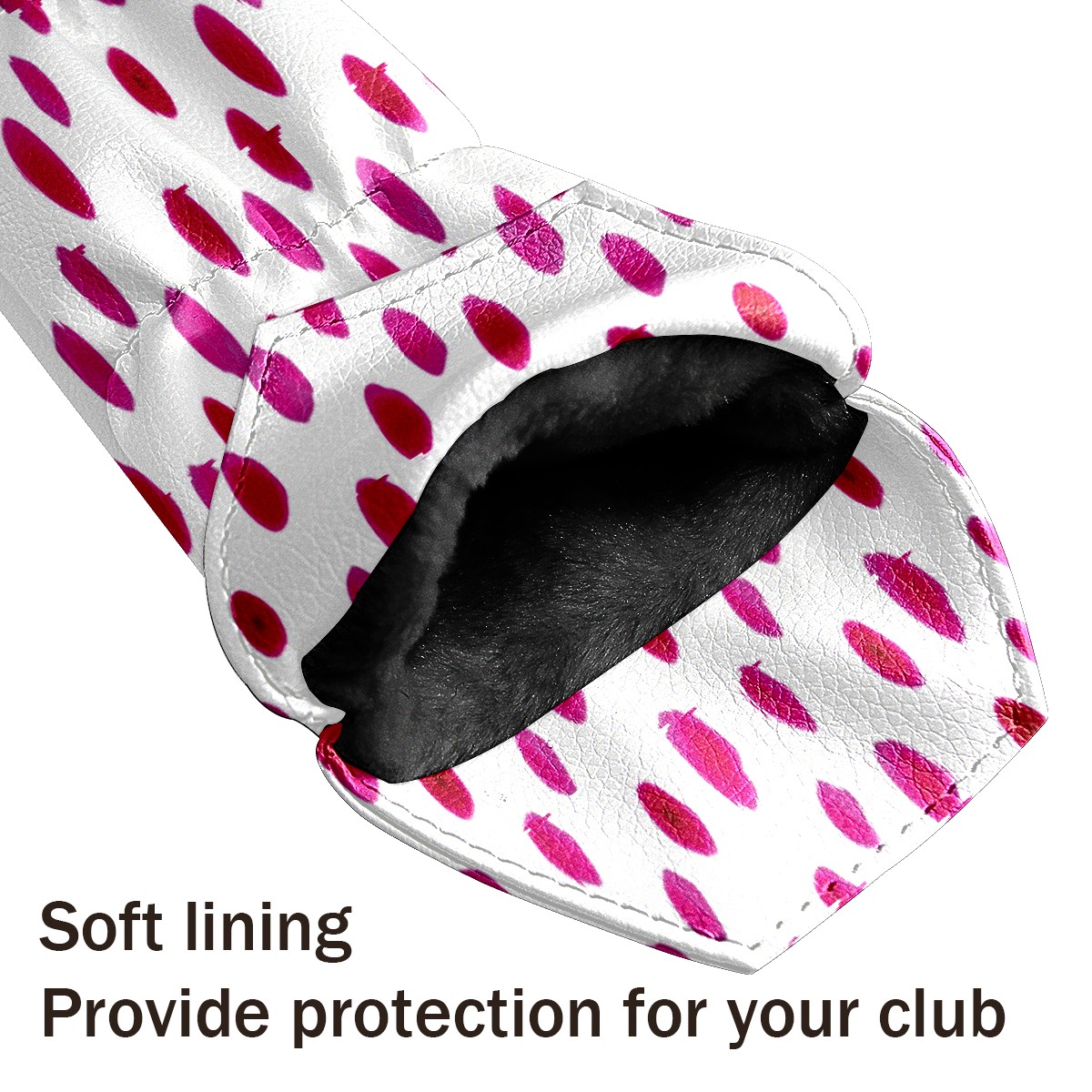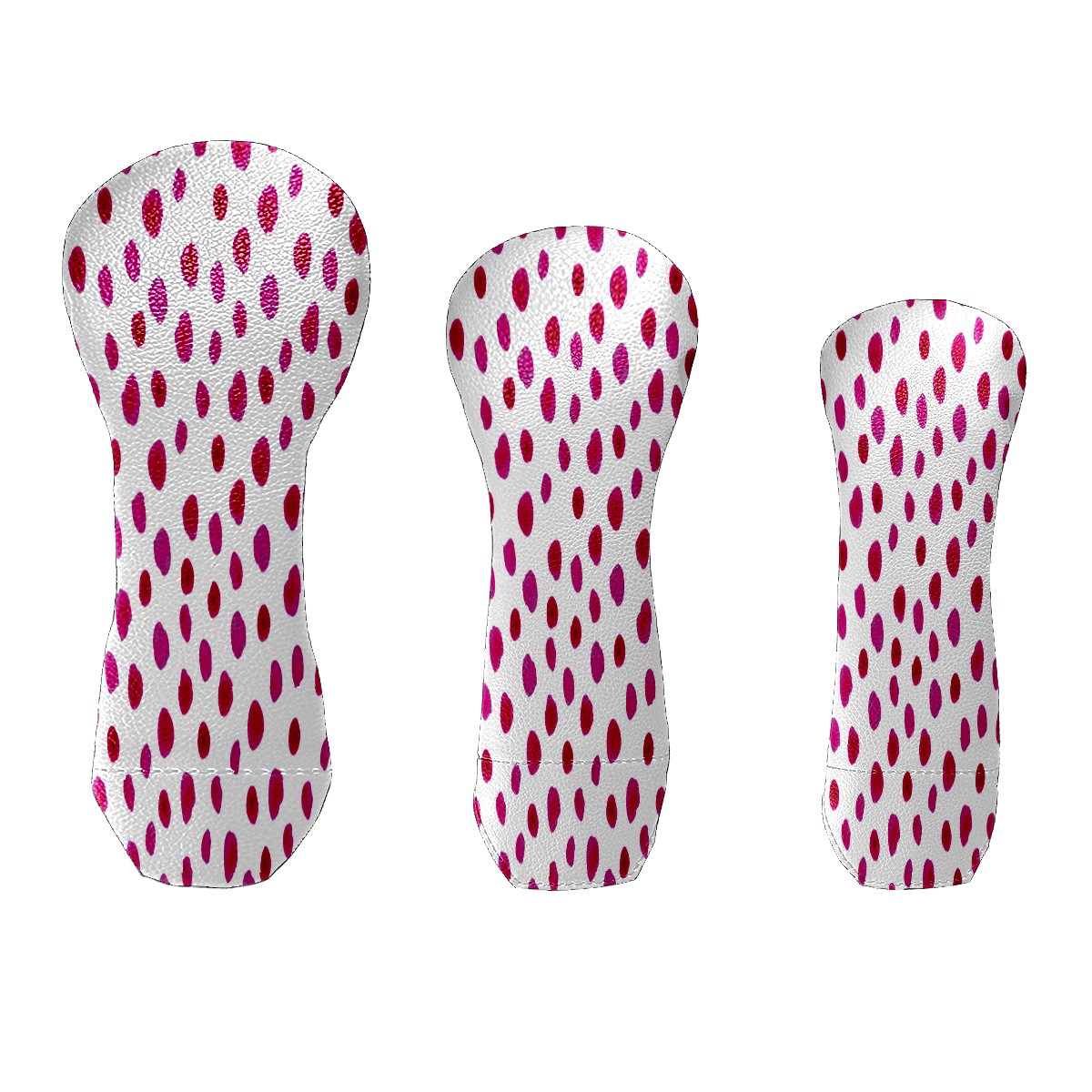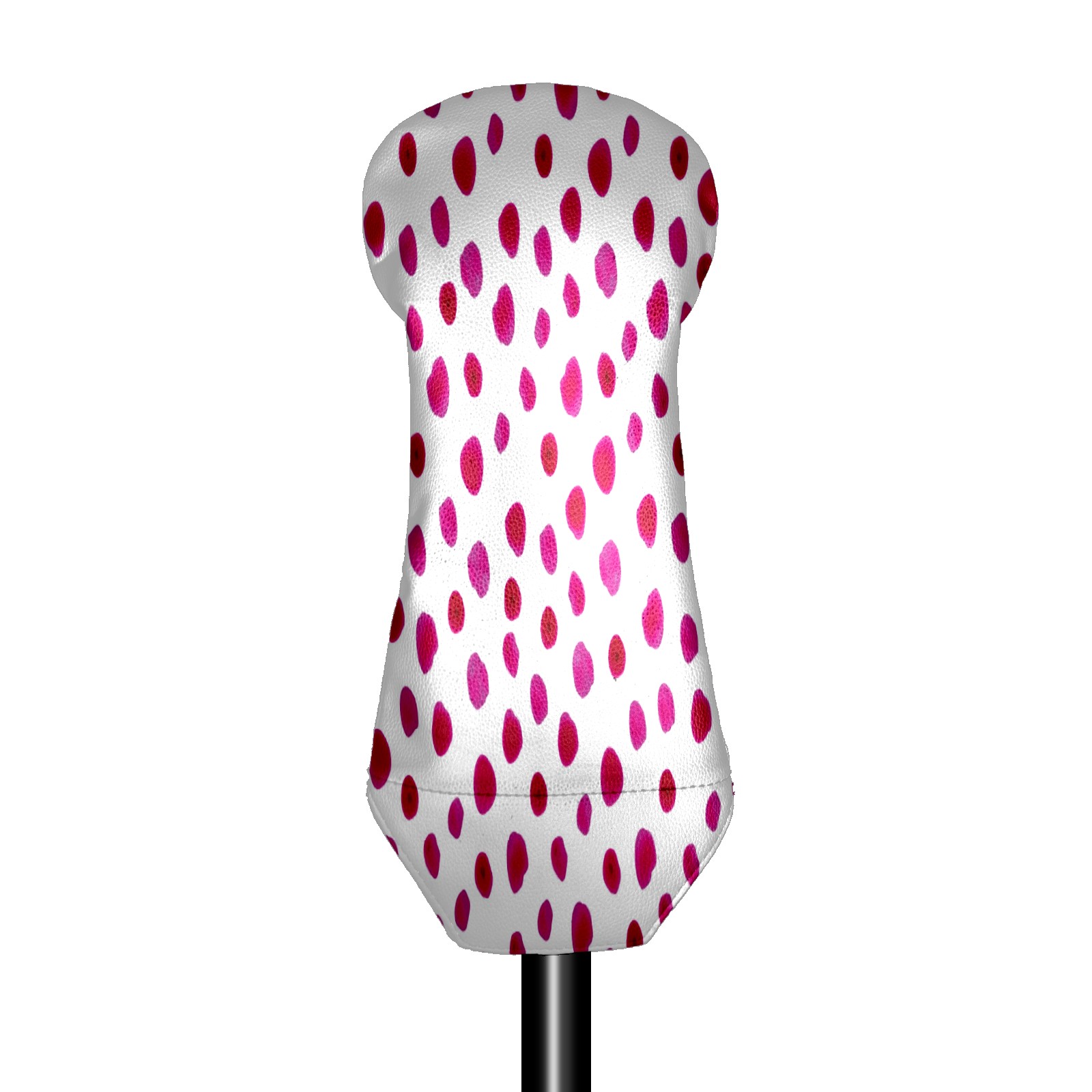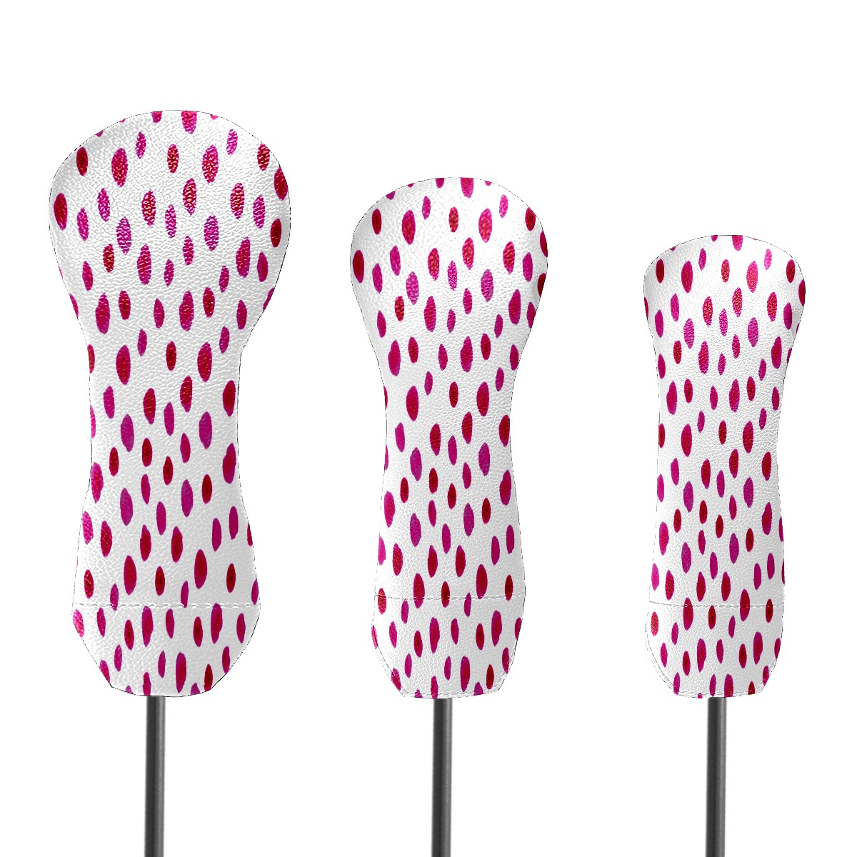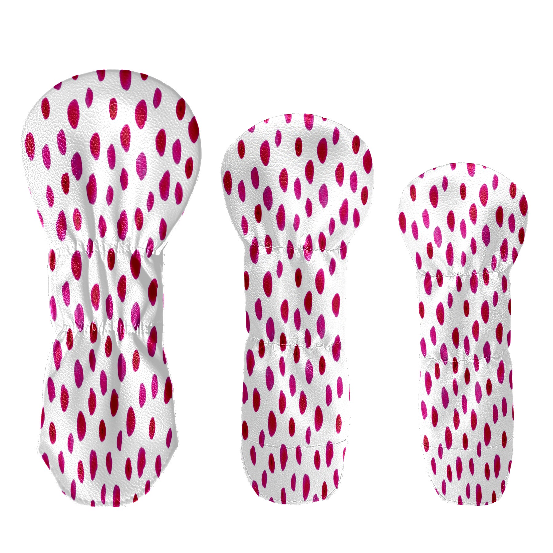PU Leather Golf Putter Head Covers for Driver, Fairway Wood & Hybrid Clubs, Unisex, Fits All Brands Watercolor Pink Polka Dot Red