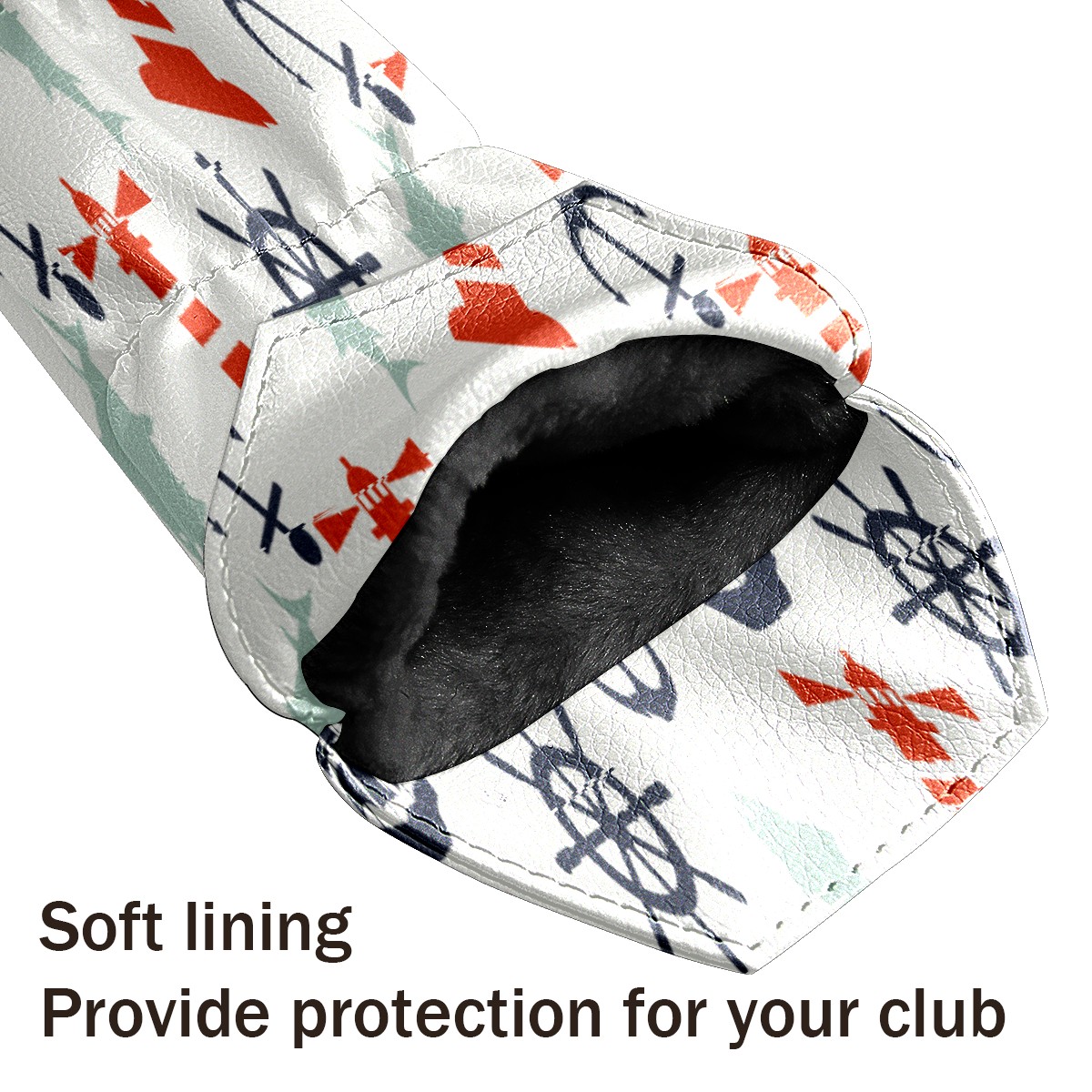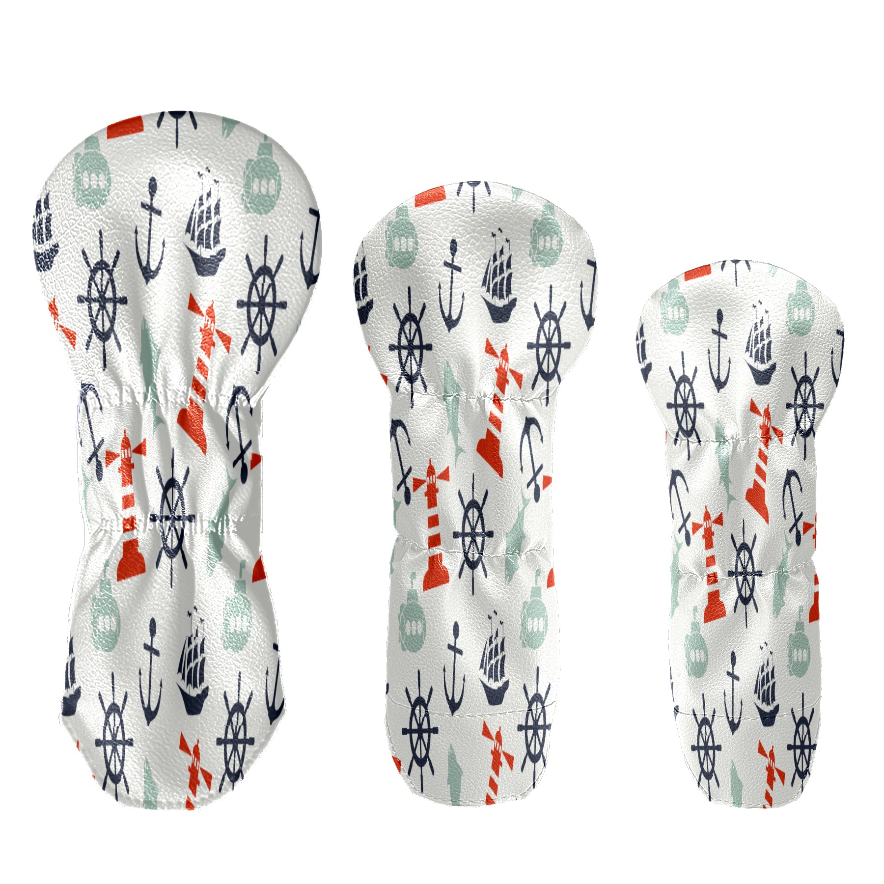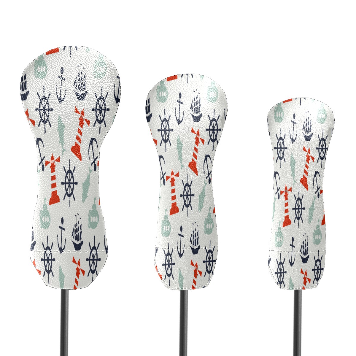 PU Leather Golf Putter Head Covers for Driver, Fairway Wood & Hybrid Clubs, Unisex, Fits All Brands Lighthouse Compass Ship Anchor Fish