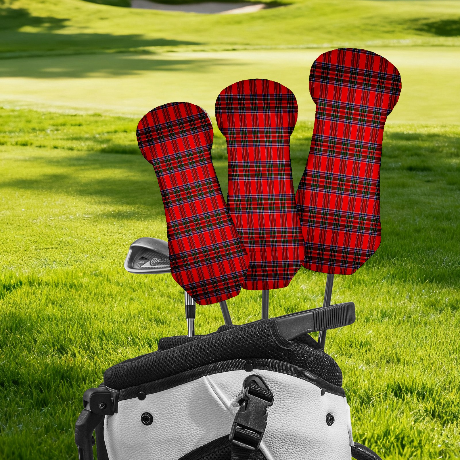 PU Leather Golf Putter Head Covers for Driver, Fairway Wood & Hybrid Clubs, Unisex, Fits All Brands Plaid Red Green Scottish Pattern