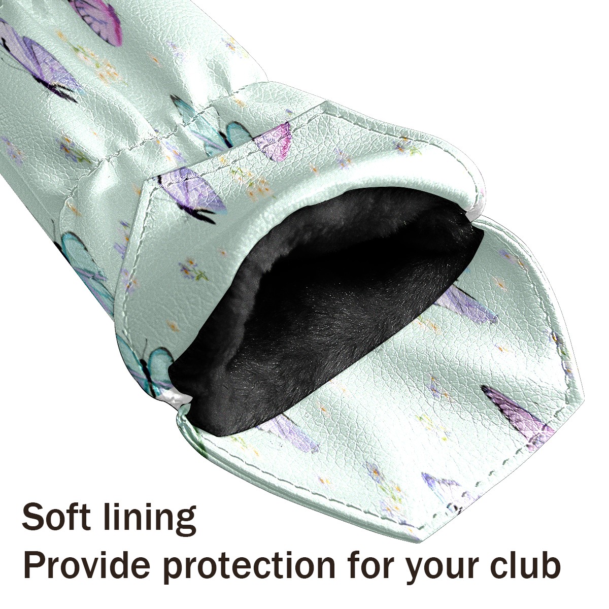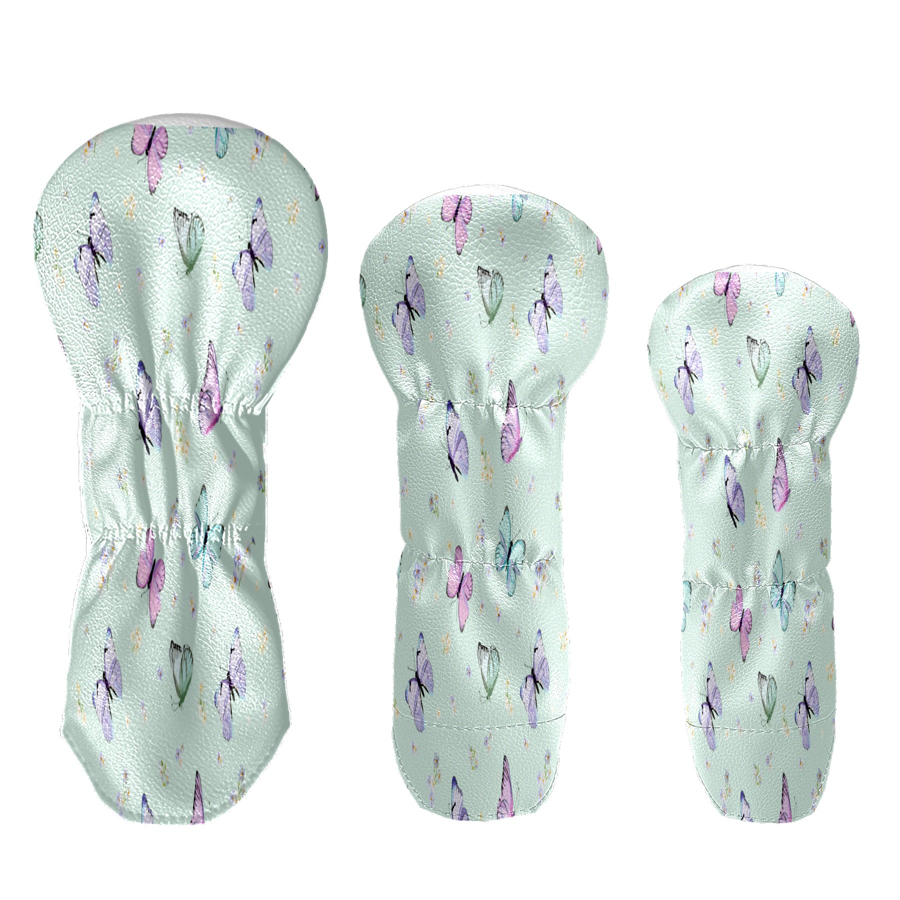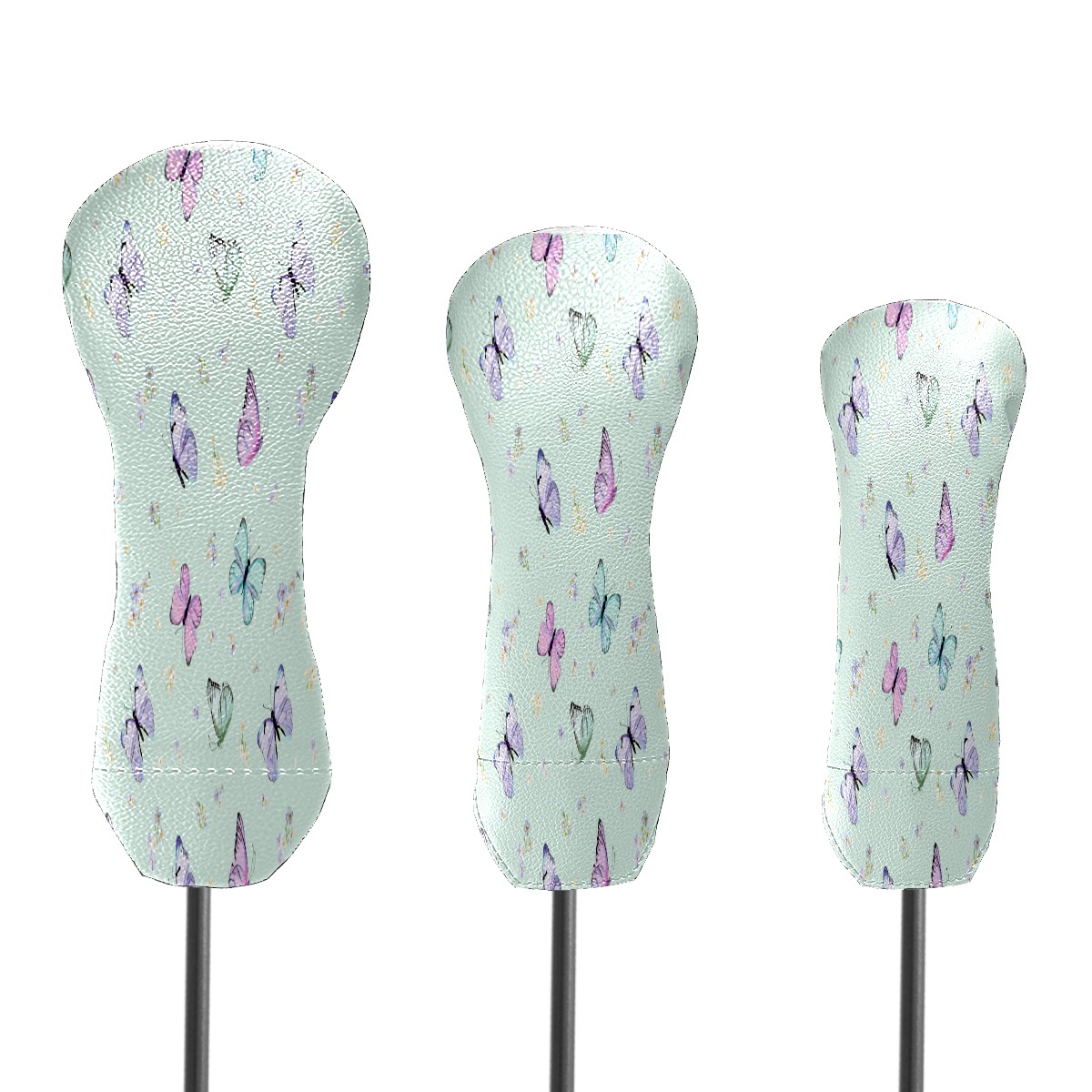 PU Leather Golf Putter Head Covers for Driver, Fairway Wood & Hybrid Clubs, Unisex, Fits All Brands Purple Flying Butterflies Light Green