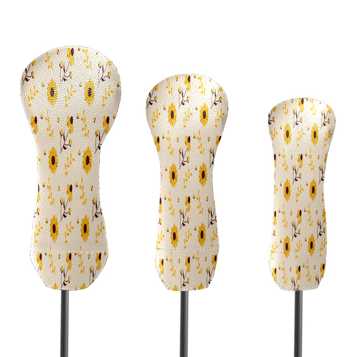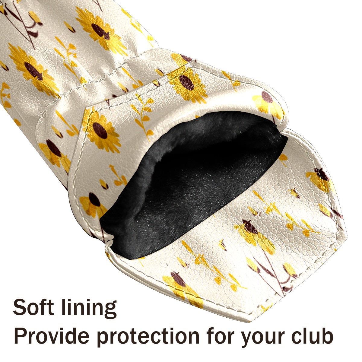 PU Leather Golf Putter Head Covers for Driver, Fairway Wood & Hybrid Clubs, Unisex, Fits All Brands Yellow Sunflowers Pattern-02-02