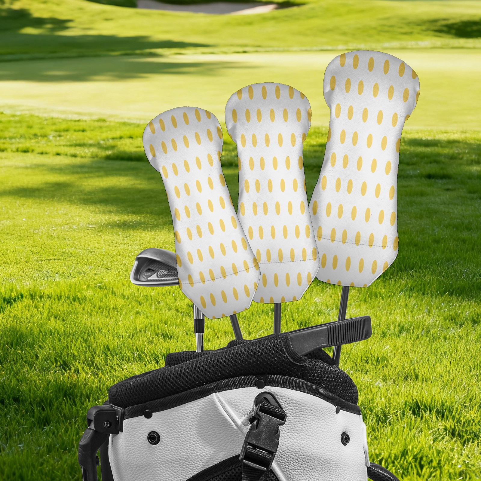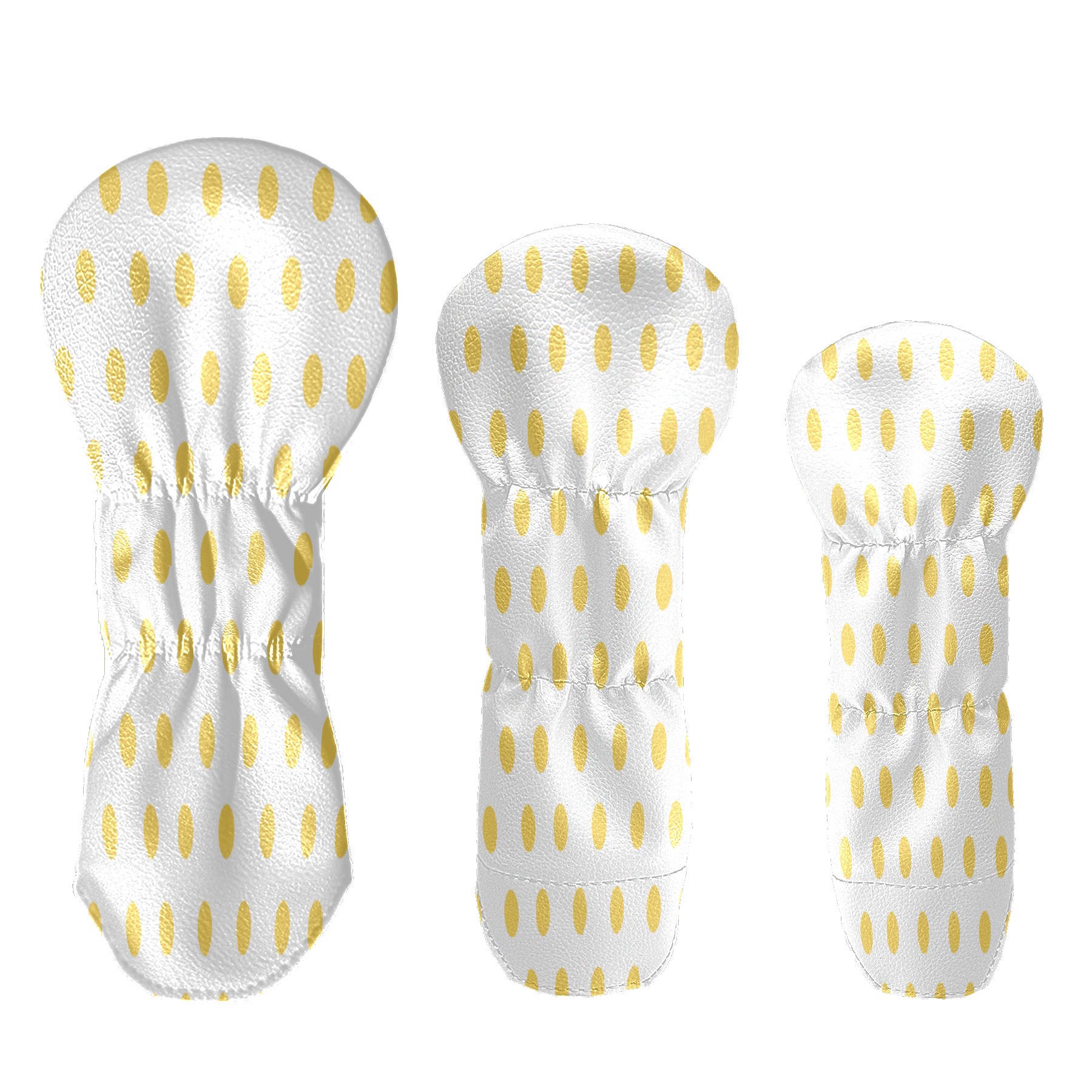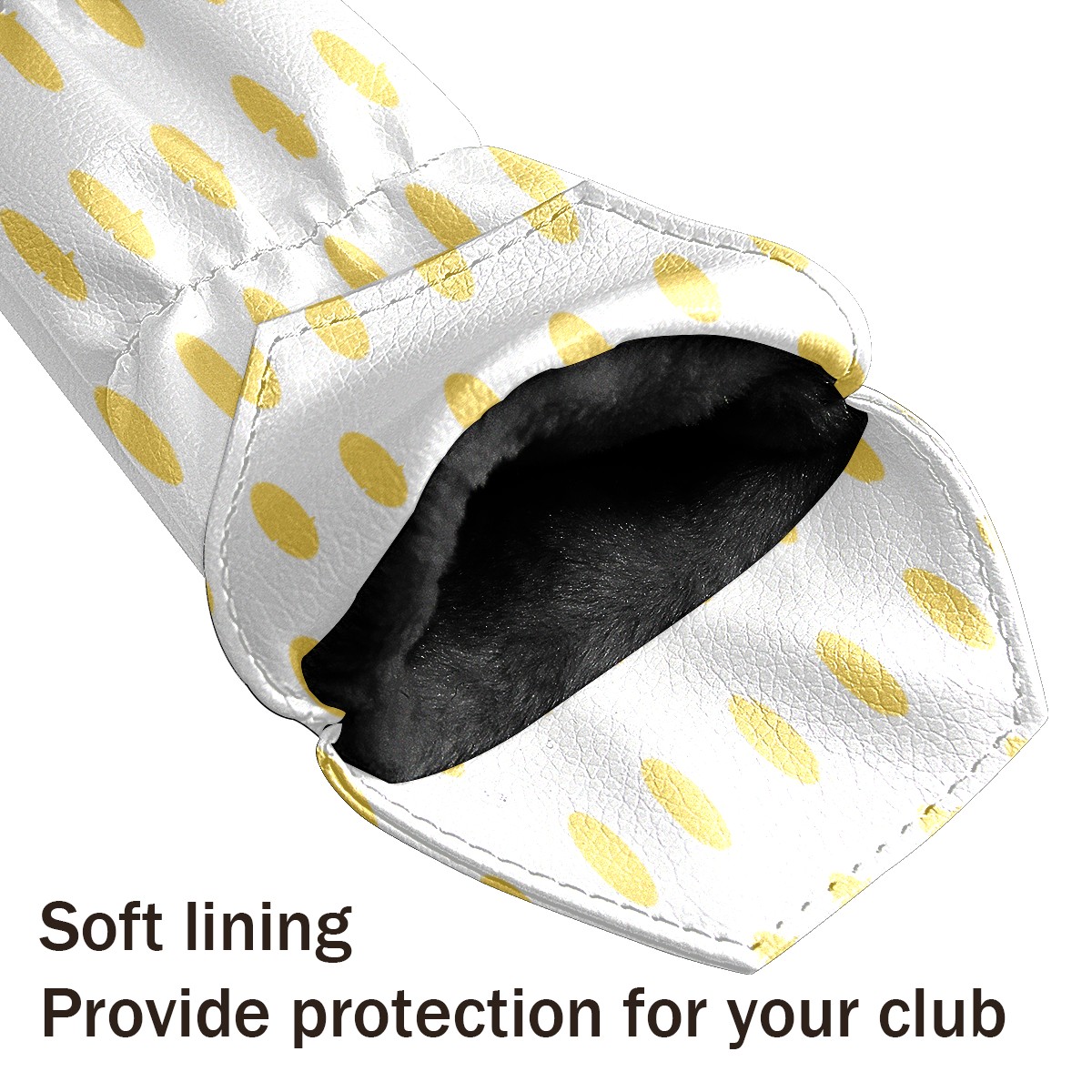 PU Leather Golf Putter Head Covers for Driver, Fairway Wood & Hybrid Clubs, Unisex, Fits All Brands Yellow Polka Dots Pattern-01