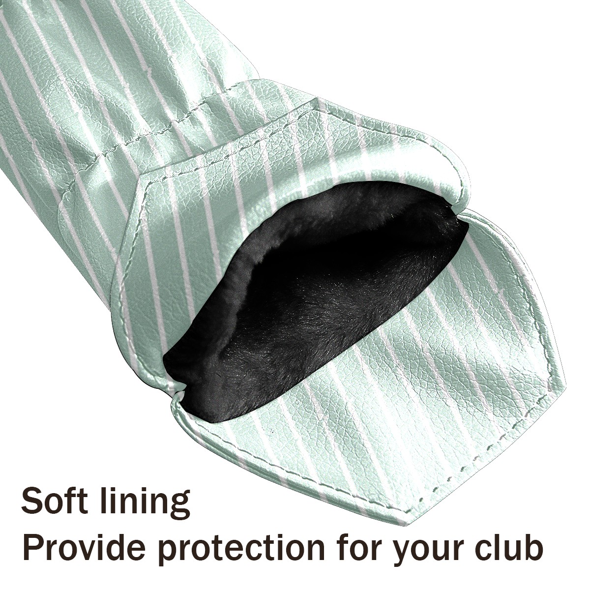 PU Leather Golf Putter Head Covers for Driver, Fairway Wood & Hybrid Clubs, Unisex, Fits All Brands Modern Mint Green And White Stripe