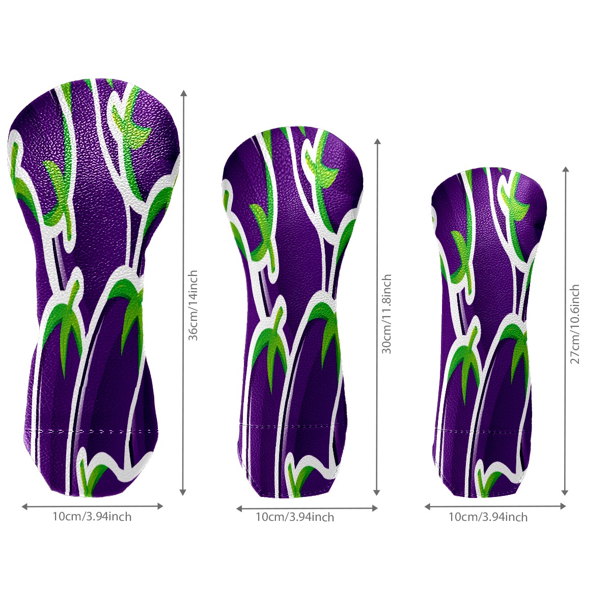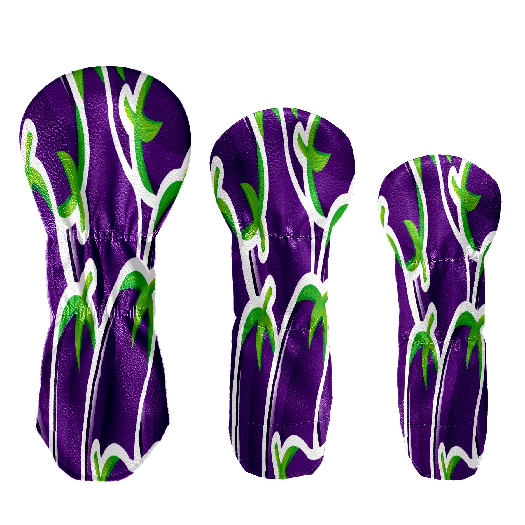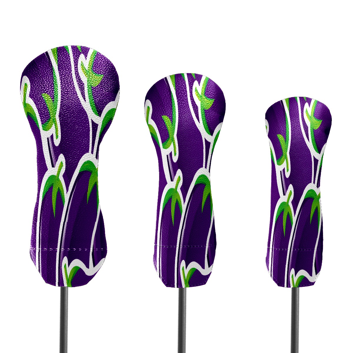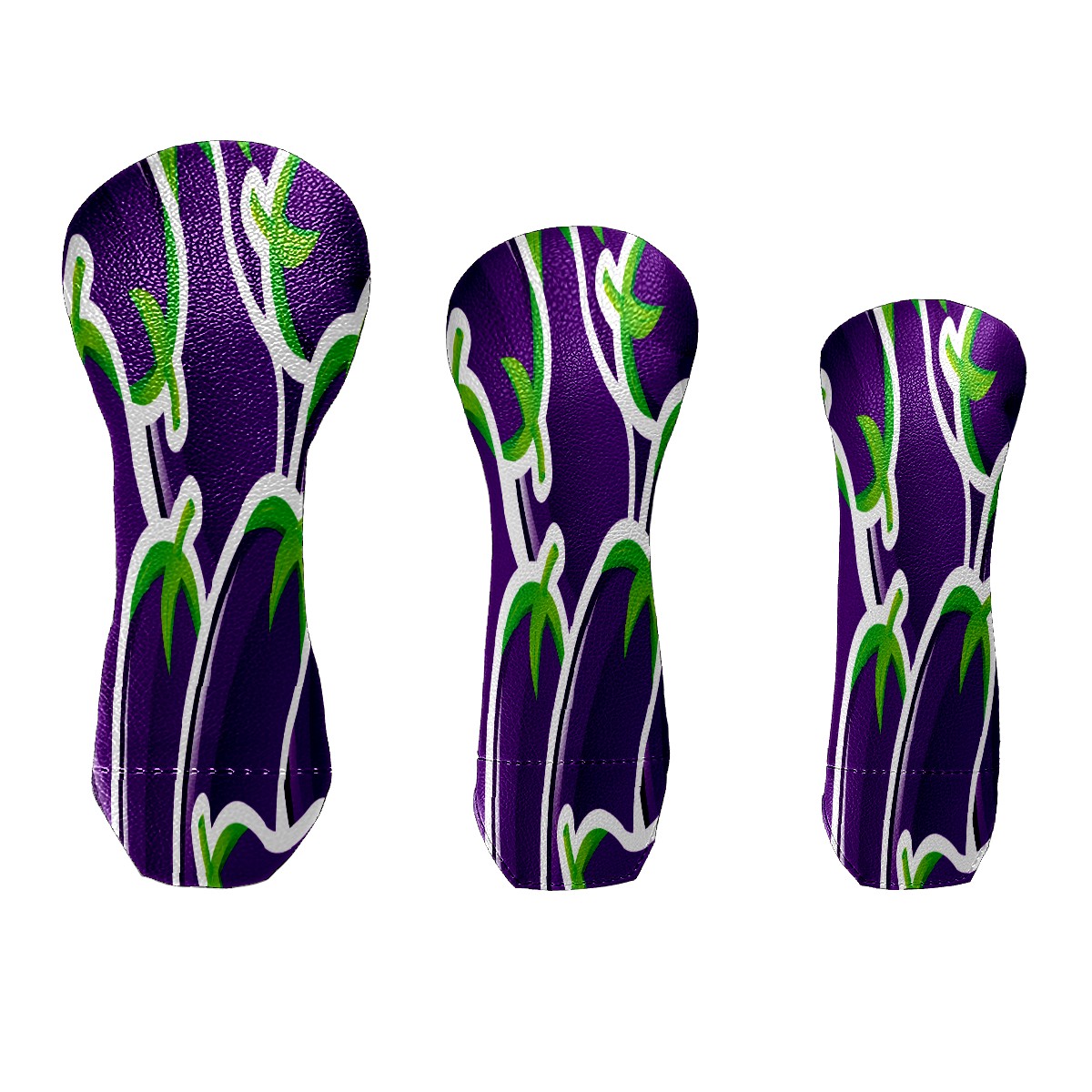 PU Leather Golf Putter Head Covers for Driver, Fairway Wood & Hybrid Clubs, Unisex, Fits All Brands Vegetable Eggplant Purple Pattern