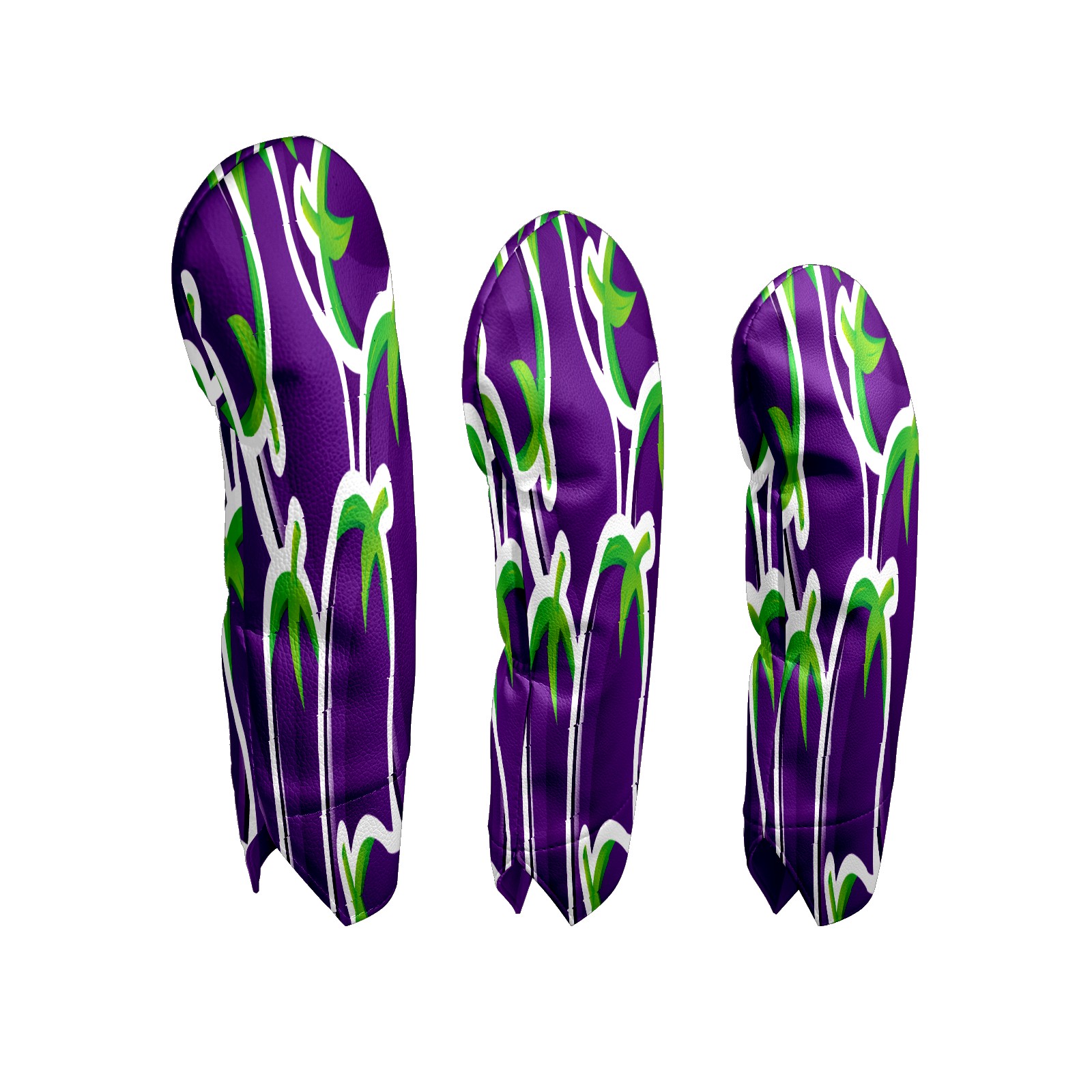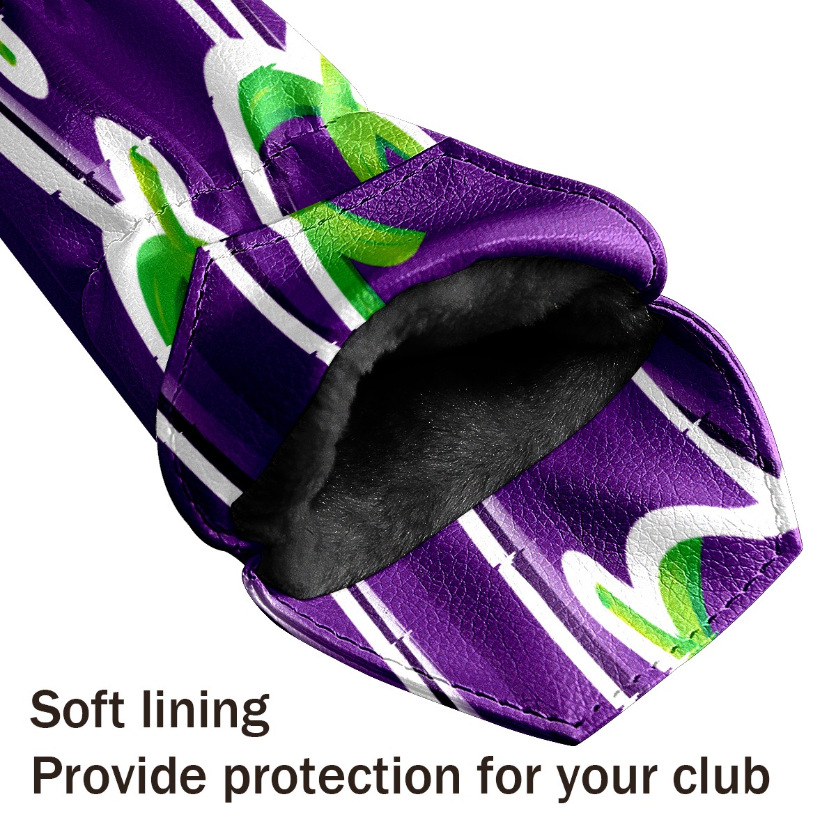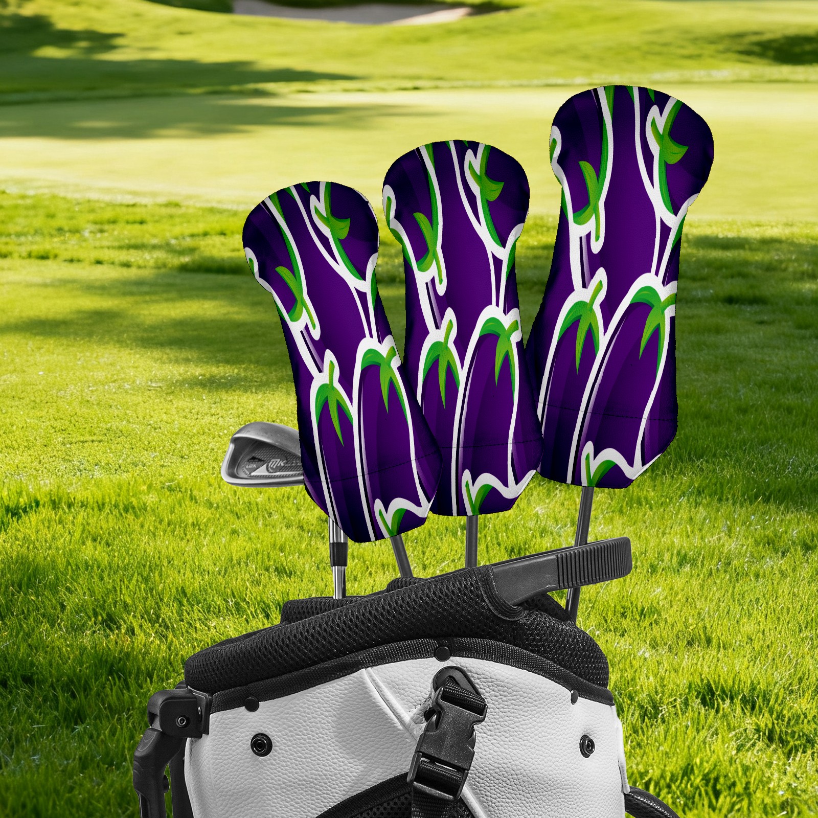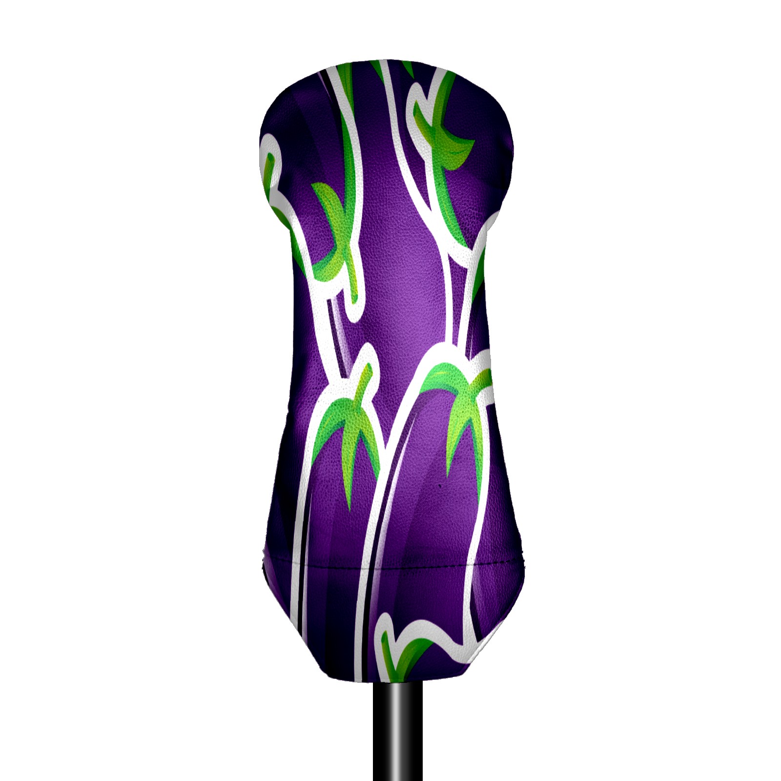 PU Leather Golf Putter Head Covers for Driver, Fairway Wood & Hybrid Clubs, Unisex, Fits All Brands Vegetable Eggplant Purple Pattern