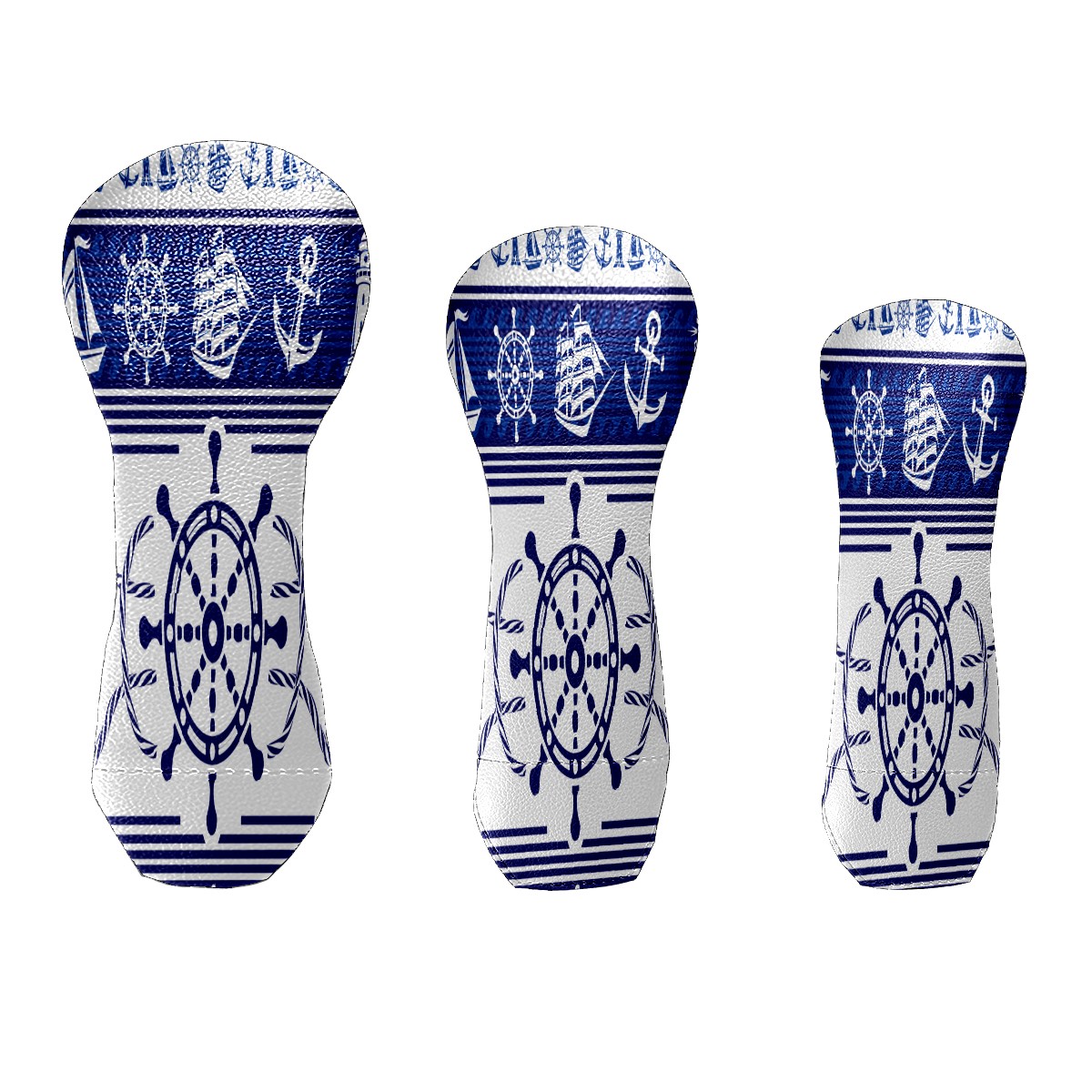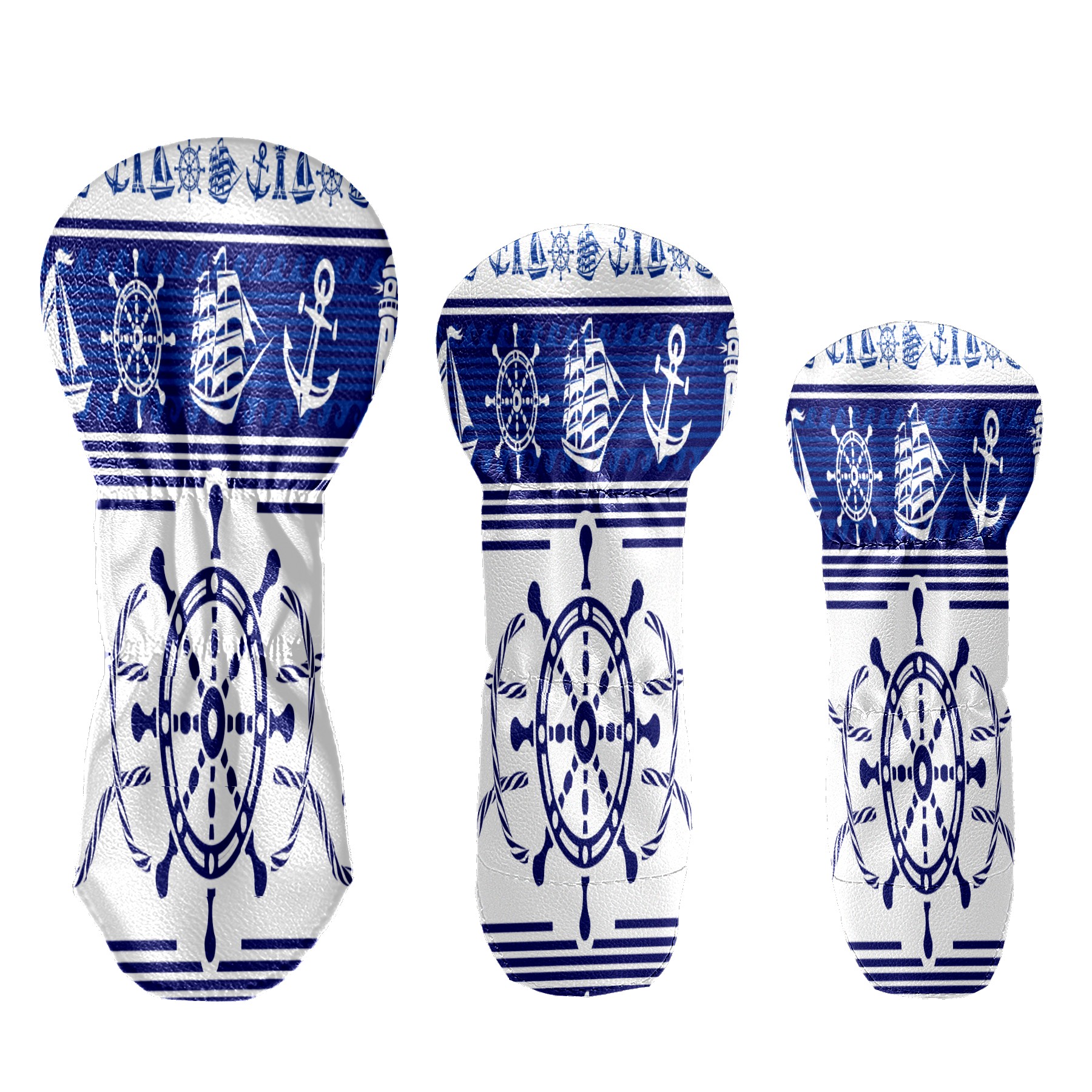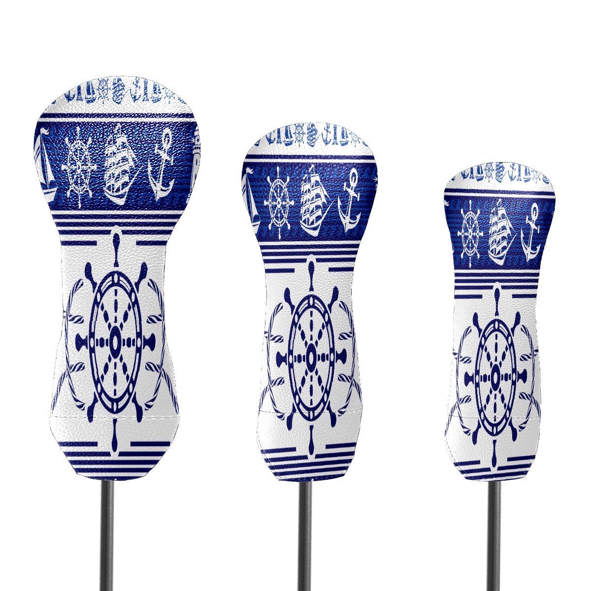 PU Leather Golf Putter Head Covers for Driver, Fairway Wood & Hybrid Clubs, Unisex, Fits All Brands Blue Nautical Rudder Anchor Lighthouse Boat Ethnic