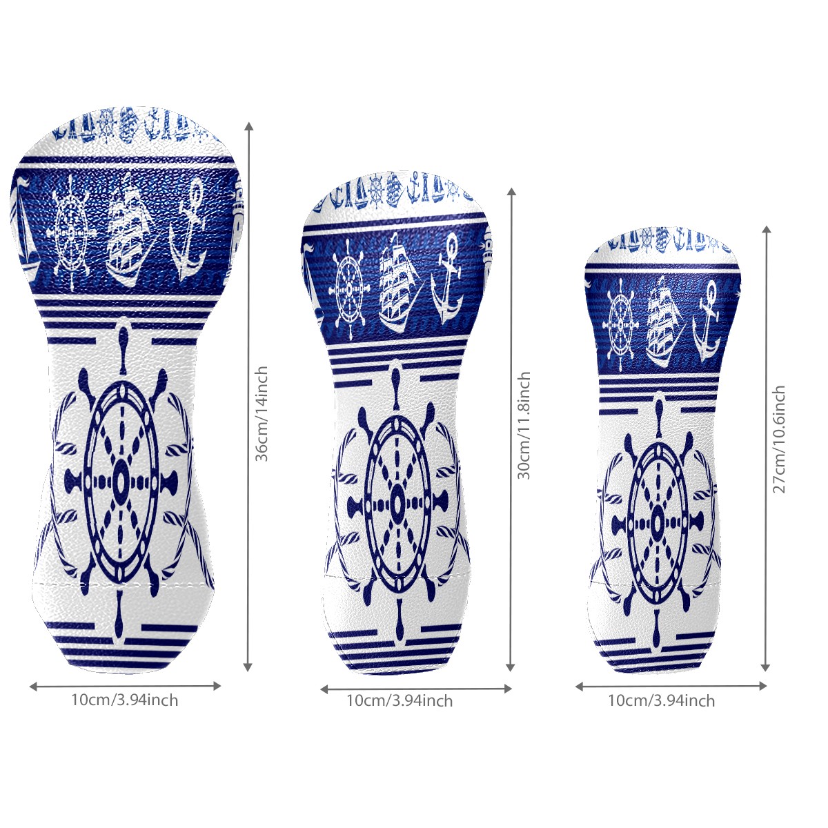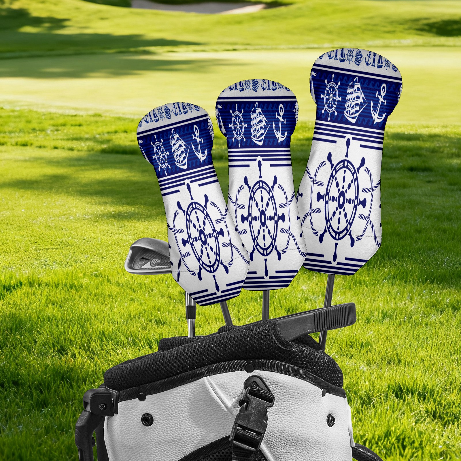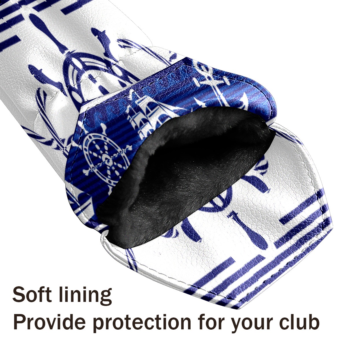 PU Leather Golf Putter Head Covers for Driver, Fairway Wood & Hybrid Clubs, Unisex, Fits All Brands Blue Nautical Rudder Anchor Lighthouse Boat Ethnic