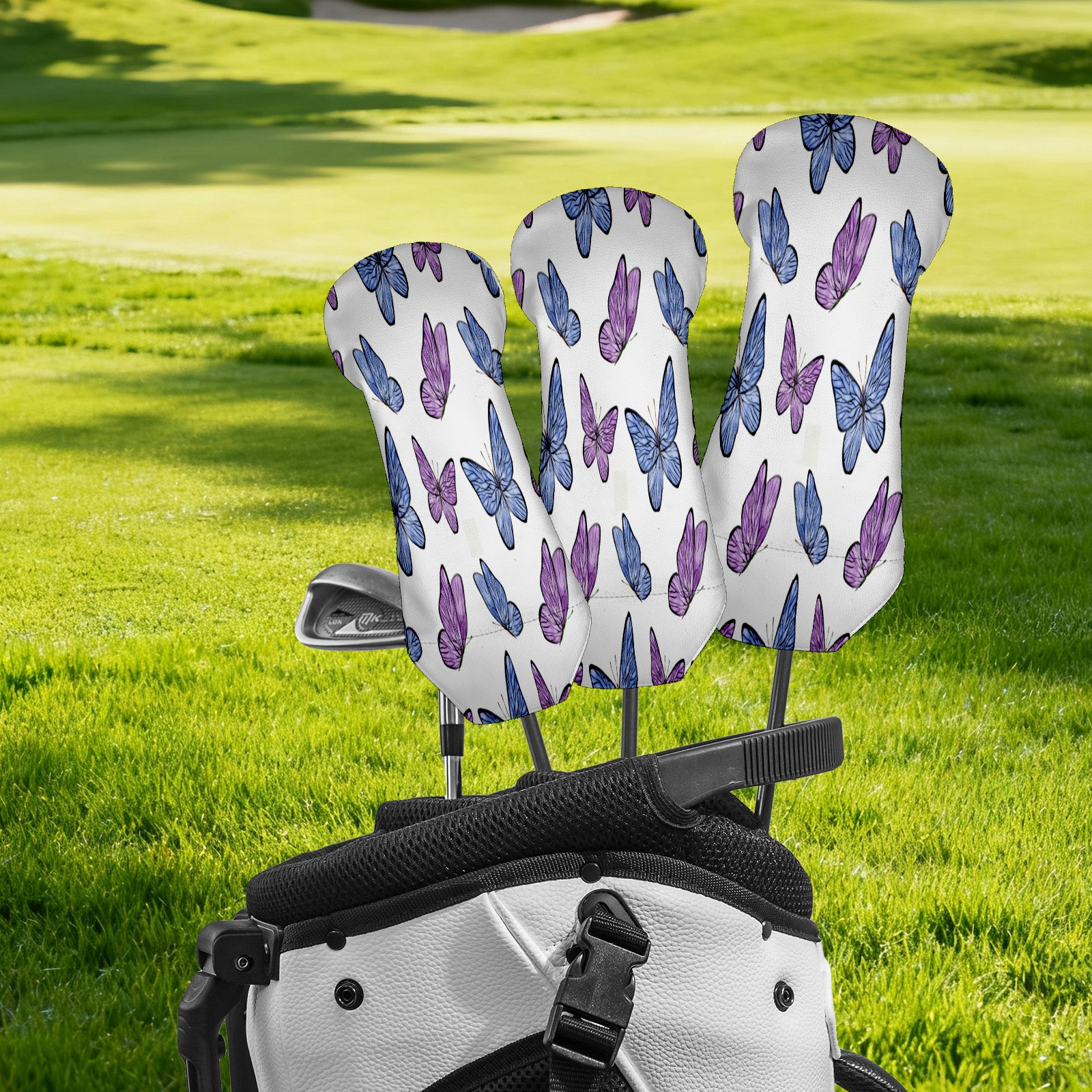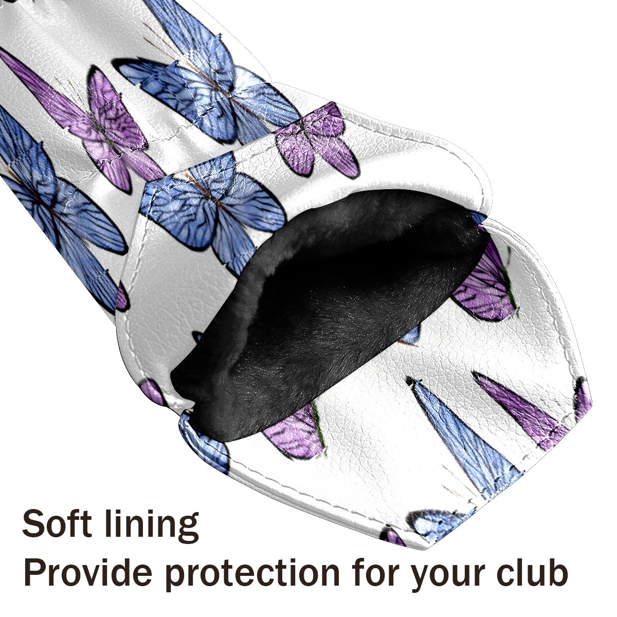 PU Leather Golf Putter Head Covers for Driver, Fairway Wood & Hybrid Clubs, Unisex, Fits All Brands Colorful Butterfly Purple