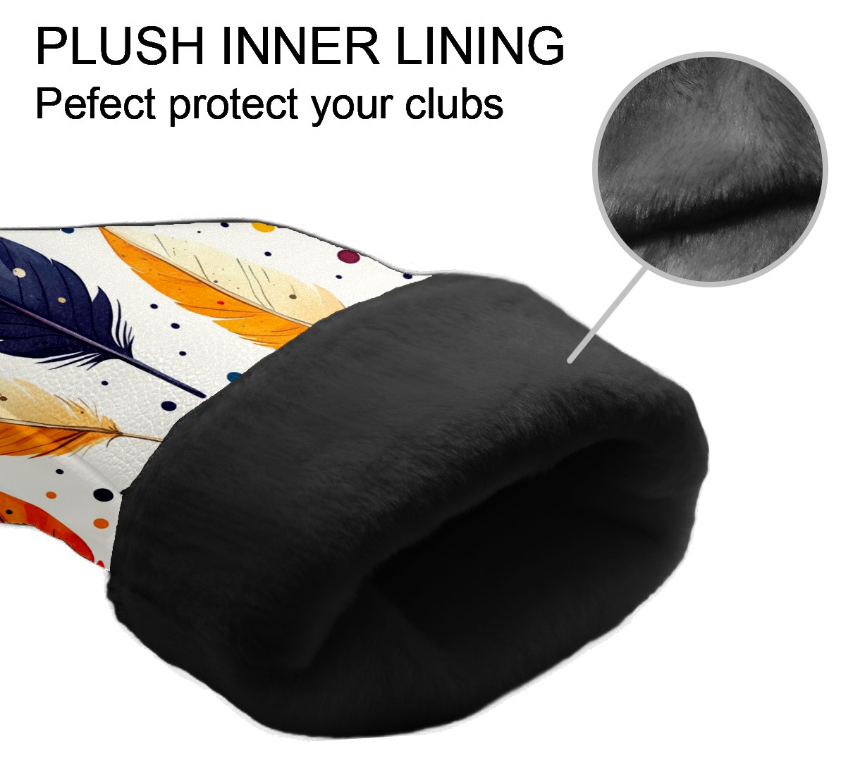 Golf Club Head Covers GreenBlueFeathers Design Premium Plush Velvet Lining, Waterproof Golf Headcovers Driver & Fairway Woods for Scratch Protection Novelty Gift for Men & Women