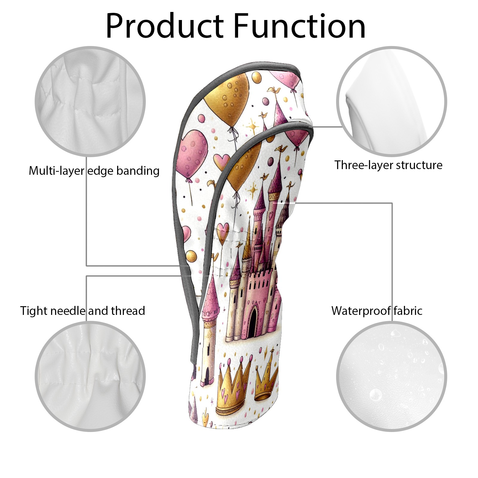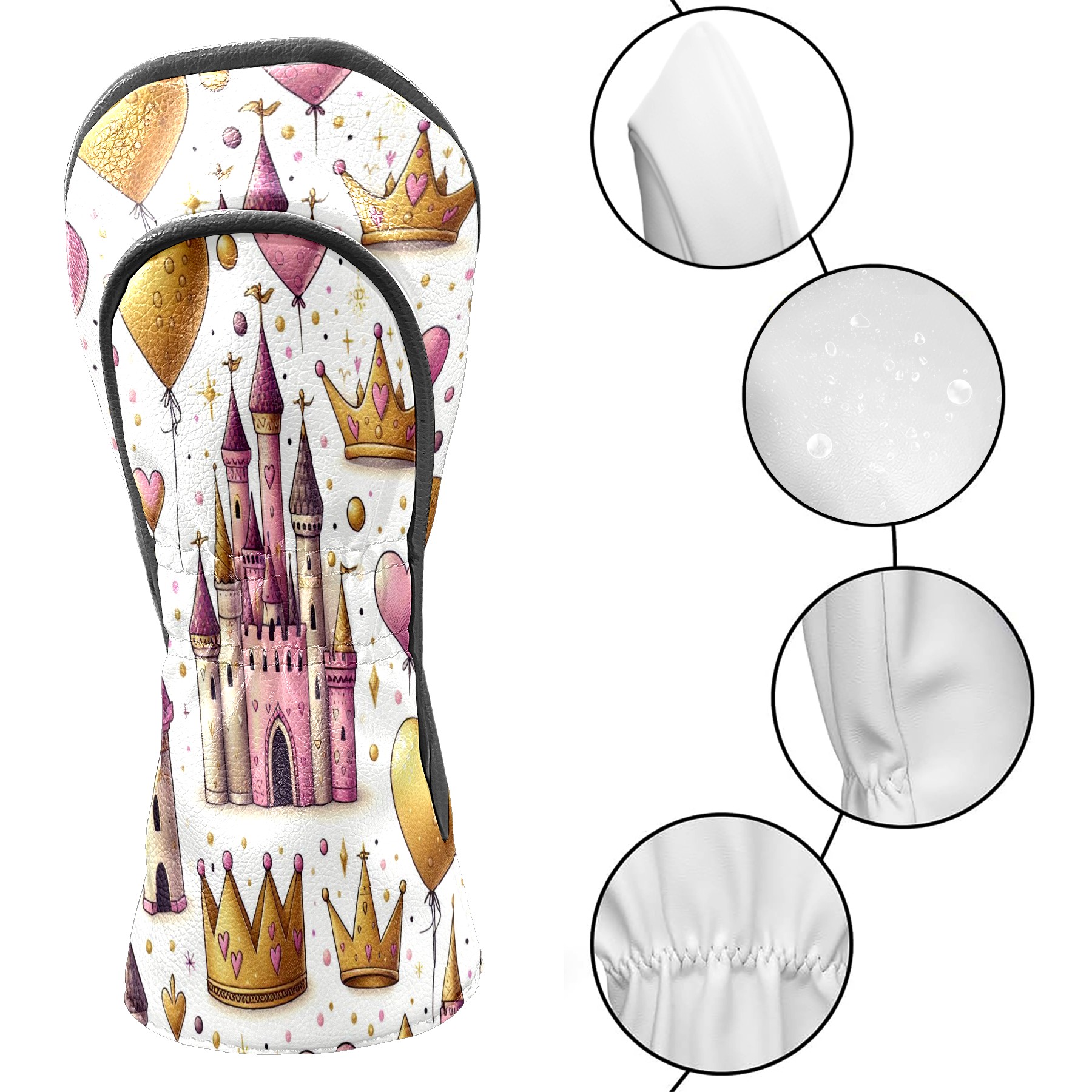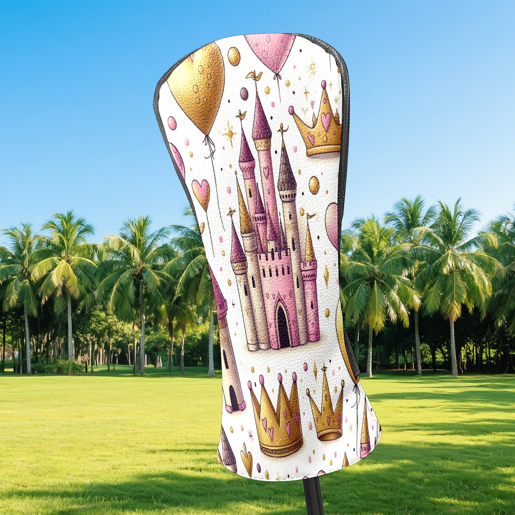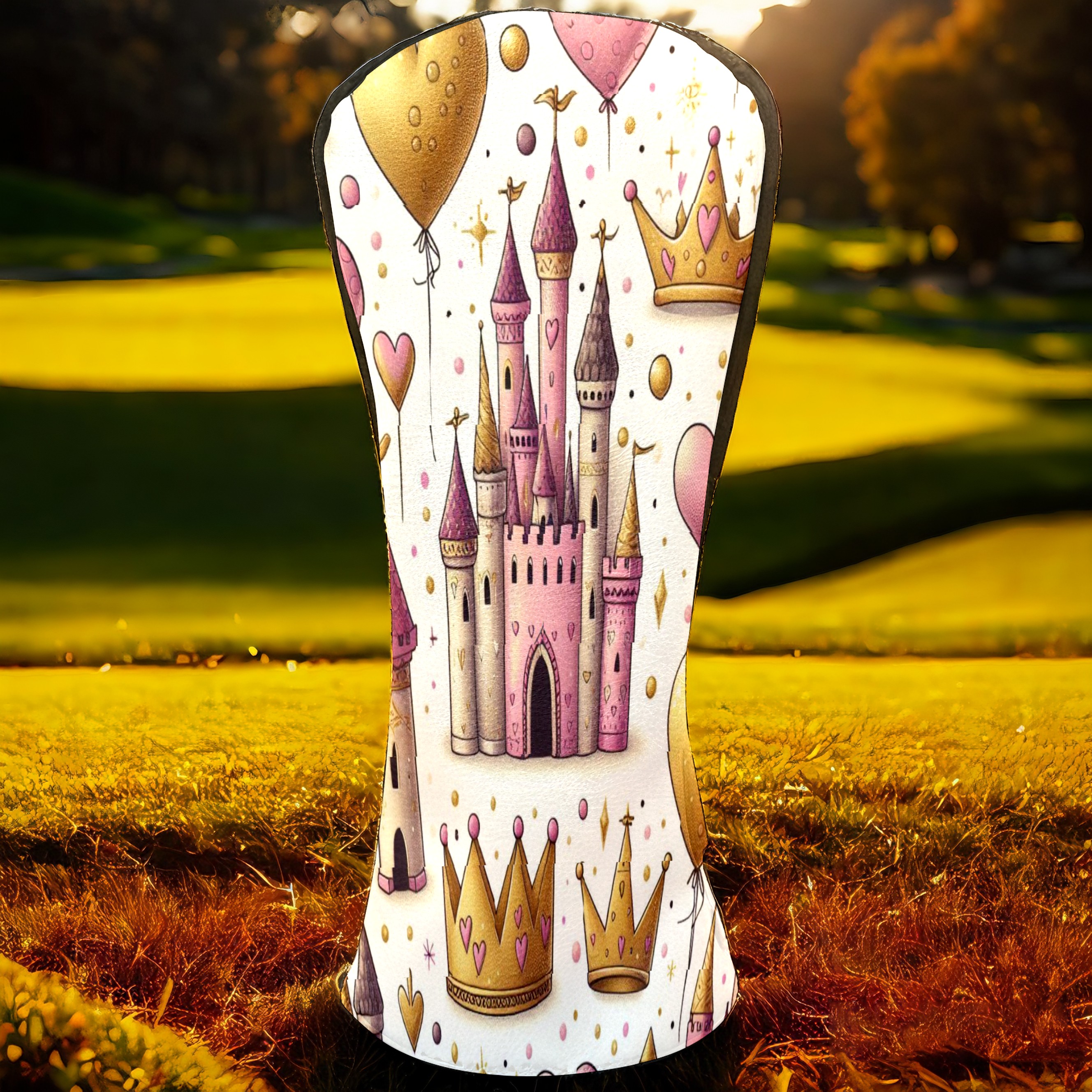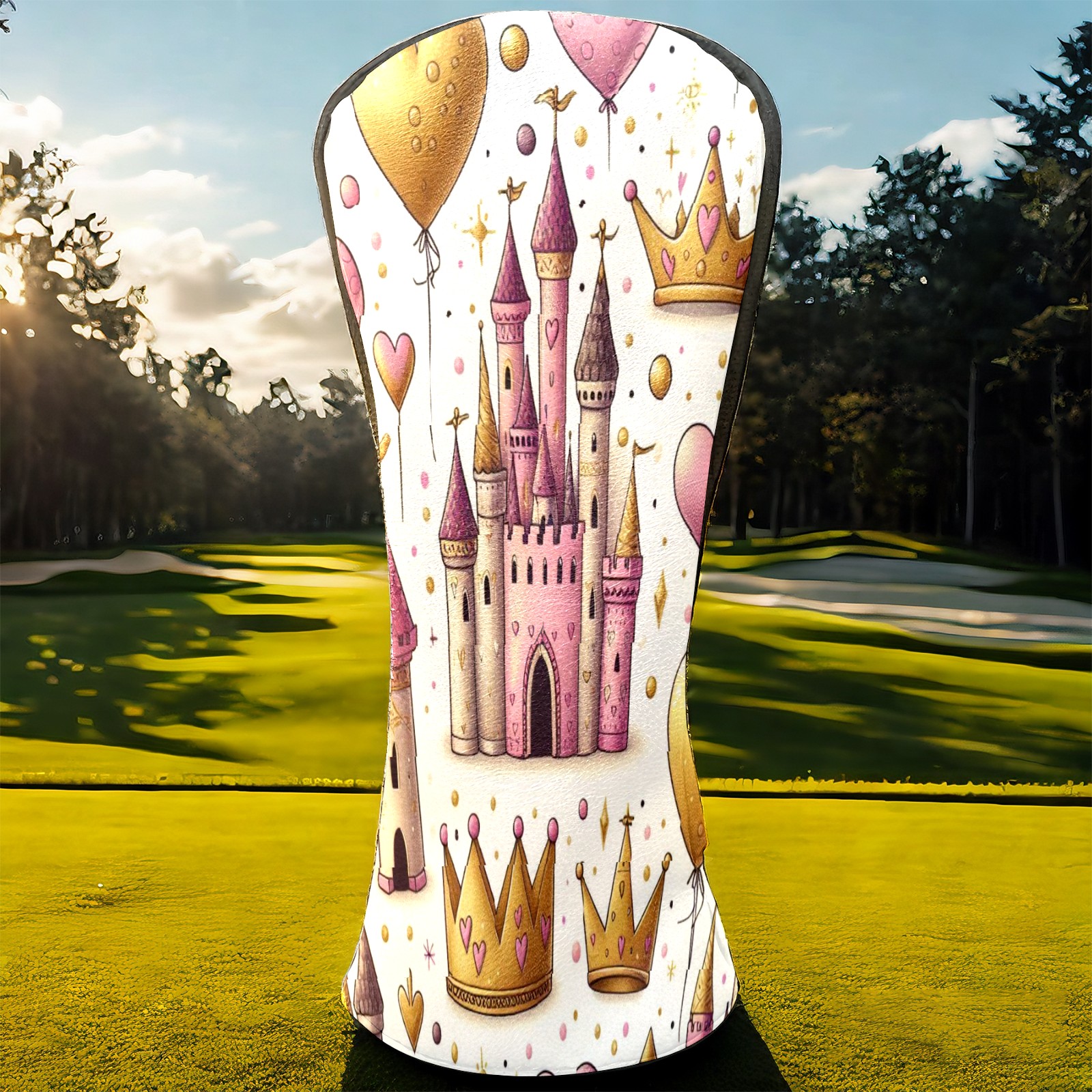 Golf Club Head Covers GoldCrownPinkCastle Design Premium Plush Velvet Lining, Waterproof Golf Headcovers Driver & Fairway Woods for Scratch Protection Novelty Gift for Men & Women