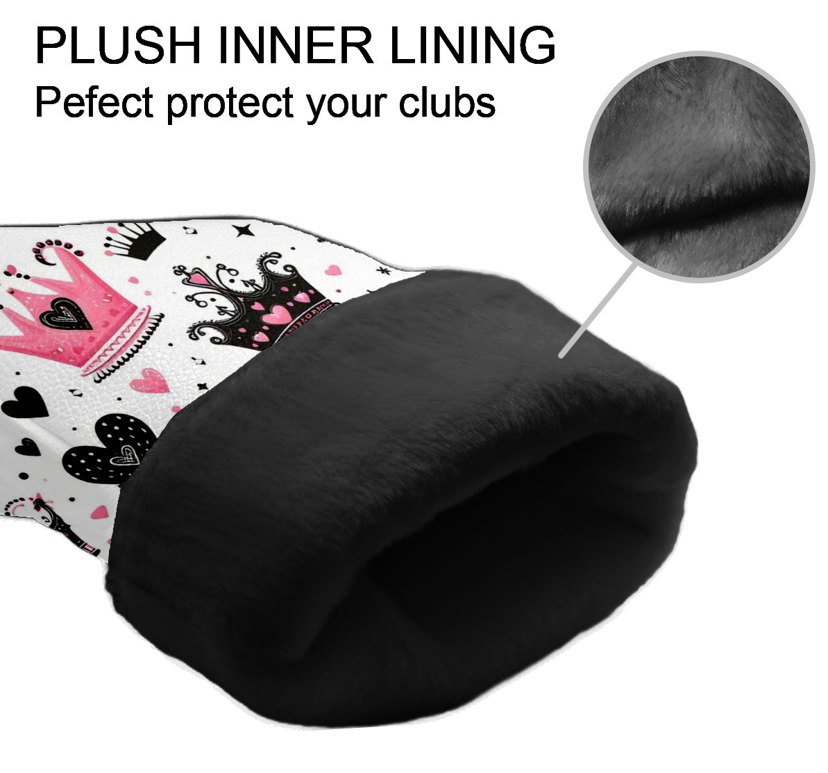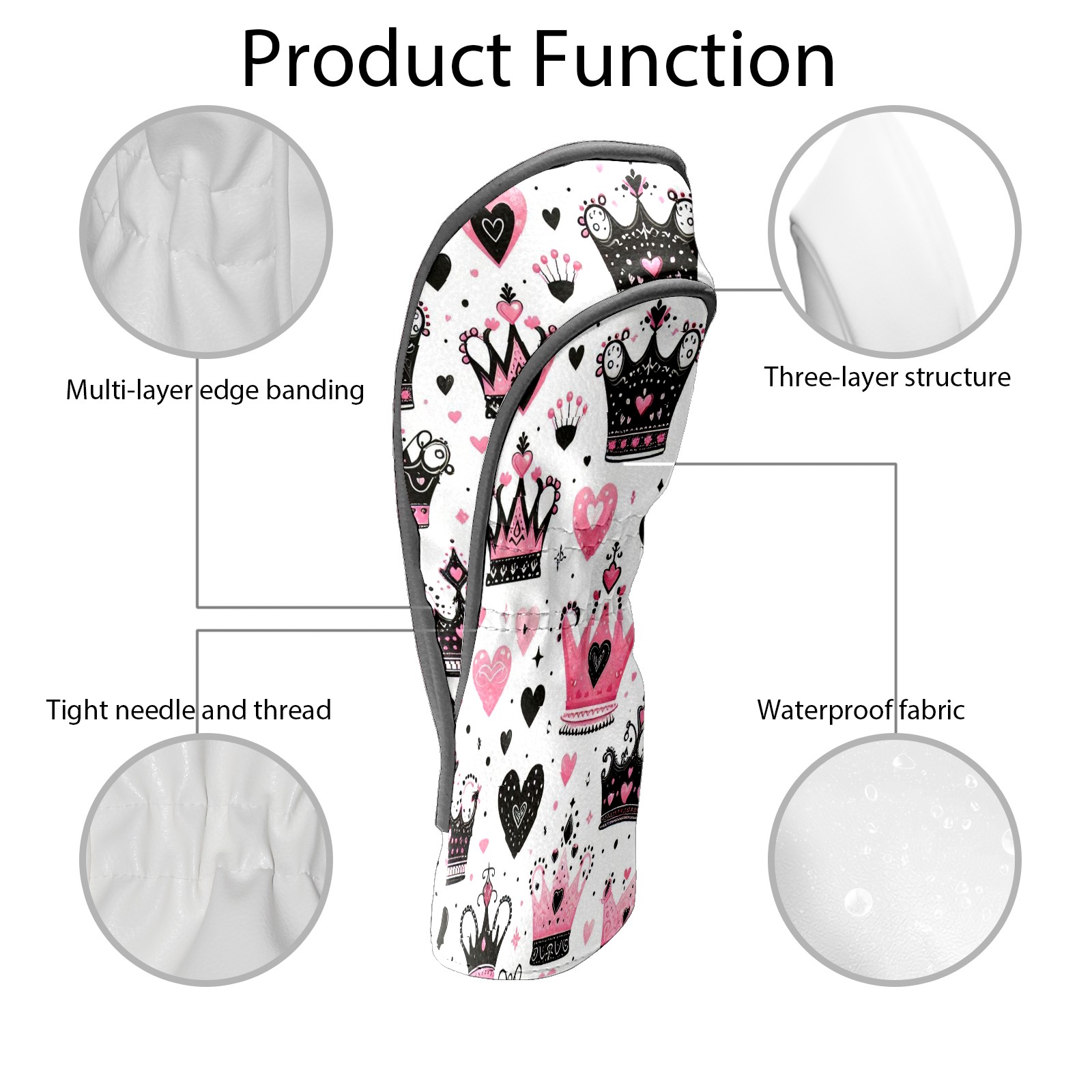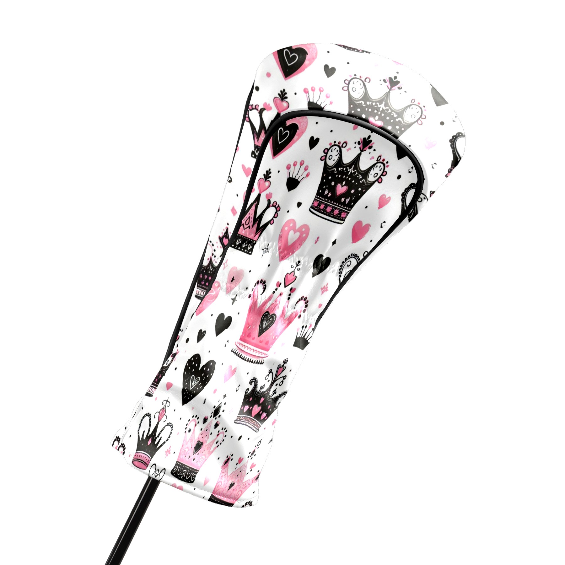 Golf Club Head Covers Pink Black Crown Hearts Design Premium Plush Velvet Lining, Waterproof Golf Headcovers Driver & Fairway Woods for Scratch Protection Novelty Gift for Men & Women