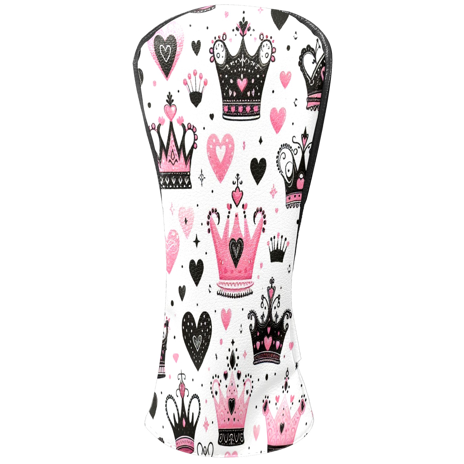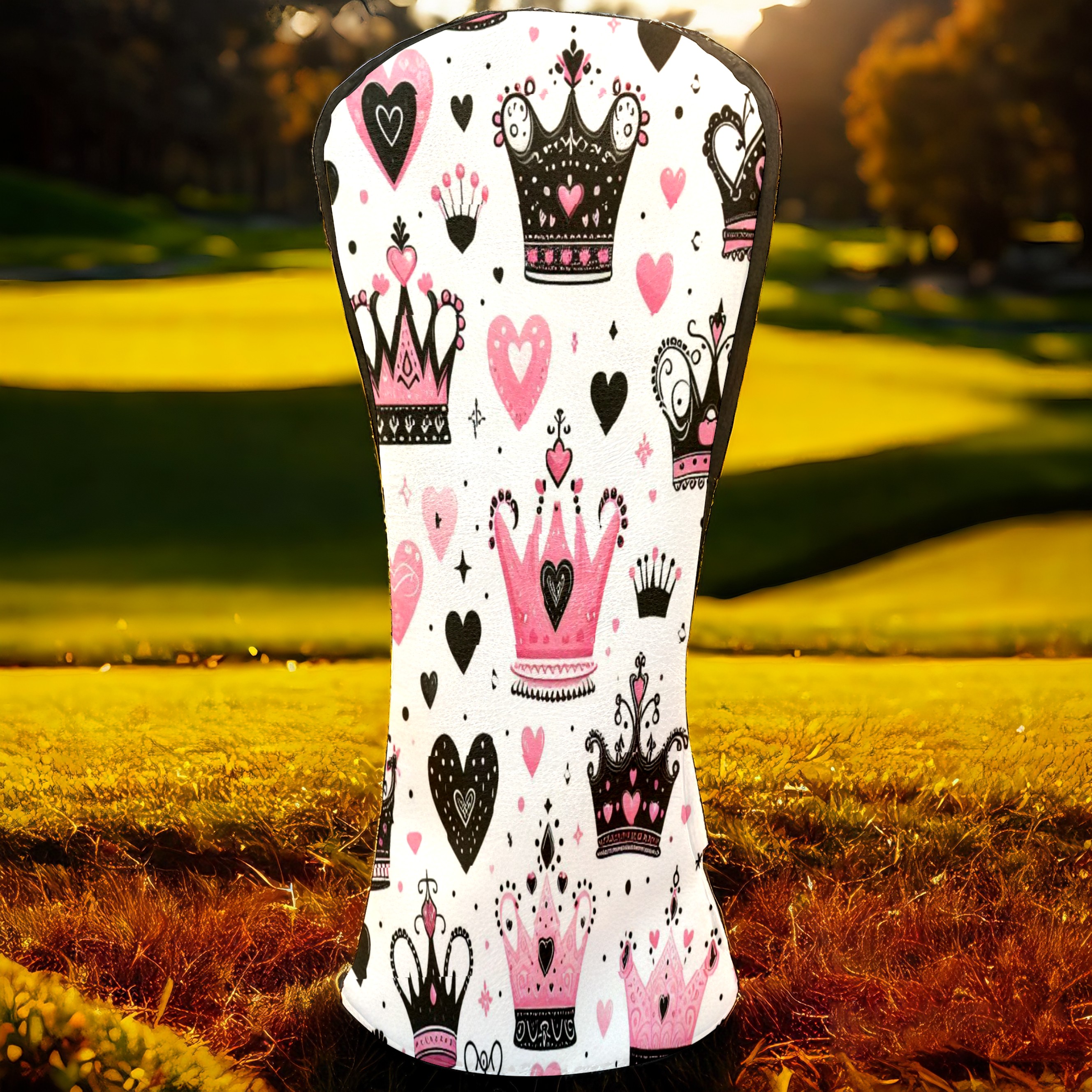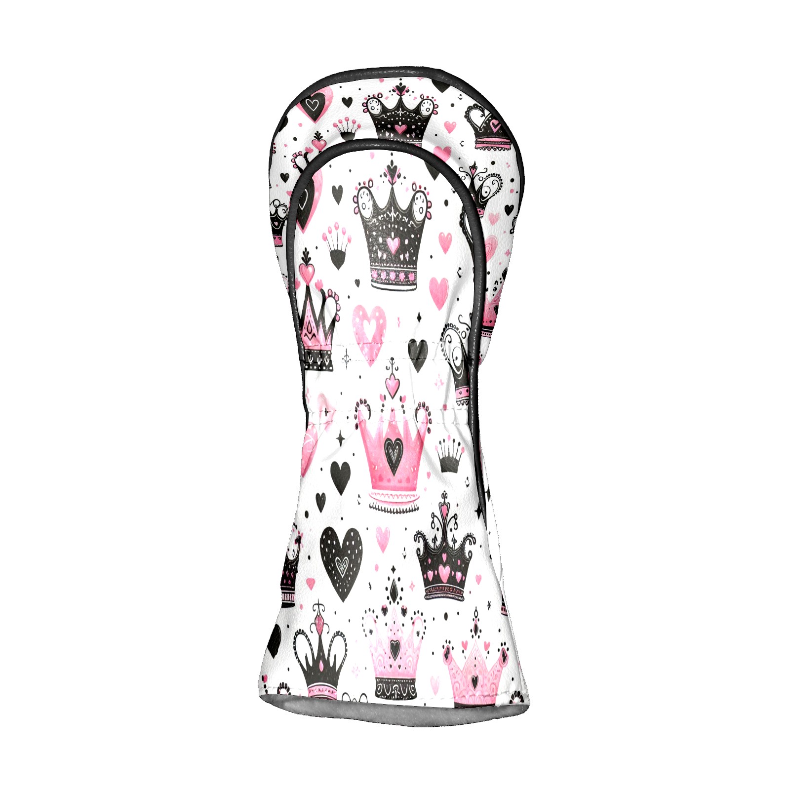 Golf Club Head Covers Pink Black Crown Hearts Design Premium Plush Velvet Lining, Waterproof Golf Headcovers Driver & Fairway Woods for Scratch Protection Novelty Gift for Men & Women