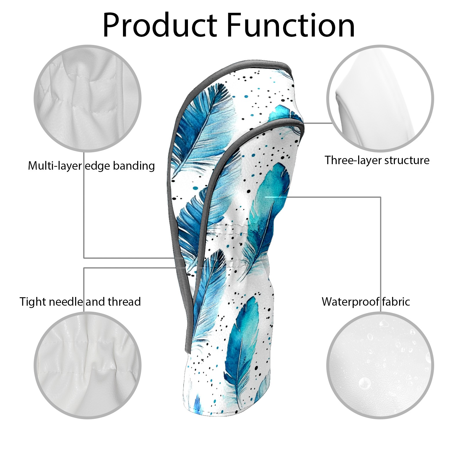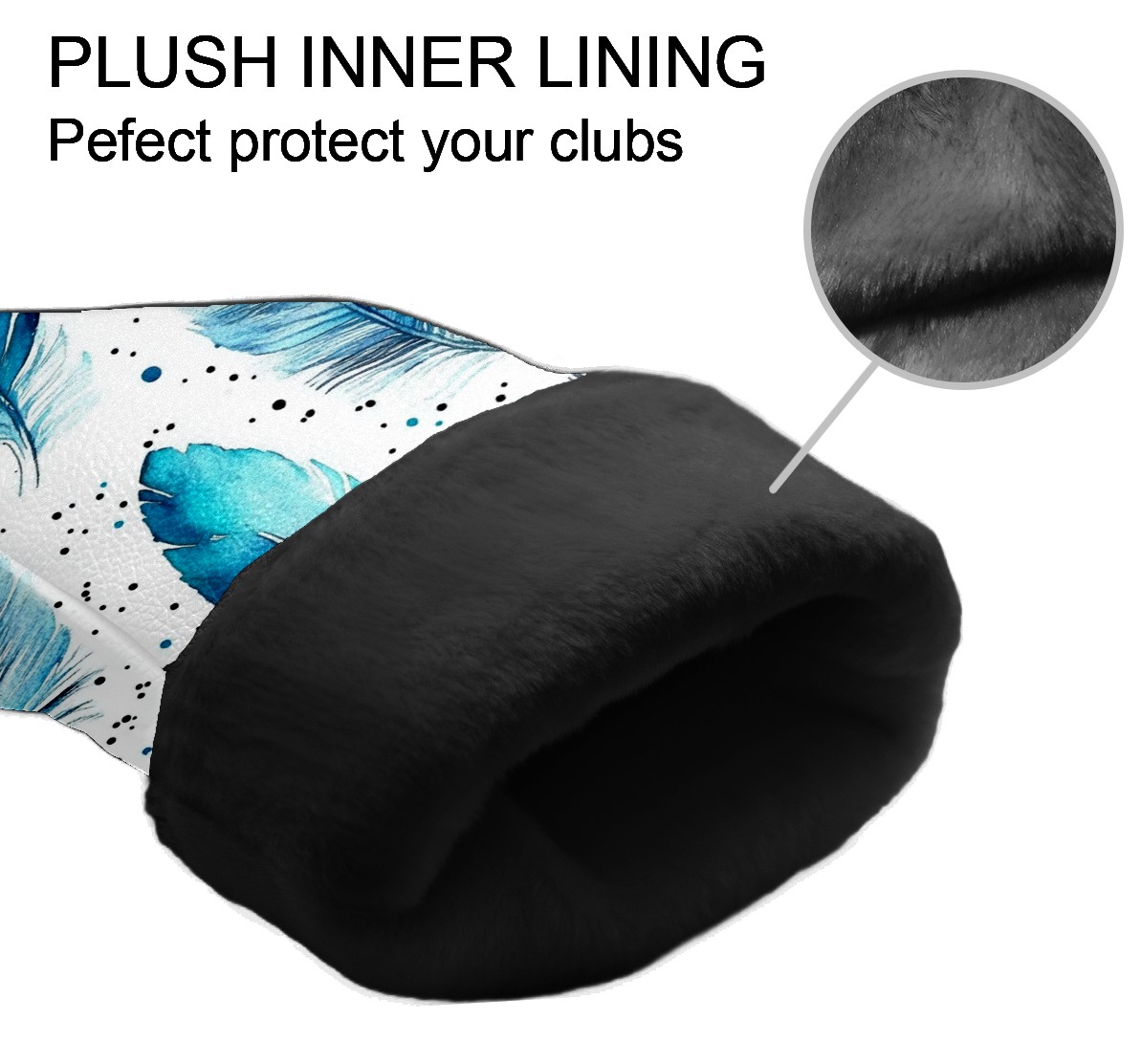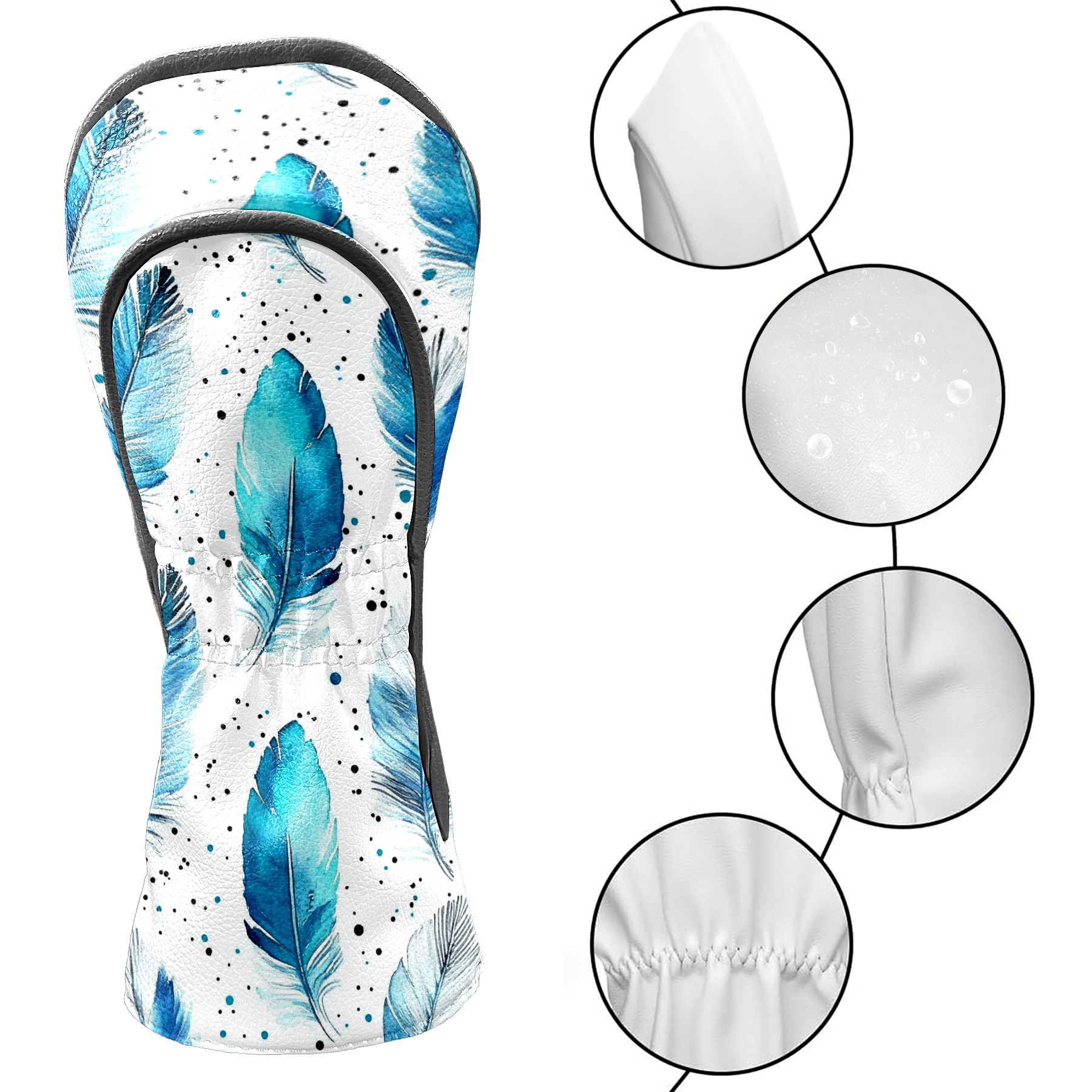 Golf Club Head Covers LightBlueFeathers Design Premium Plush Velvet Lining, Waterproof Golf Headcovers Driver & Fairway Woods for Scratch Protection Novelty Gift for Men & Women