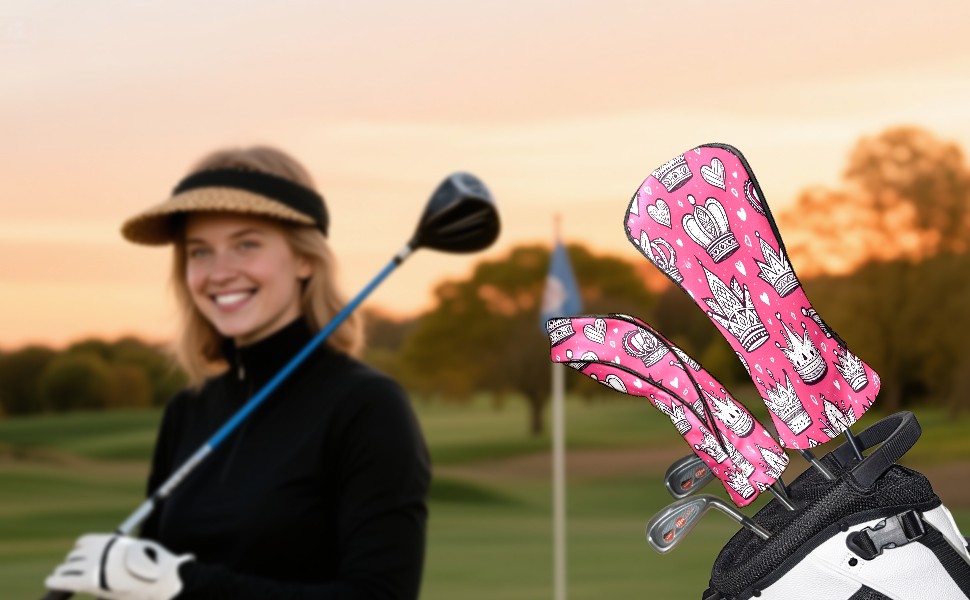Golf Club Head Covers RedCrownHearts Design Premium Plush Velvet Lining, Waterproof Golf Headcovers Driver & Fairway Woods for Scratch Protection Novelty Gift for Men & Women
