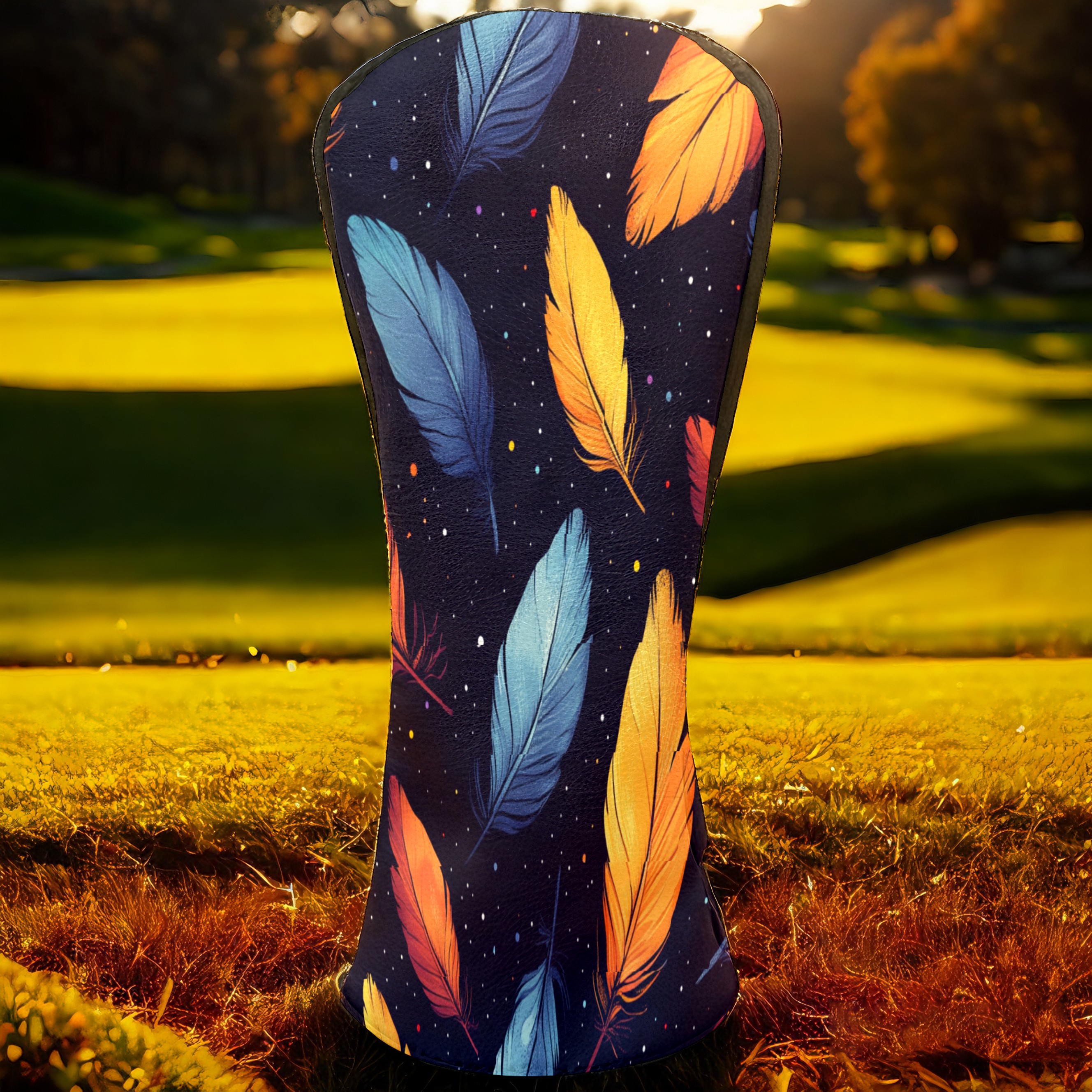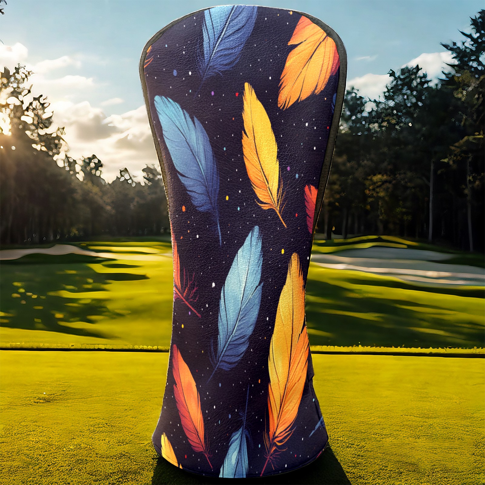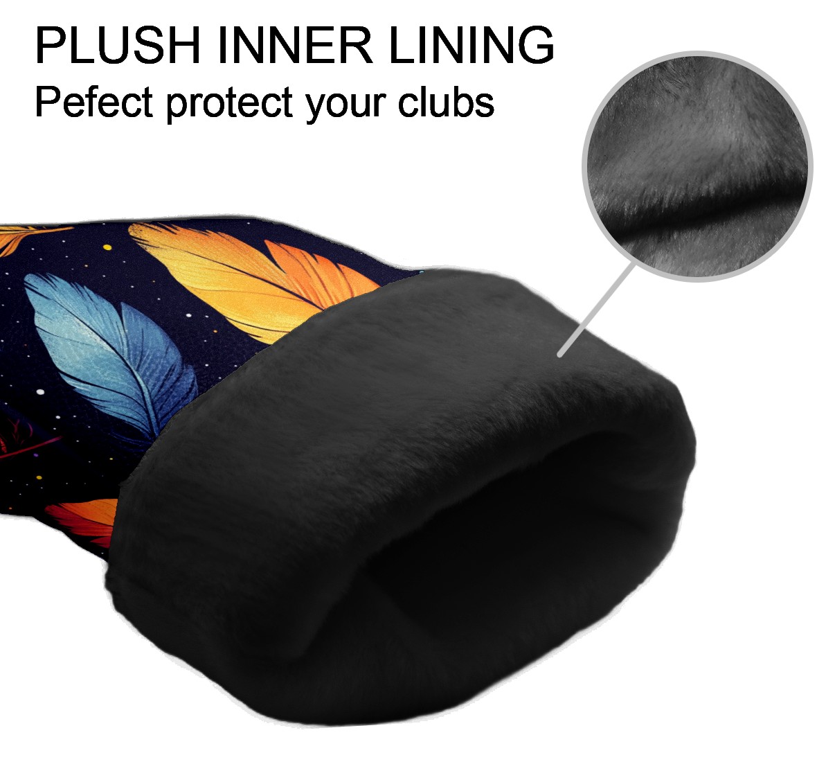 Golf Club Head Covers Purple Feathers Design Premium Plush Velvet Lining, Waterproof Golf Headcovers Driver & Fairway Woods for Scratch Protection Novelty Gift for Men & Women