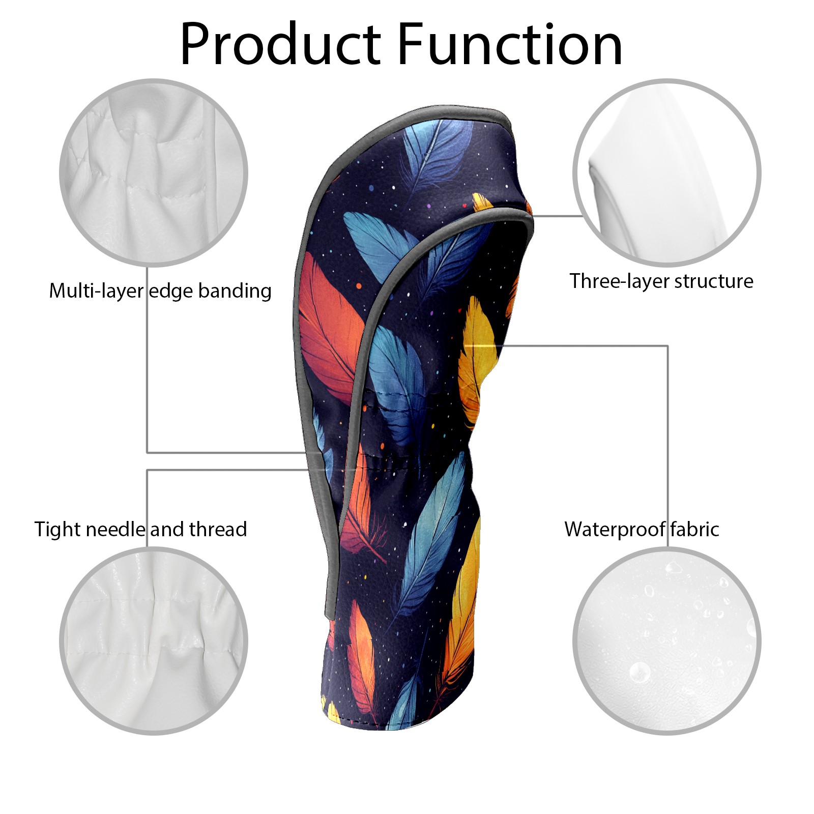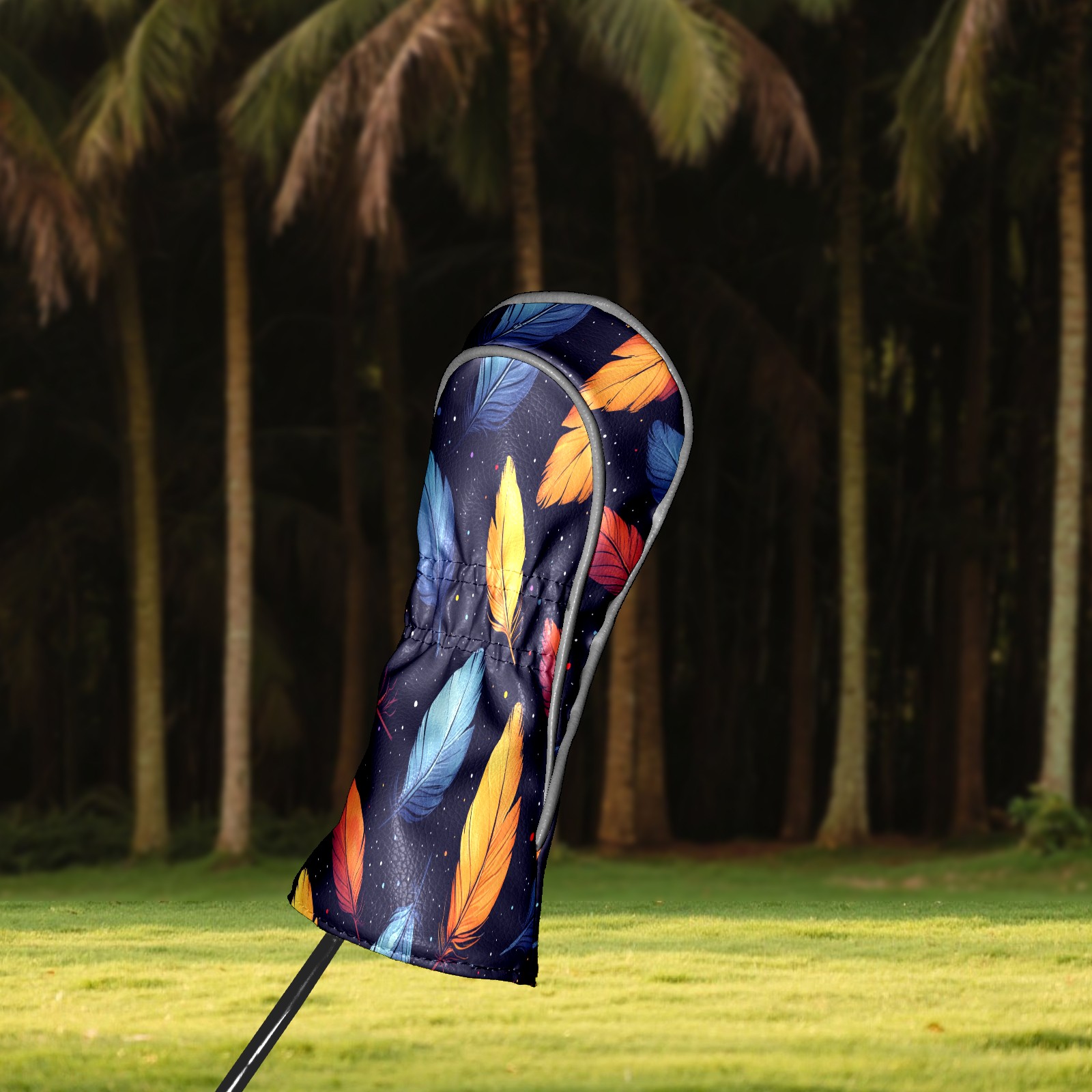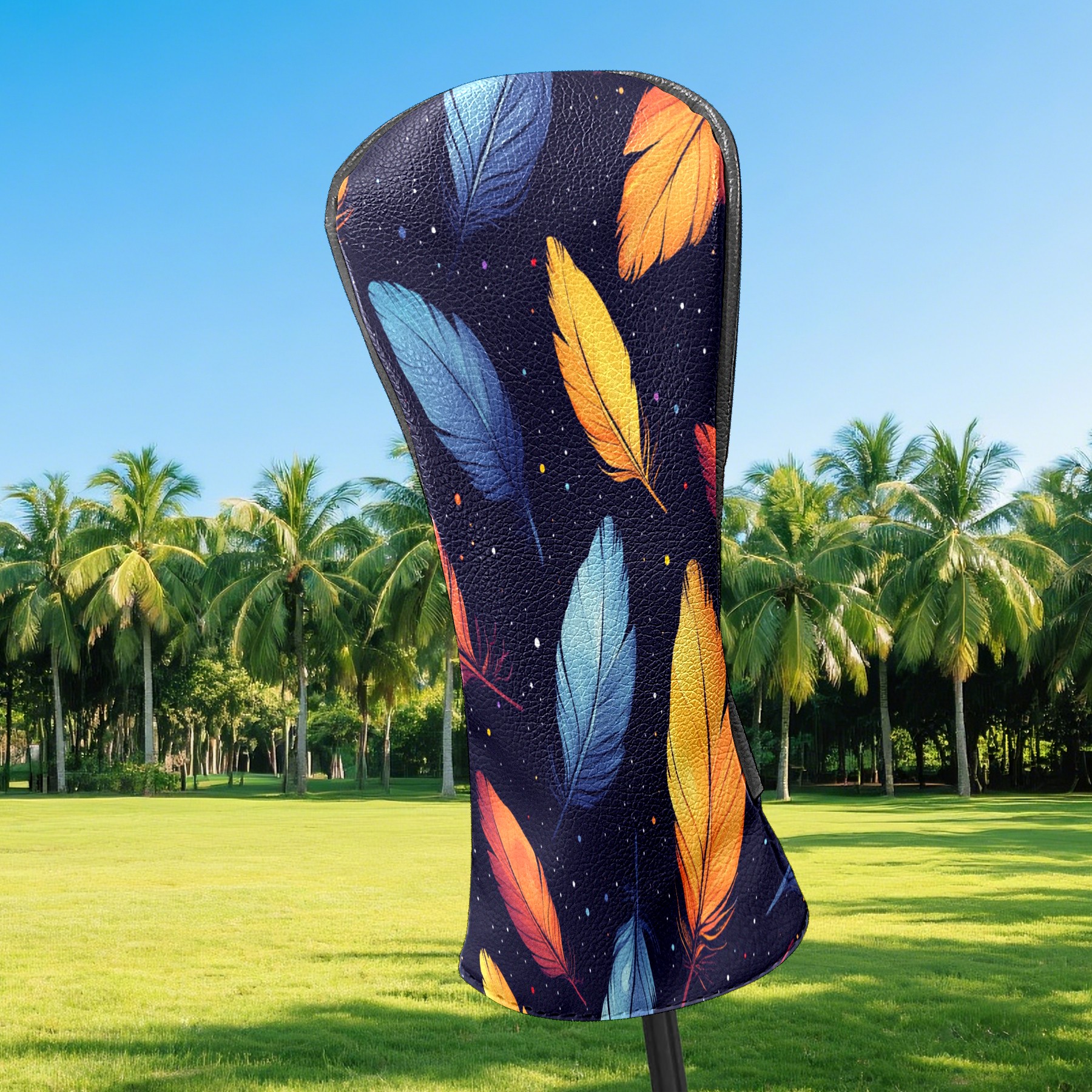 Golf Club Head Covers Purple Feathers Design Premium Plush Velvet Lining, Waterproof Golf Headcovers Driver & Fairway Woods for Scratch Protection Novelty Gift for Men & Women
