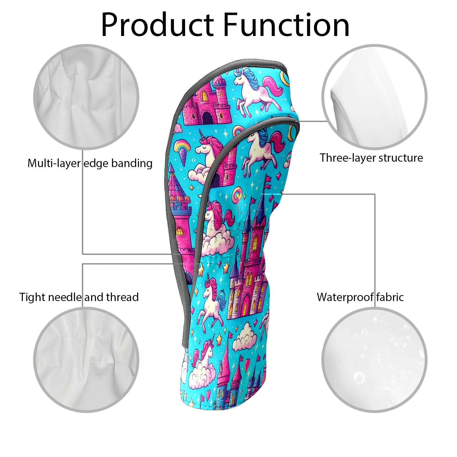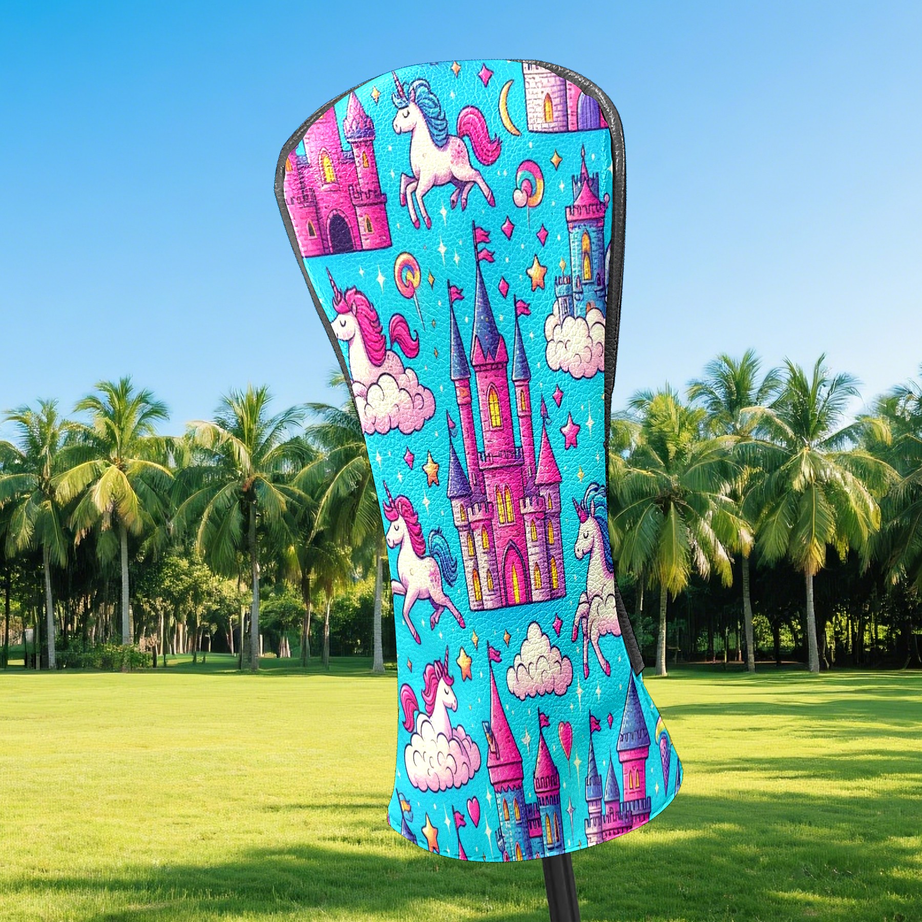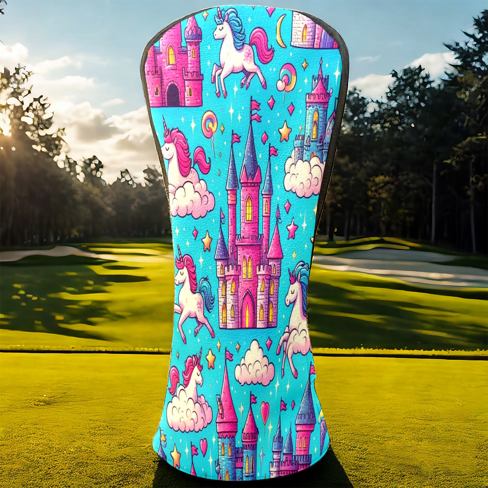 Golf Club Head Covers Blue Unicorn Castle Design Premium Plush Velvet Lining, Waterproof Golf Headcovers Driver & Fairway Woods for Scratch Protection Novelty Gift for Men & Women