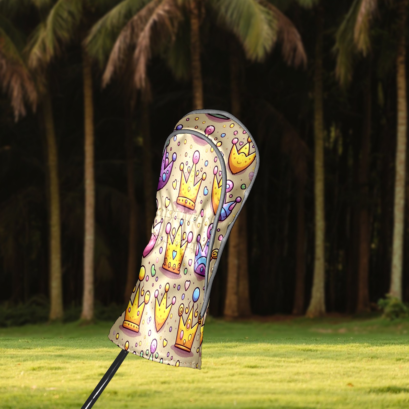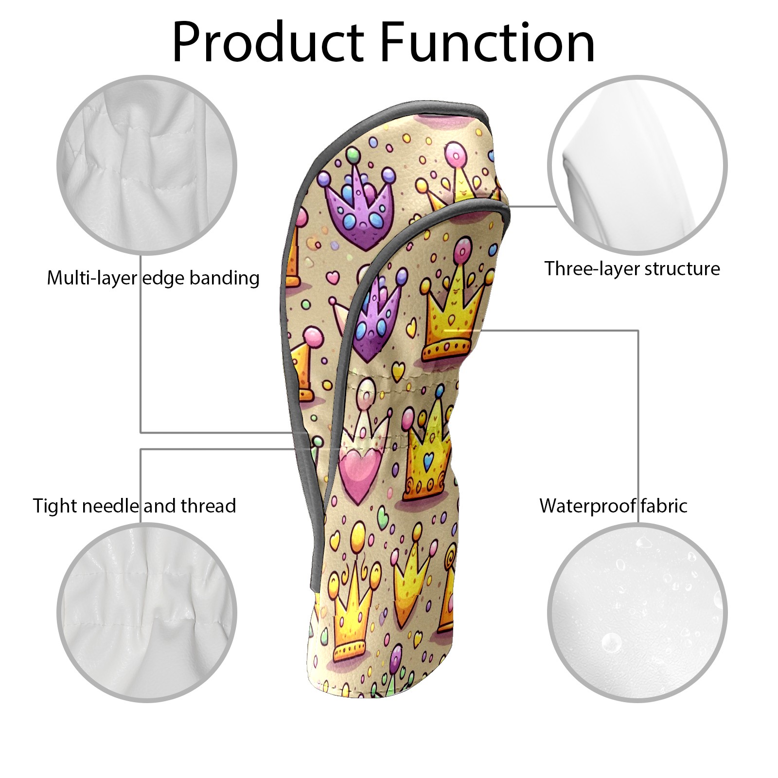 Golf Club Head Covers Yellow Purple Crowns Design Premium Plush Velvet Lining, Waterproof Golf Headcovers Driver & Fairway Woods for Scratch Protection Novelty Gift for Men & Women