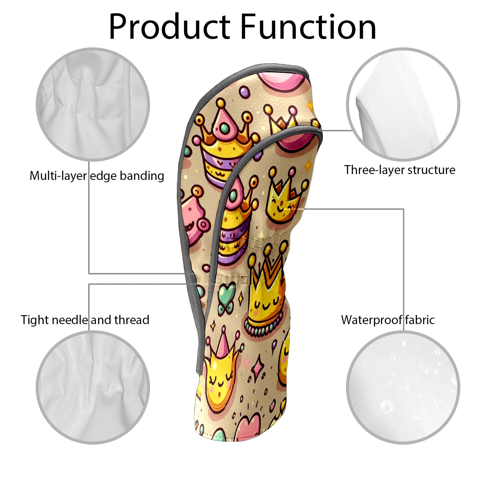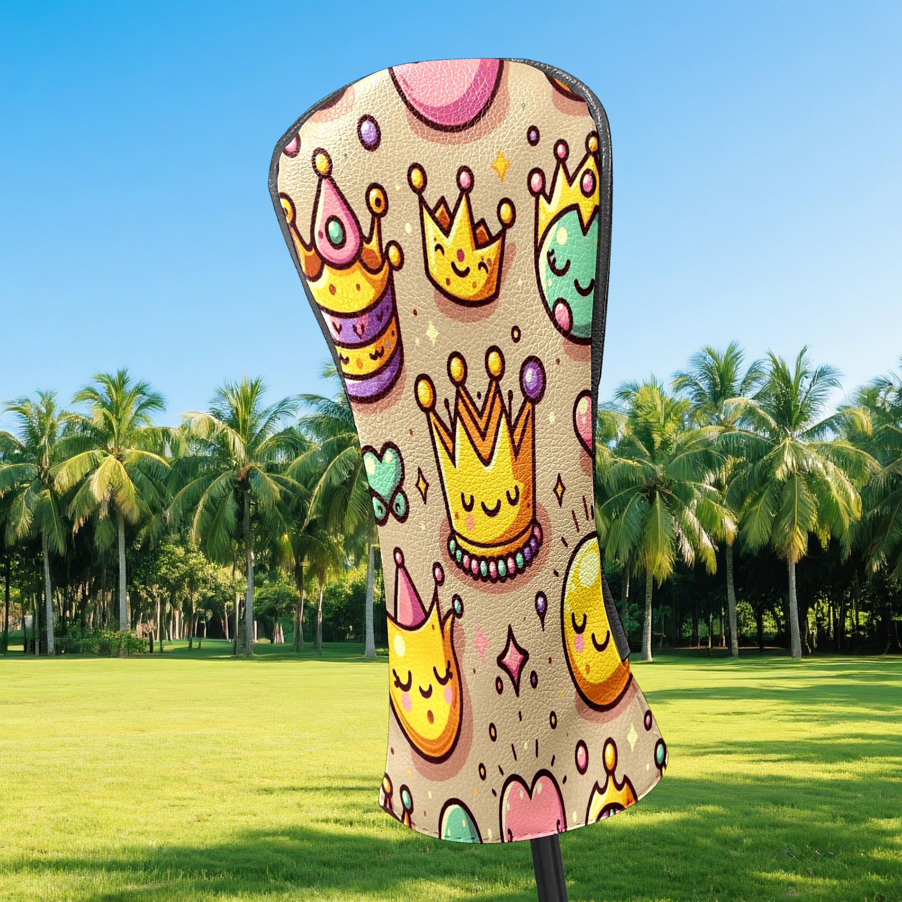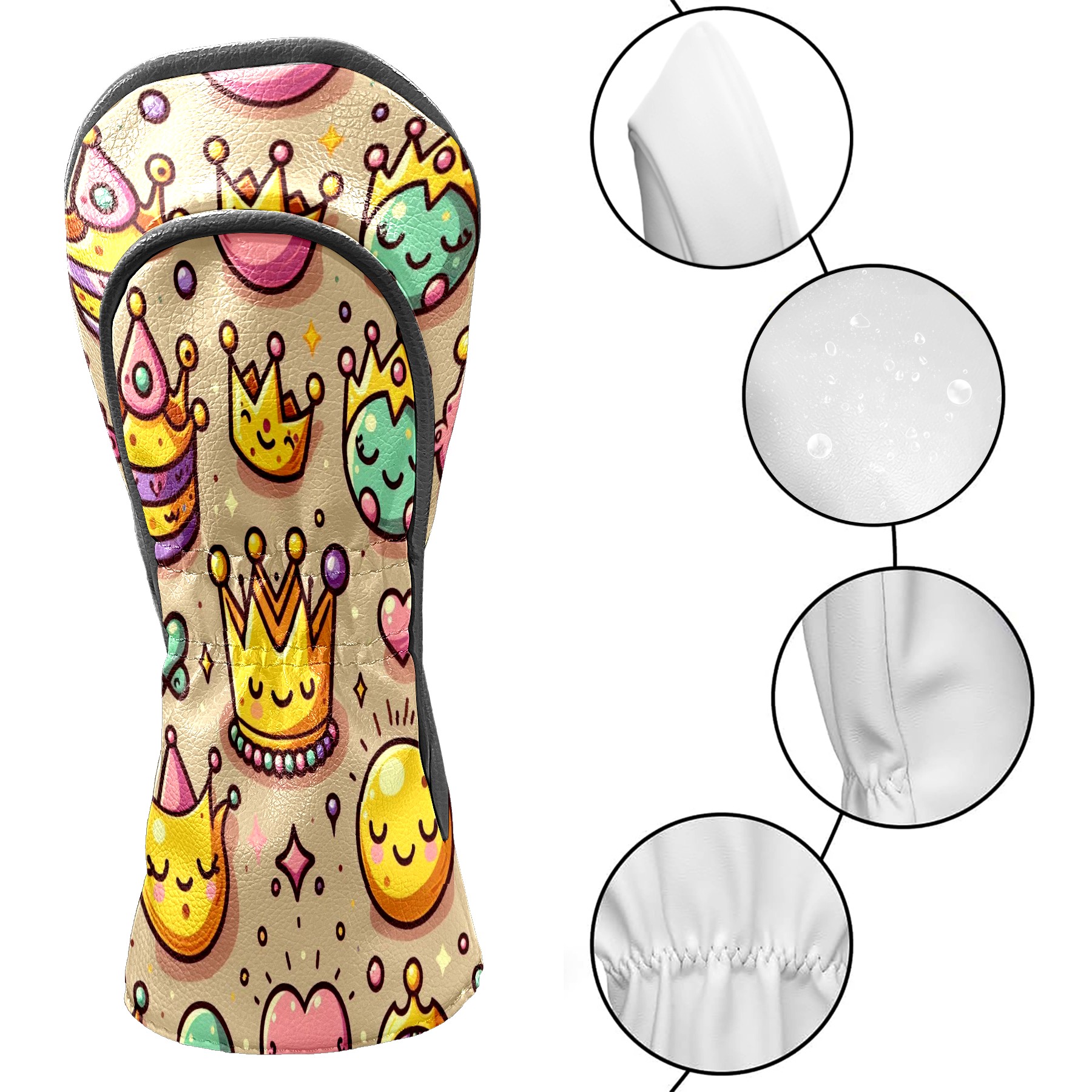 Golf Club Head Covers Yellow Crown Design Premium Plush Velvet Lining, Waterproof Golf Headcovers Driver & Fairway Woods for Scratch Protection Novelty Gift for Men & Women