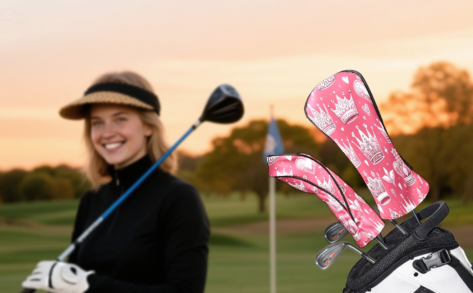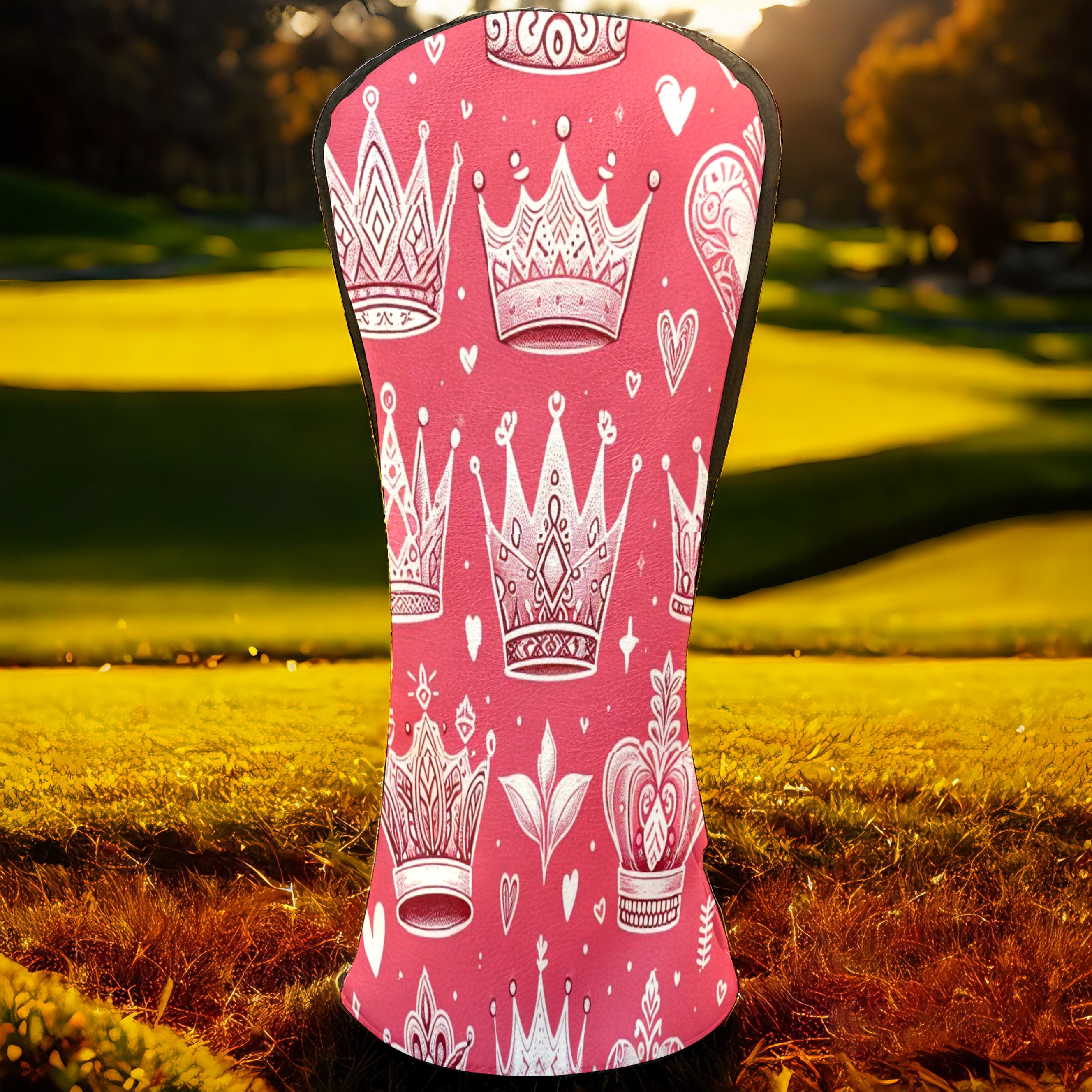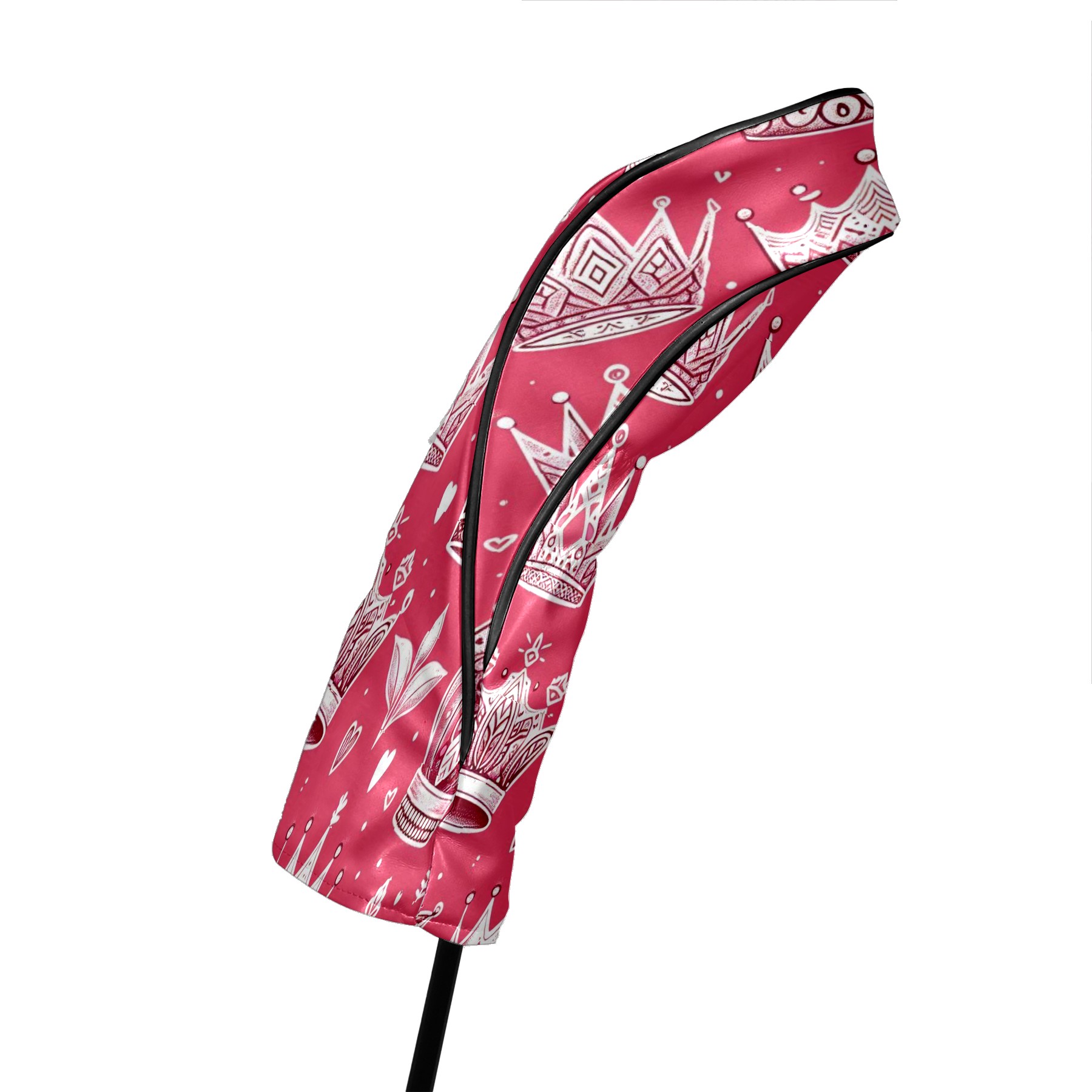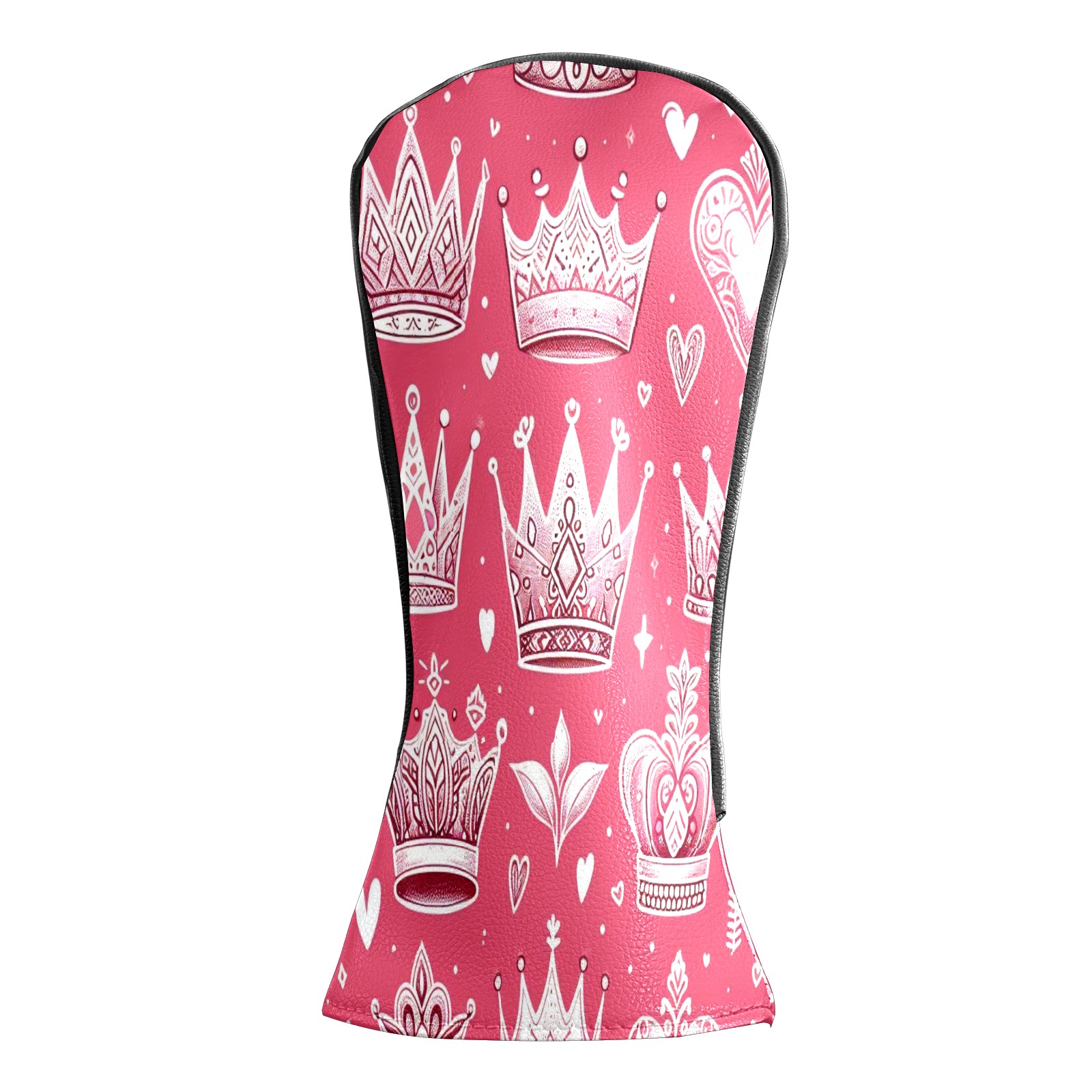 Golf Club Head Covers Pink Crown Heart Design Premium Plush Velvet Lining, Waterproof Golf Headcovers Driver & Fairway Woods for Scratch Protection Novelty Gift for Men & Women
