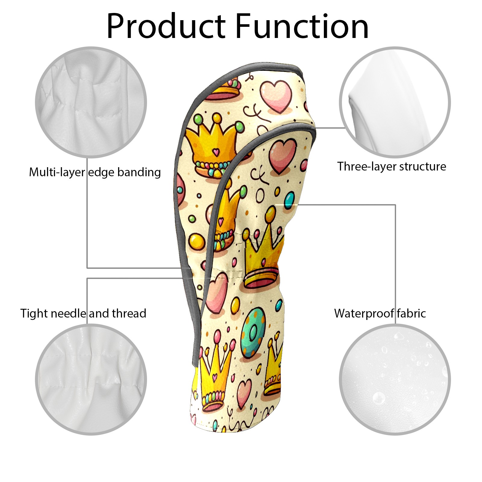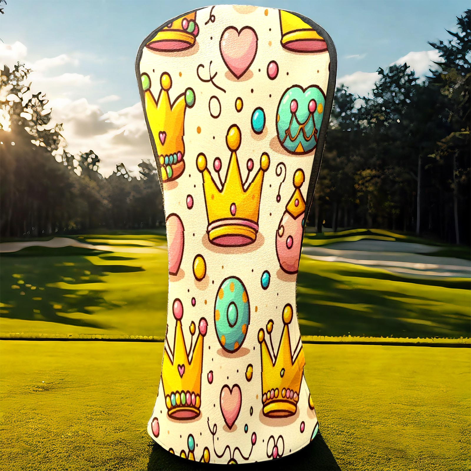 Golf Club Head Covers Yellow Crowns Design Premium Plush Velvet Lining, Waterproof Golf Headcovers Driver & Fairway Woods for Scratch Protection Novelty Gift for Men & Women