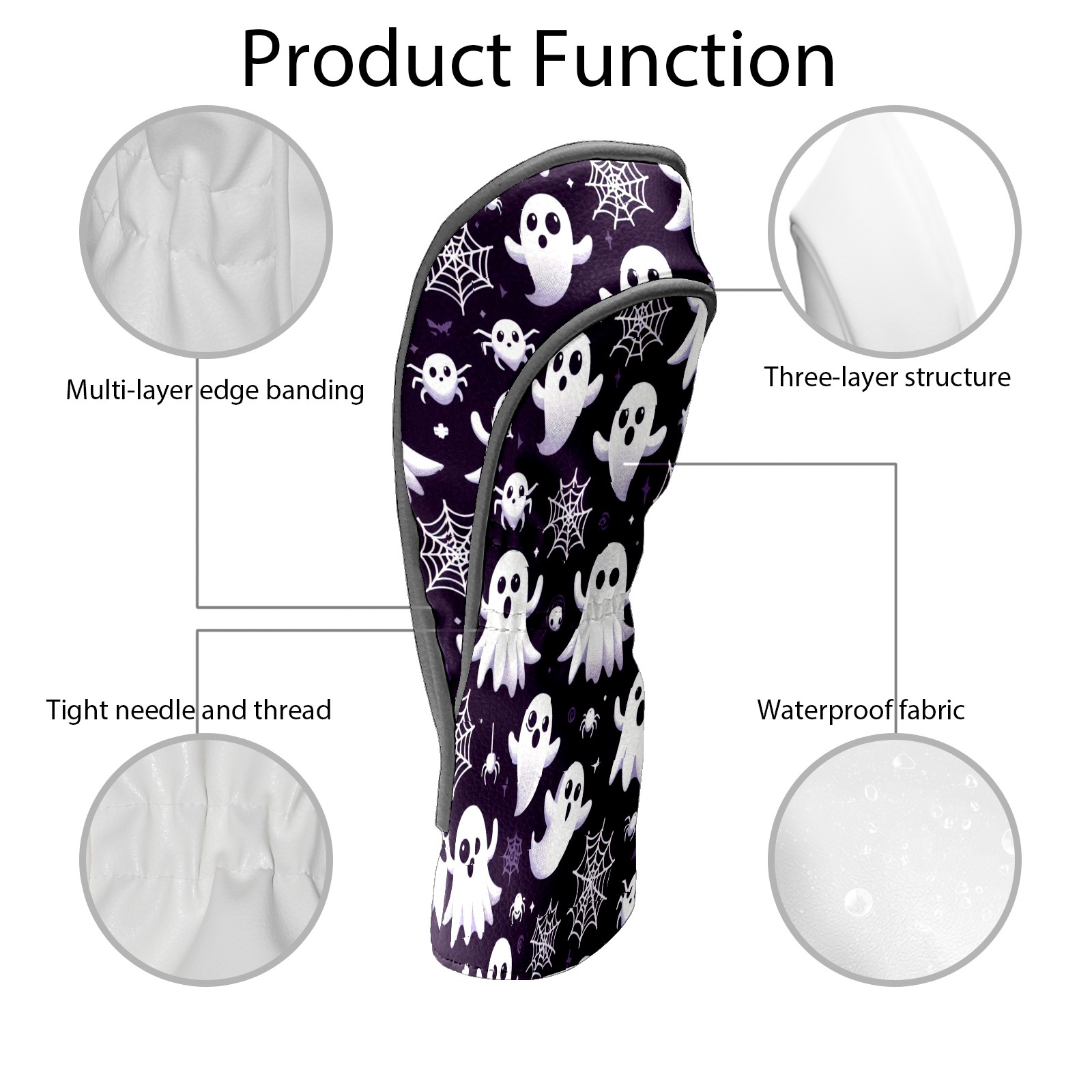 Golf Club Head Covers DarkPurple Ghost Snowflake Design Premium Plush Velvet Lining, Waterproof Golf Headcovers Driver & Fairway Woods for Scratch Protection Novelty Gift for Men & Women