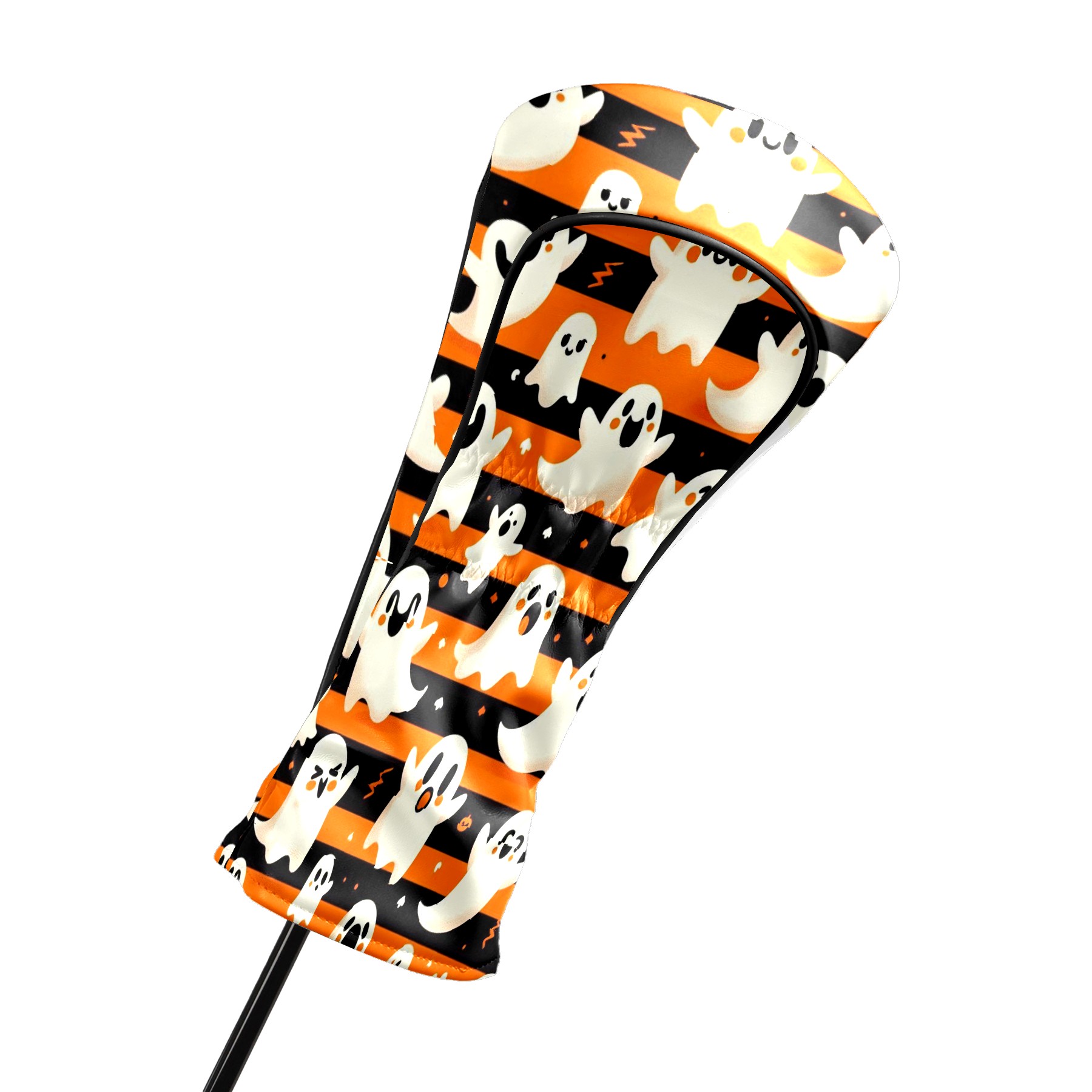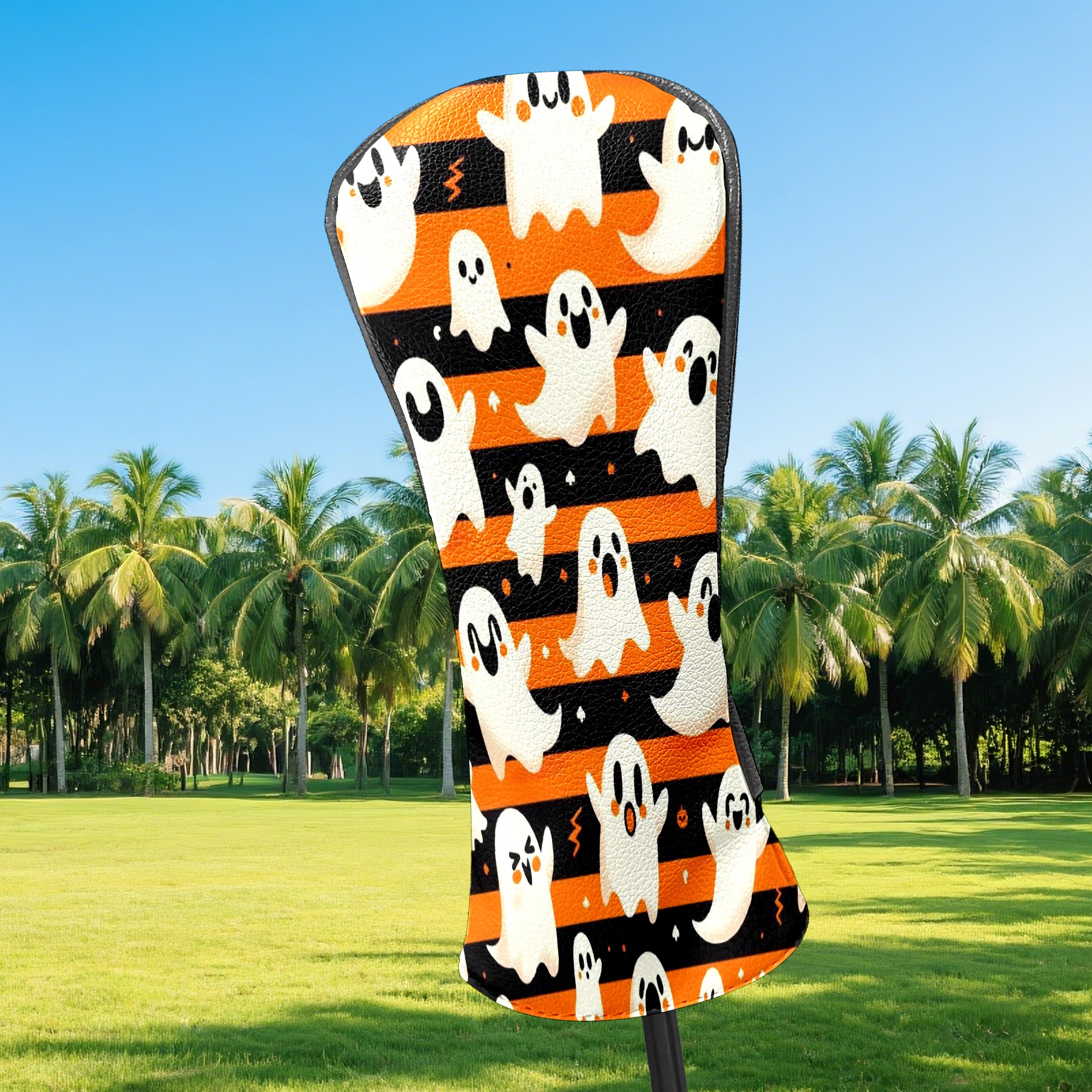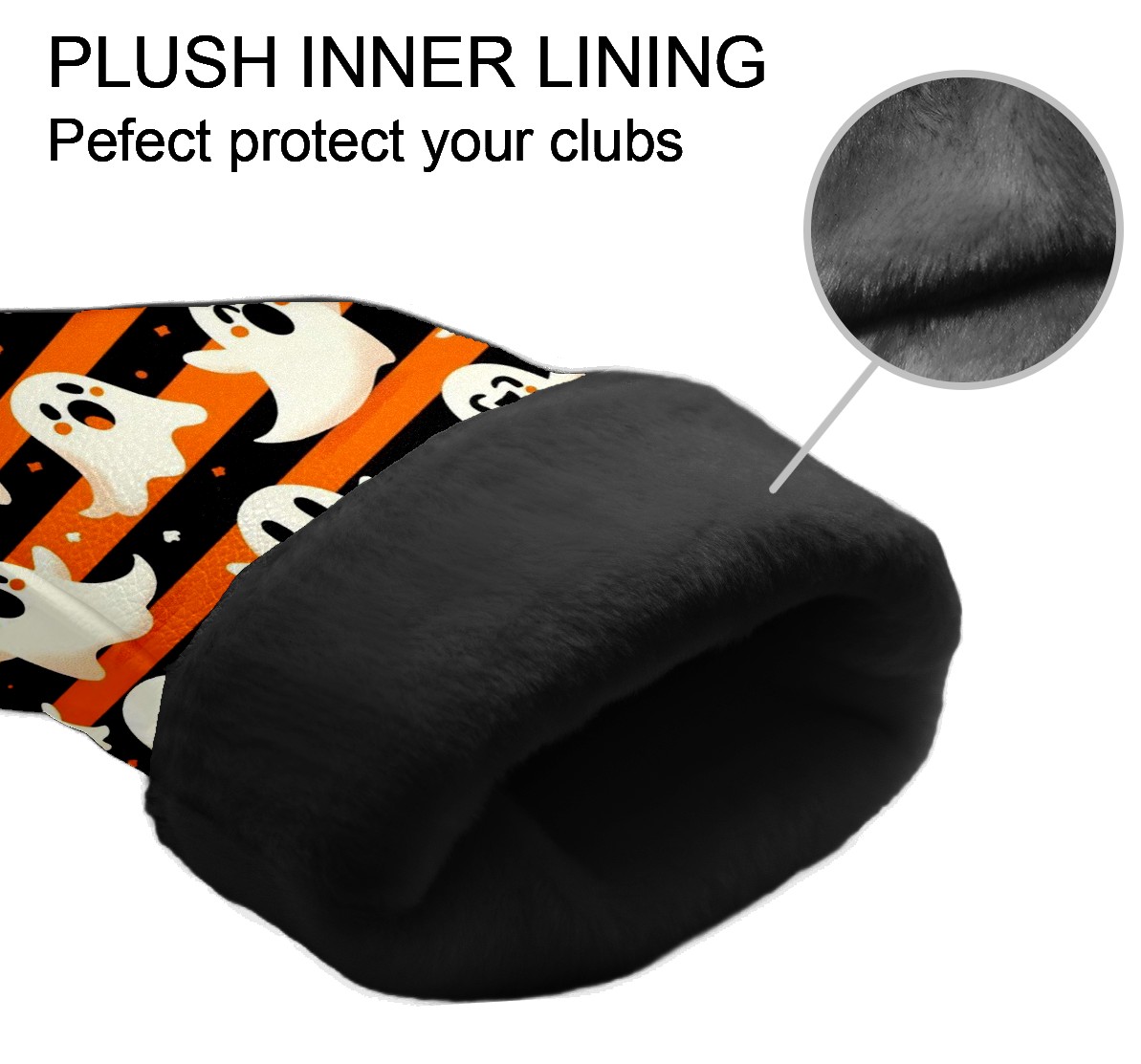 Golf Club Head Covers Orange Stripe Ghost Pumpkin Design Premium Plush Velvet Lining, Waterproof Golf Headcovers Driver & Fairway Woods for Scratch Protection Novelty Gift for Men & Women