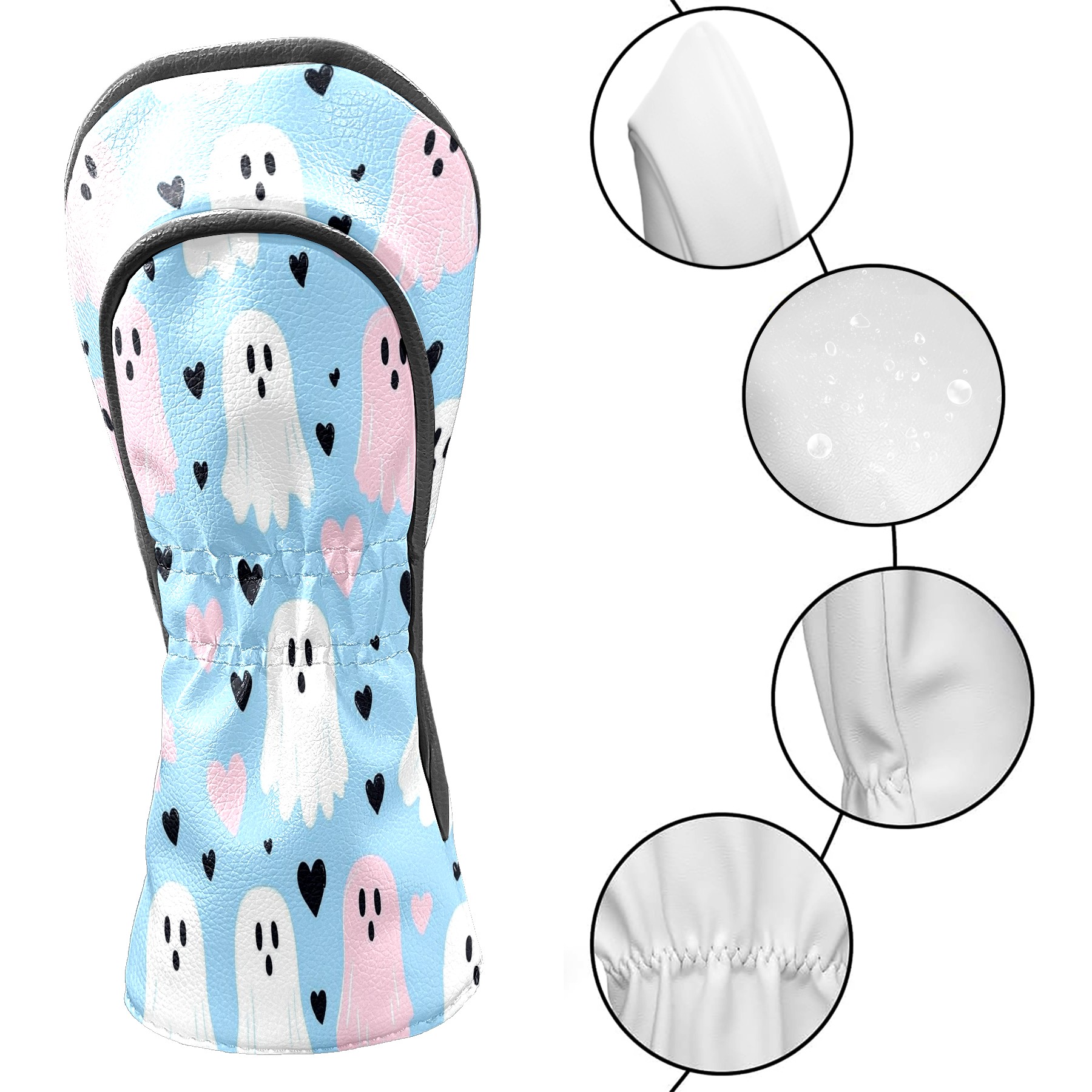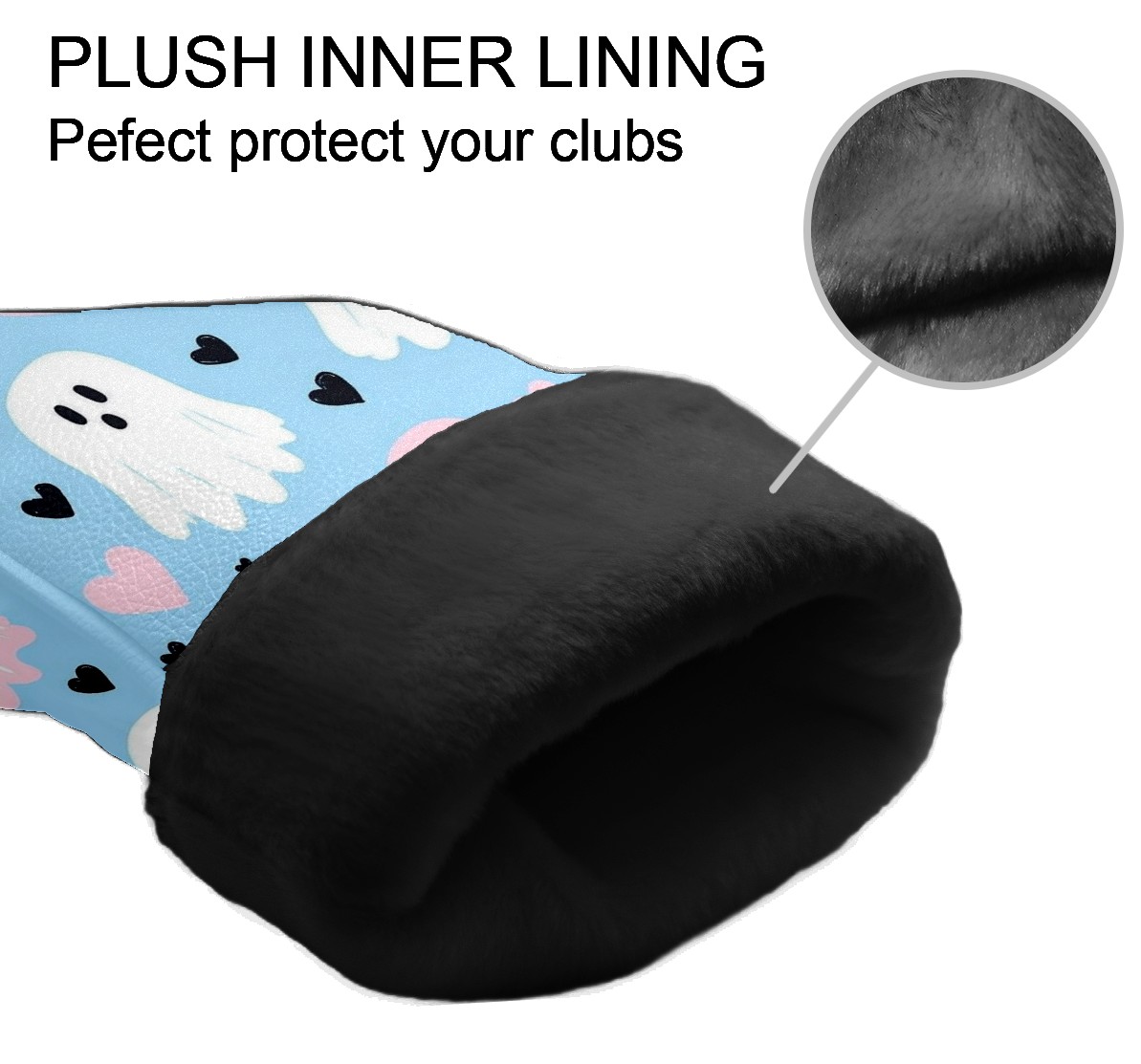 Golf Club Head Covers LightBlue GhostHeart Design Premium Plush Velvet Lining, Waterproof Golf Headcovers Driver & Fairway Woods for Scratch Protection Novelty Gift for Men & Women