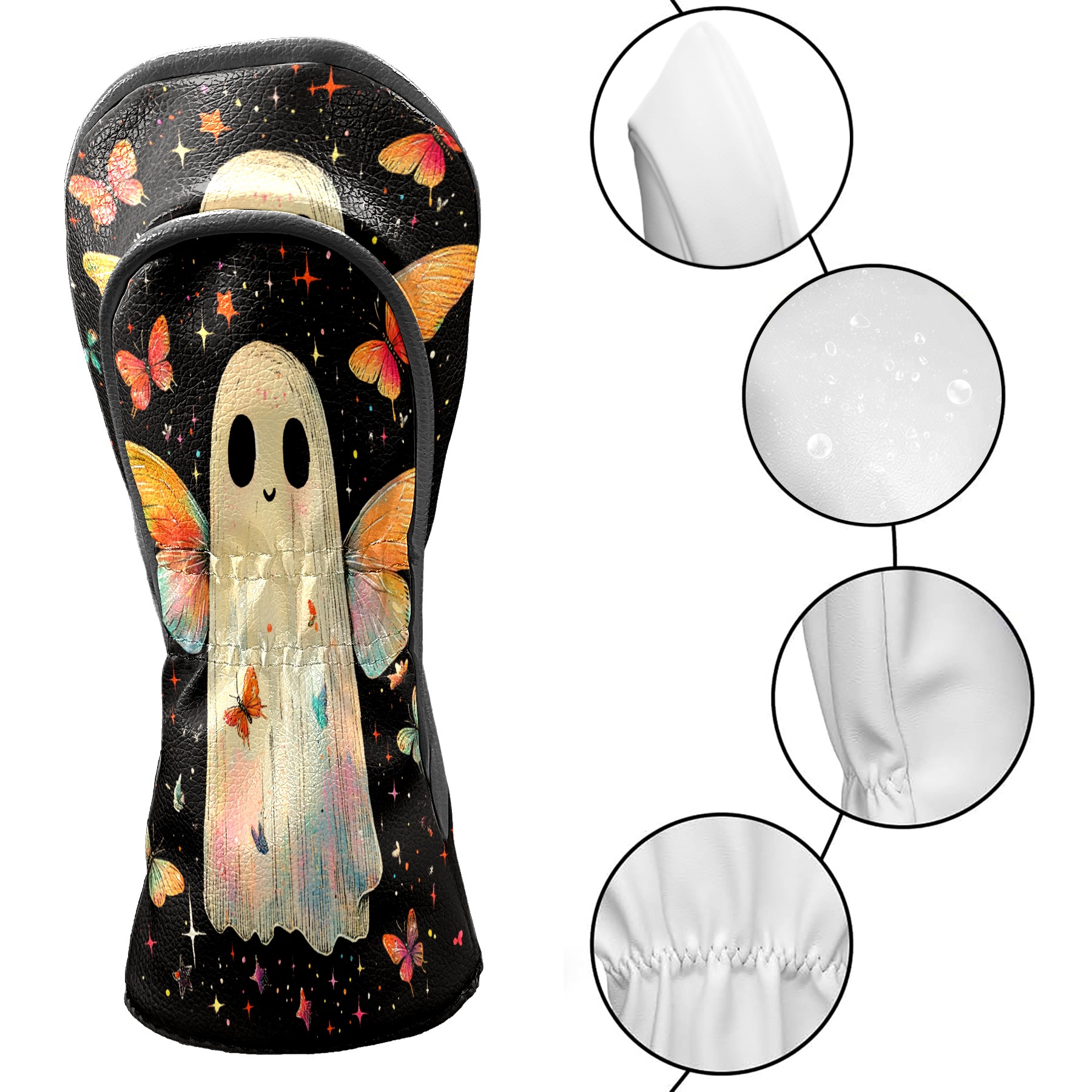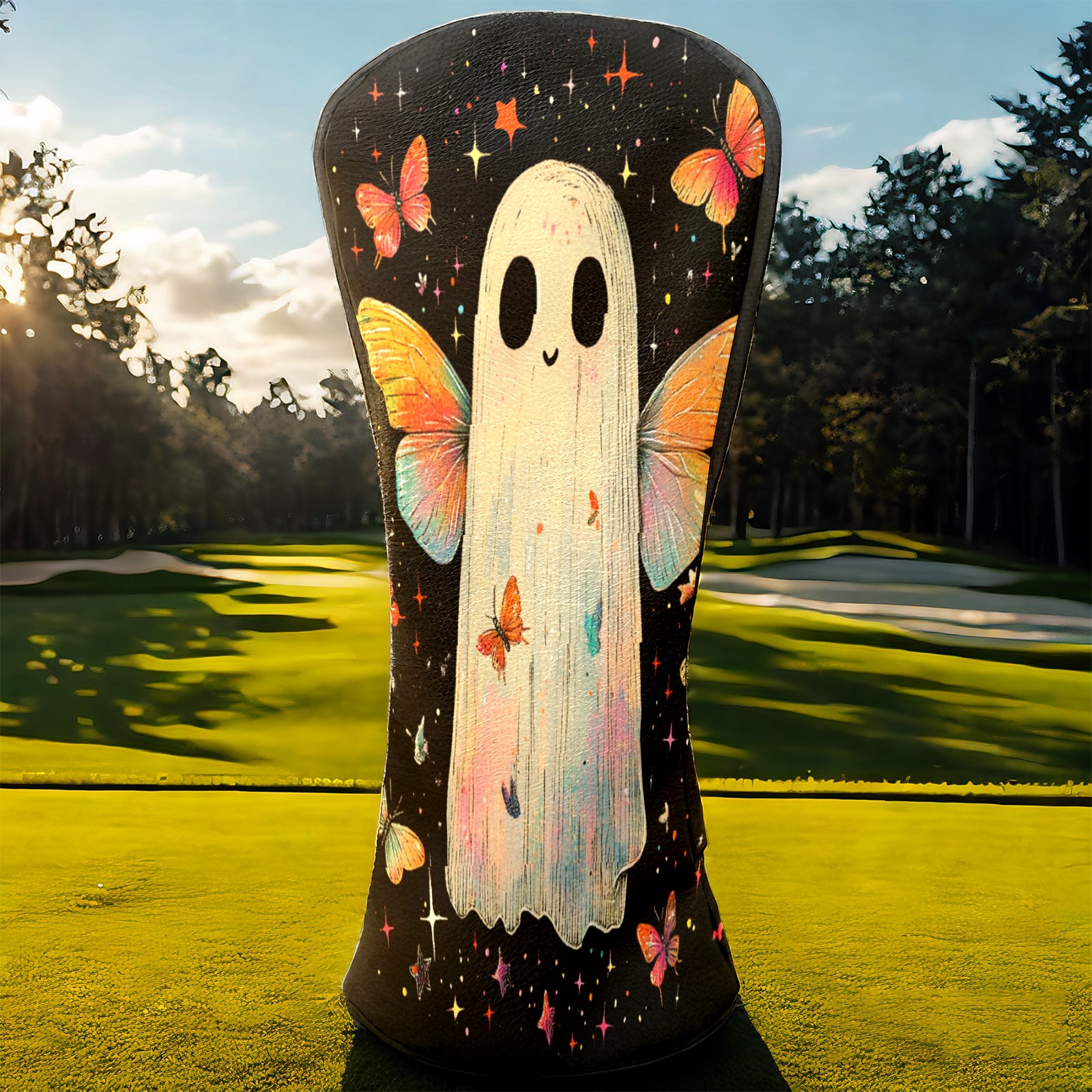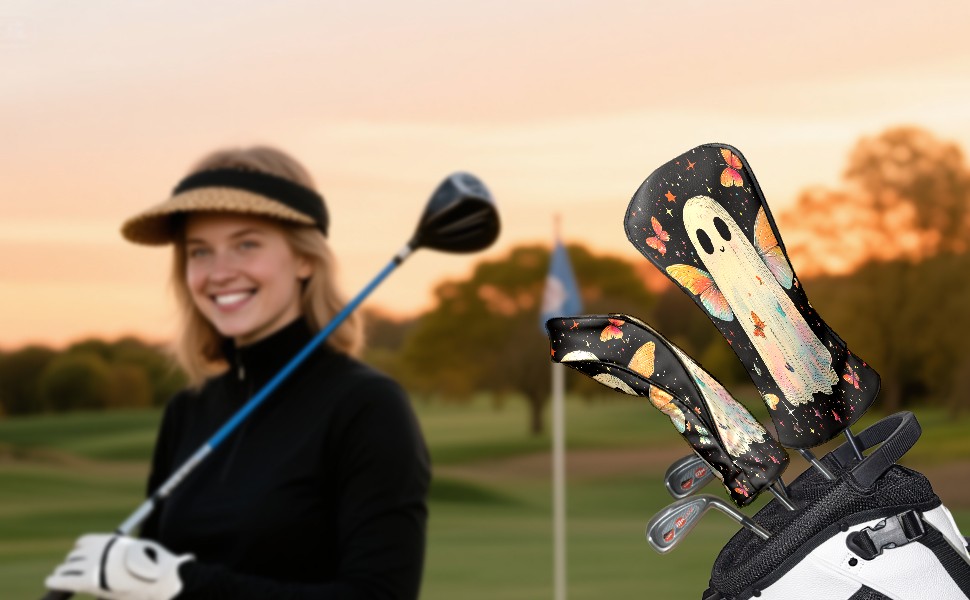 Golf Club Head Covers Colorful Ghost Butterfly Design Premium Plush Velvet Lining, Waterproof Golf Headcovers Driver & Fairway Woods for Scratch Protection Novelty Gift for Men & Women