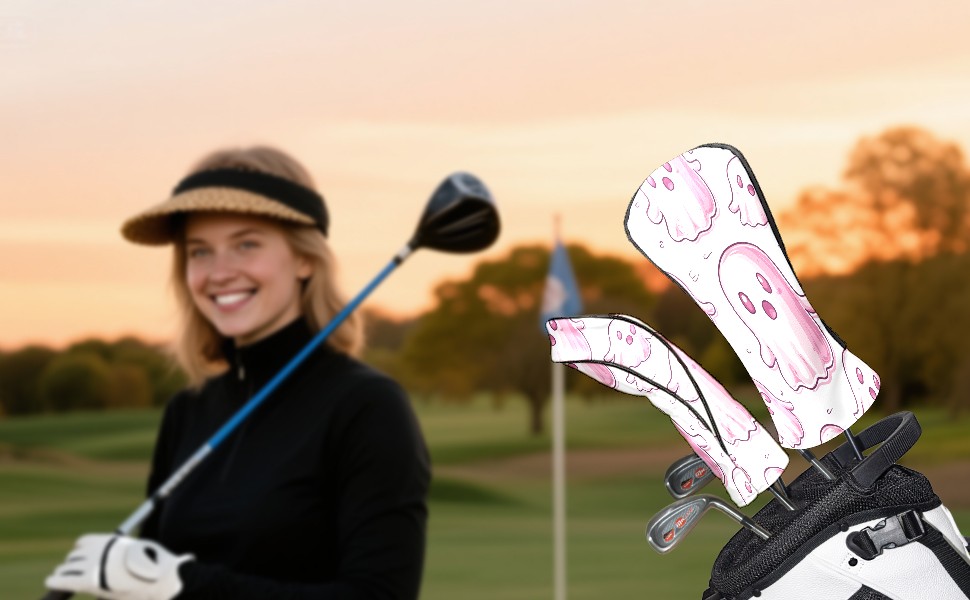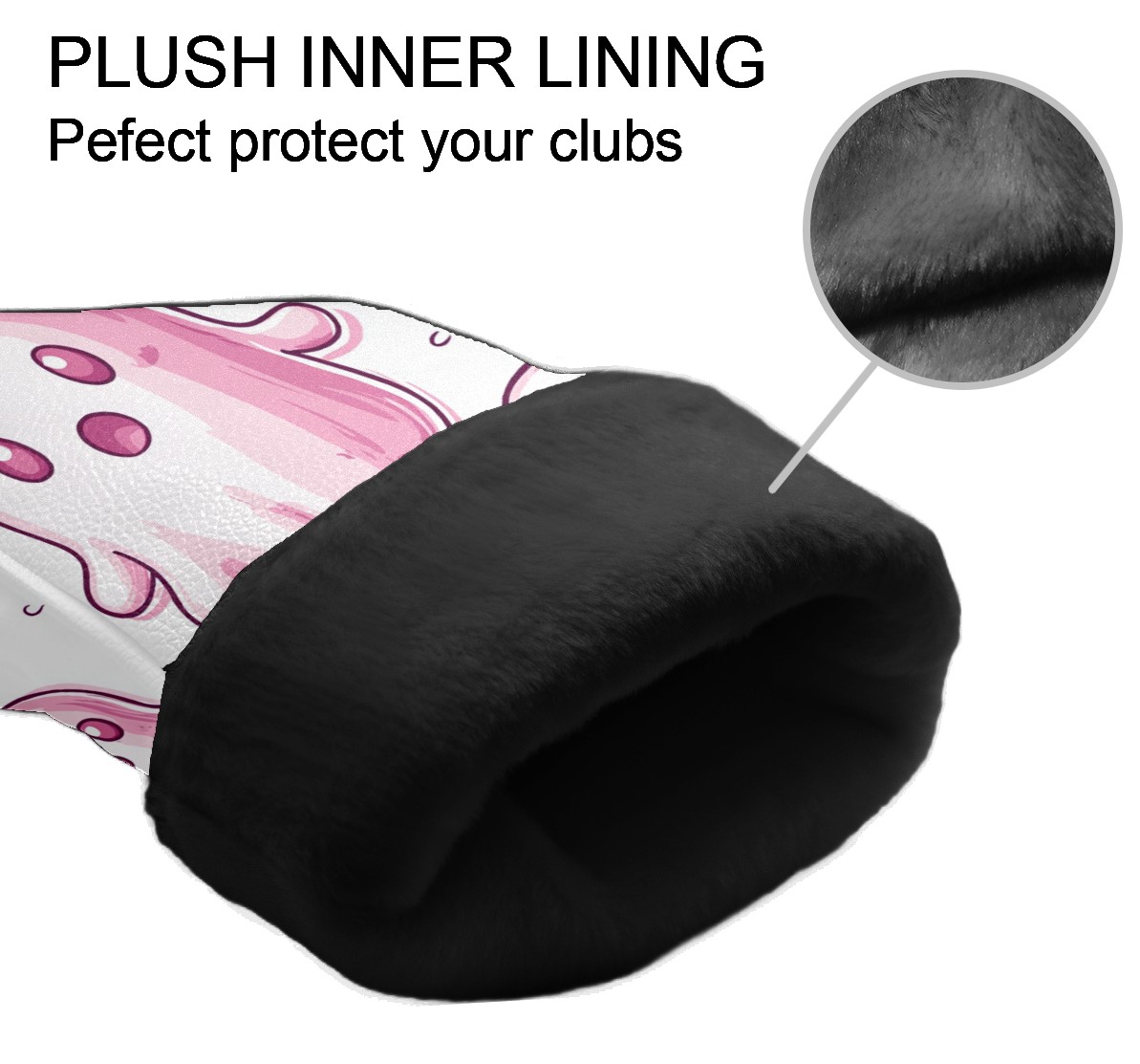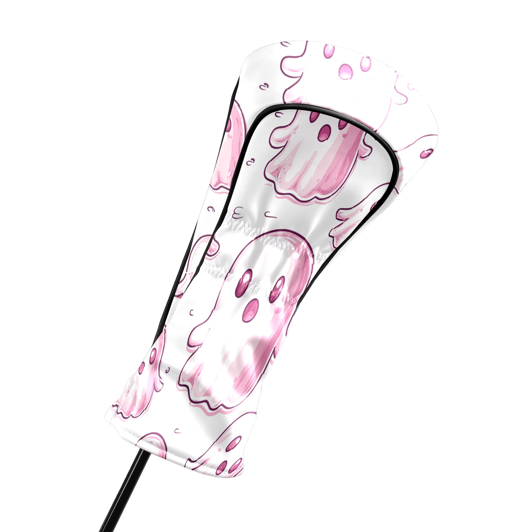 Golf Club Head Covers DarkPink Cartoon Ghosts Design Premium Plush Velvet Lining, Waterproof Golf Headcovers Driver & Fairway Woods for Scratch Protection Novelty Gift for Men & Women