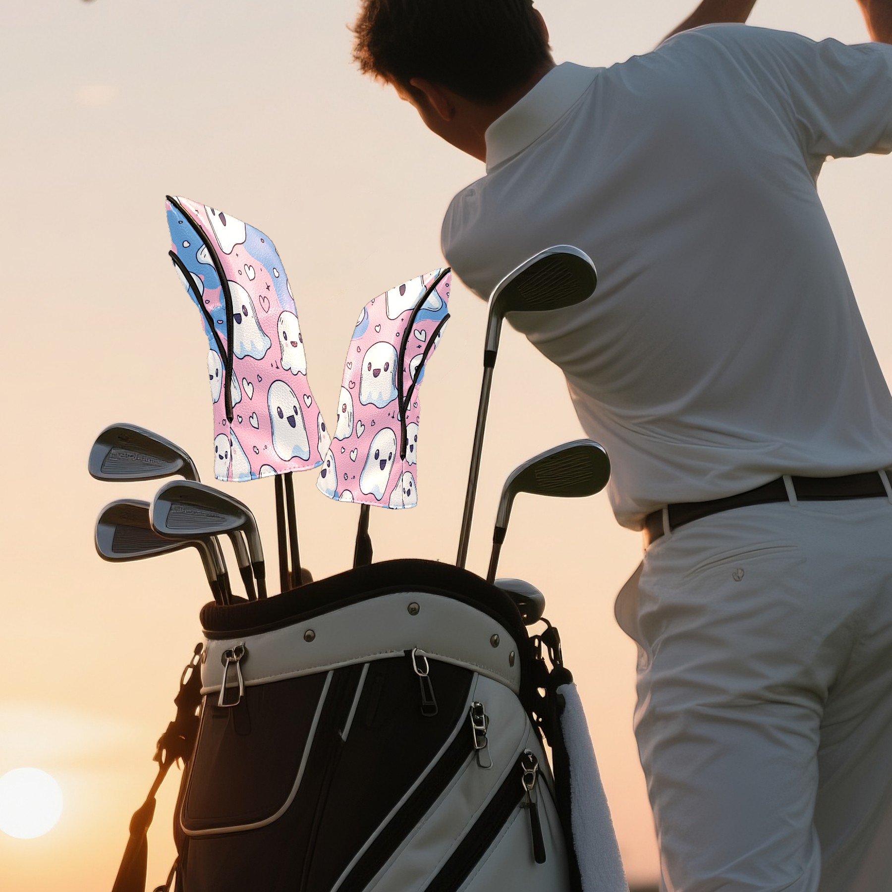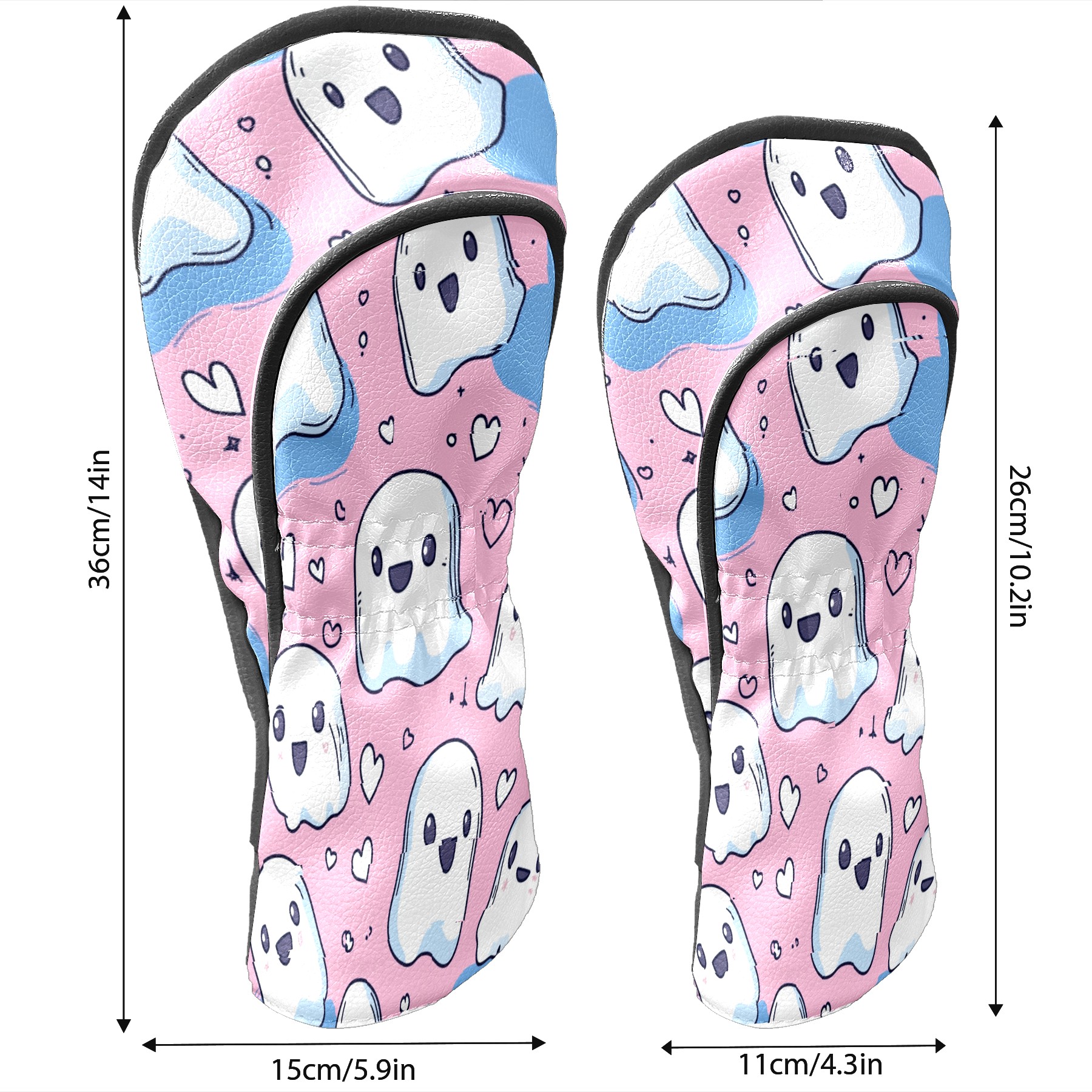 Golf Club Head Covers PinkBlue Heart Ghosts Design Premium Plush Velvet Lining, Waterproof Golf Headcovers Driver & Fairway Woods for Scratch Protection Novelty Gift for Men & Women