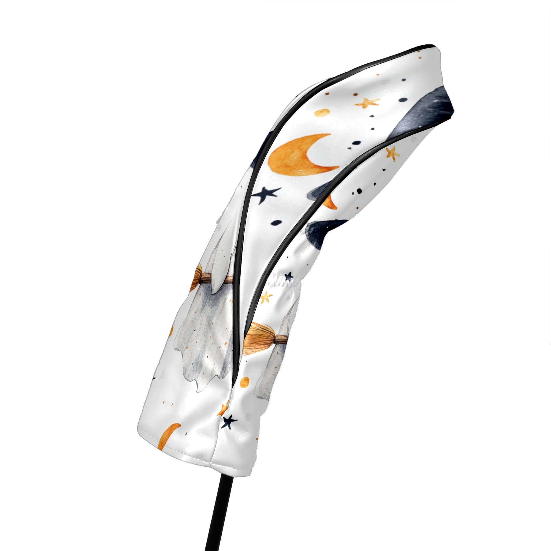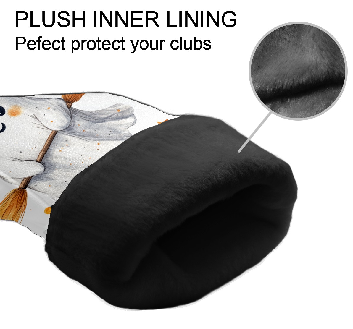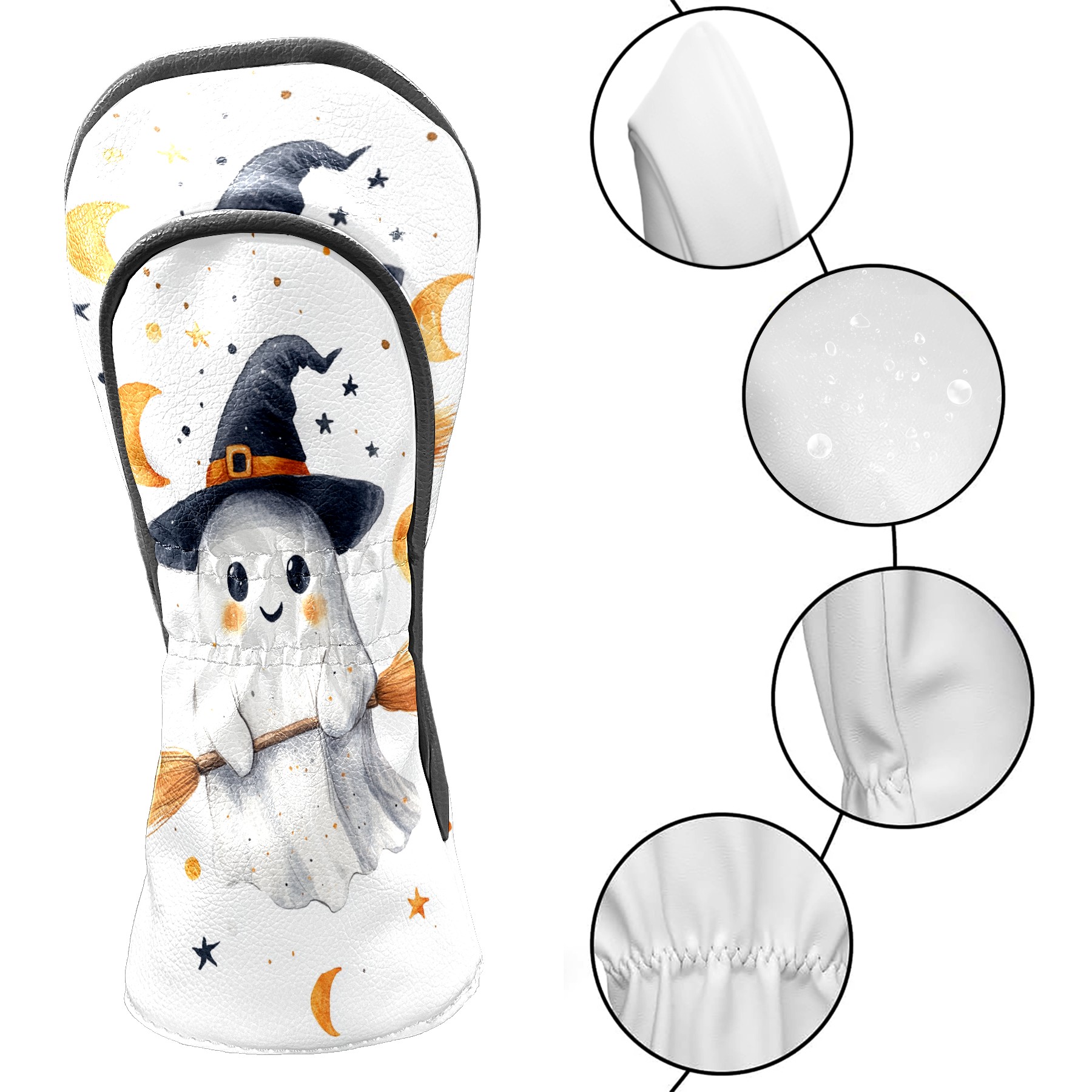 Golf Club Head Covers White Ghost Witch Broom Design Premium Plush Velvet Lining, Waterproof Golf Headcovers Driver & Fairway Woods for Scratch Protection Novelty Gift for Men & Women