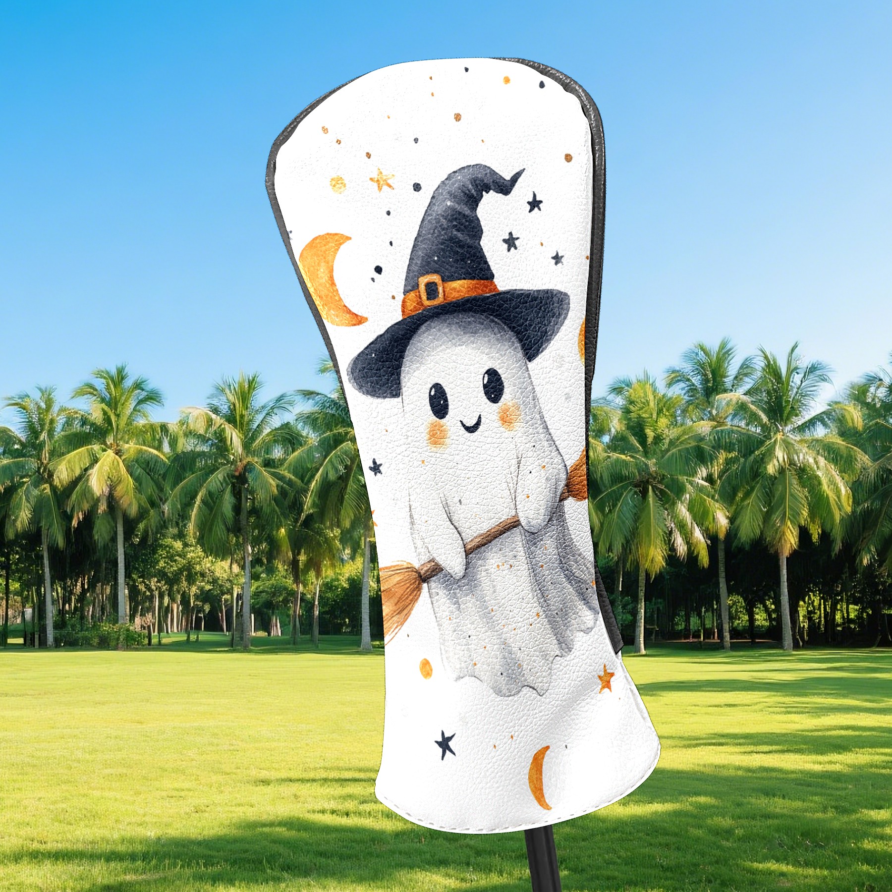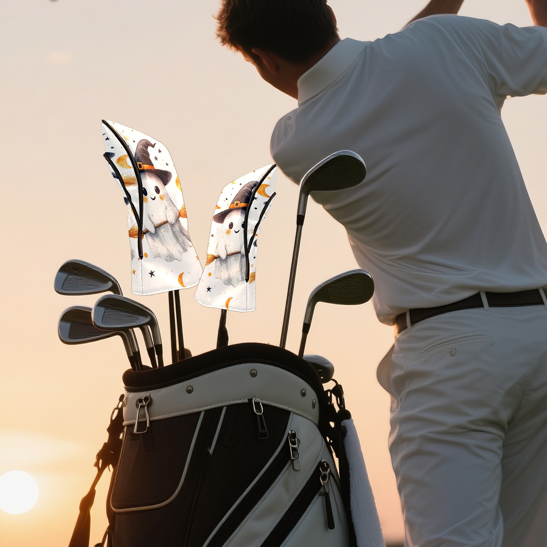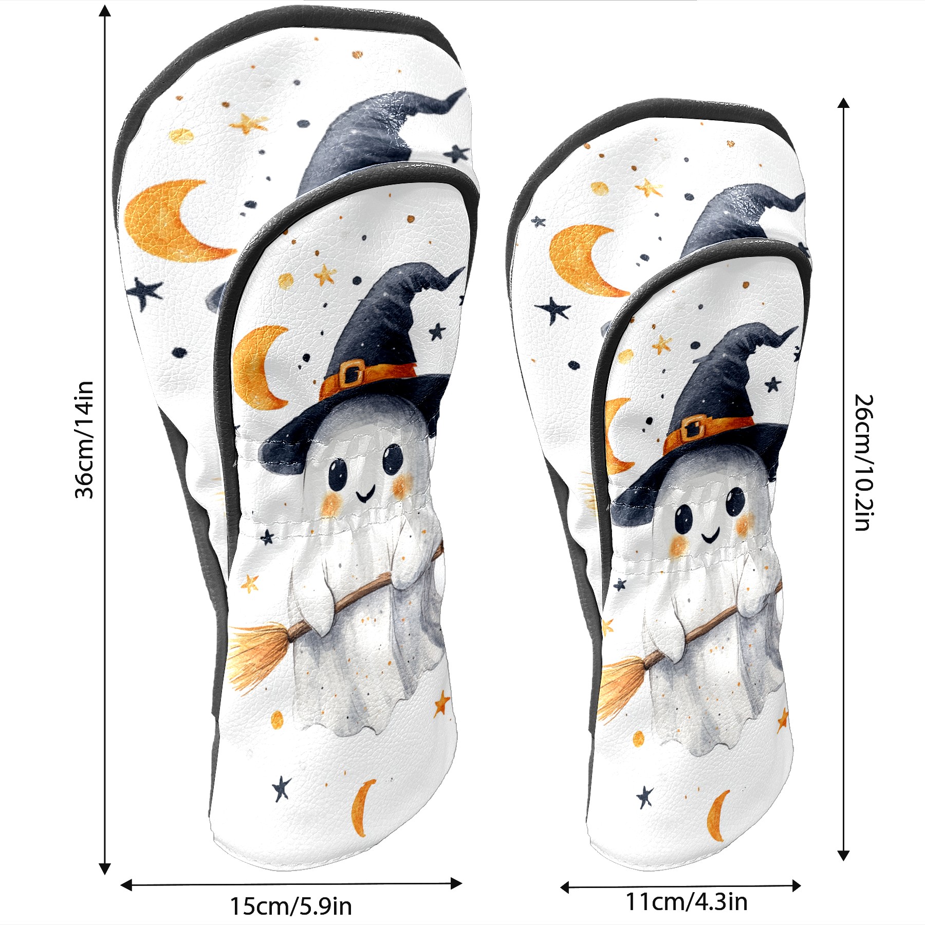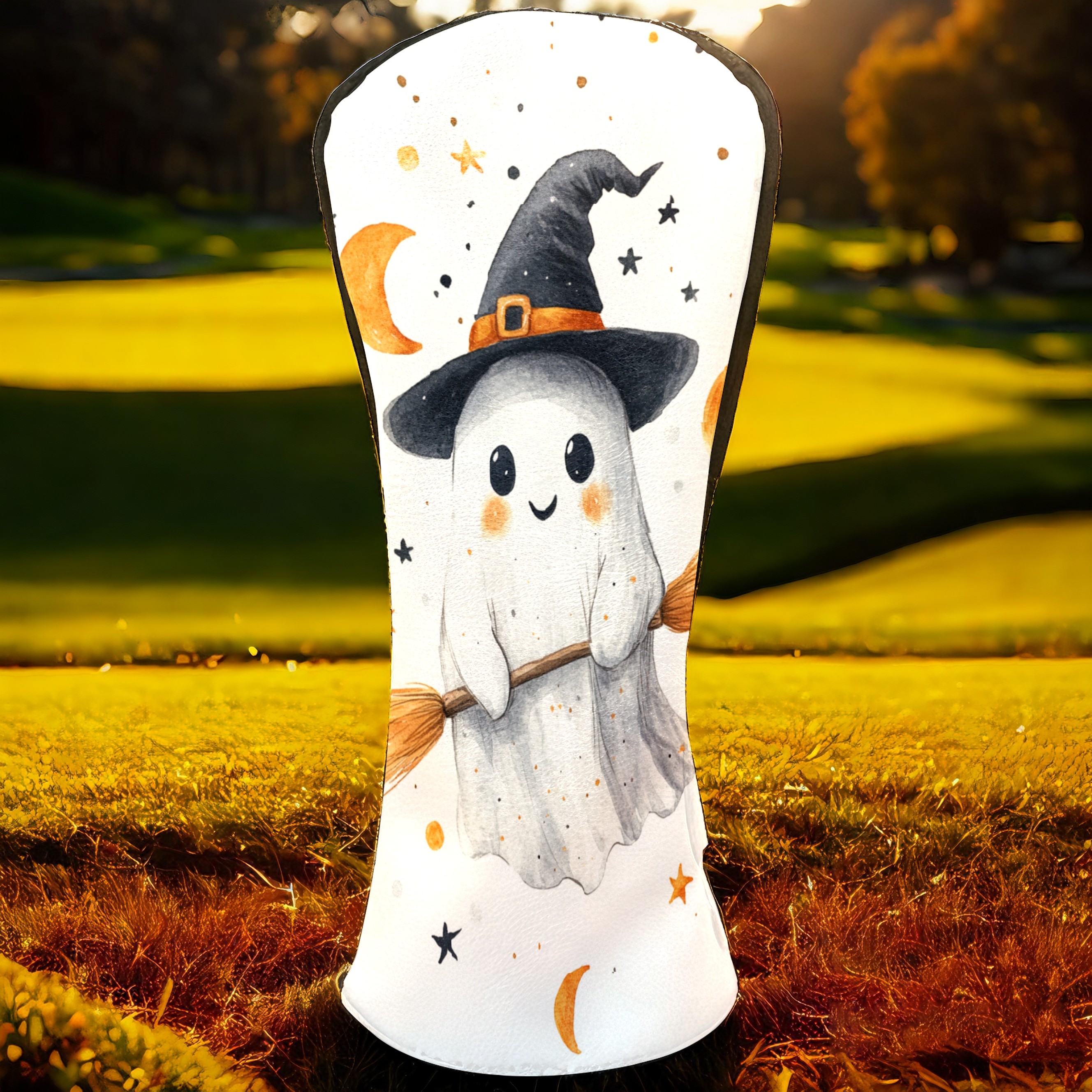 Golf Club Head Covers White Ghost Witch Broom Design Premium Plush Velvet Lining, Waterproof Golf Headcovers Driver & Fairway Woods for Scratch Protection Novelty Gift for Men & Women