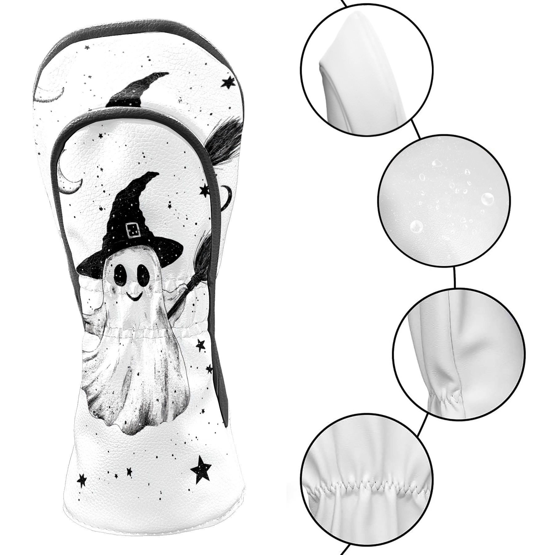 Golf Club Head Covers White Ghost Design Premium Plush Velvet Lining, Waterproof Golf Headcovers Driver & Fairway Woods for Scratch Protection Novelty Gift for Men & Women