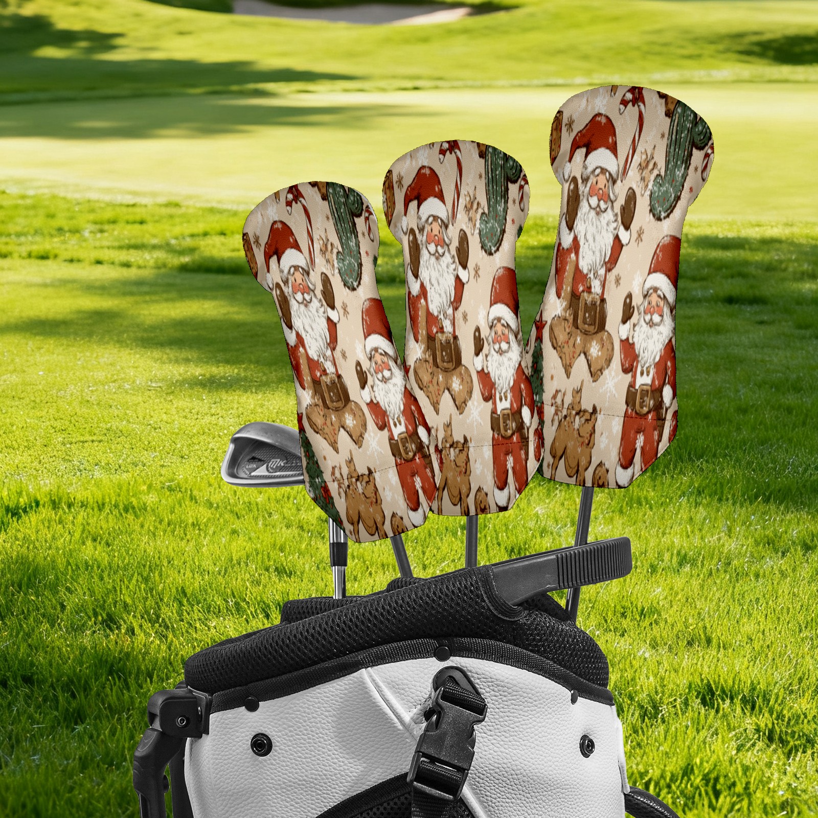 Golf Club Head Cover Waterproof Leather for Driver Golf Accessories Men Women Golf Gift for Golfers 1/3/5 Fairway Wood Cover Santa And Gifts Pattern