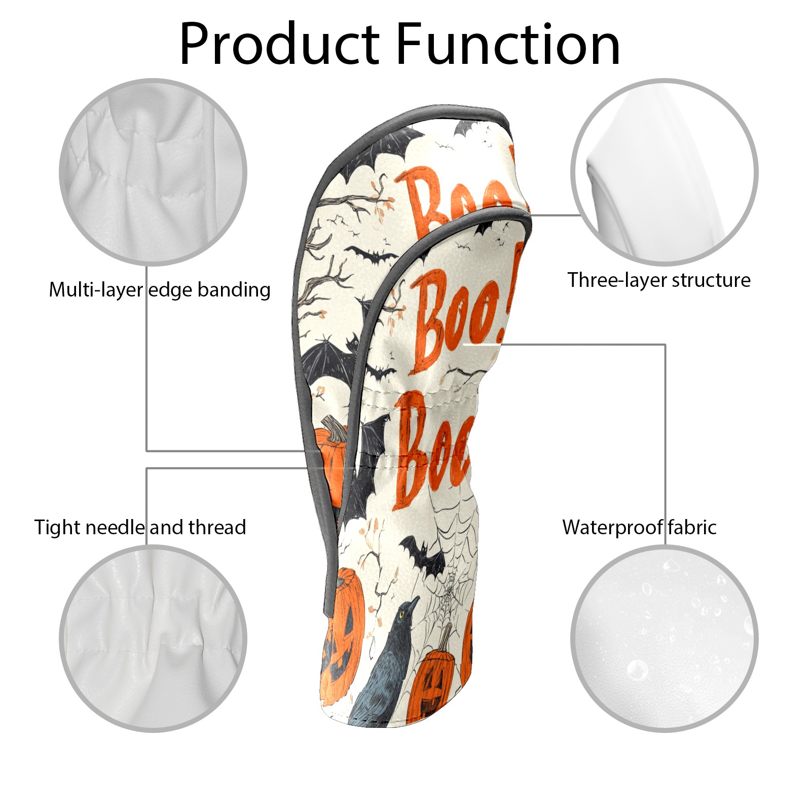 Golf Club Covers PU Leather Waterproof,Golf Club Head Covers for Fairway Woods and Hybrids Pumpkin Lantern Unisex Suitable for Most Brands