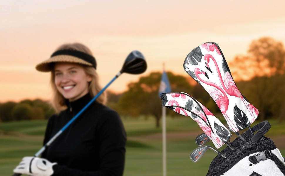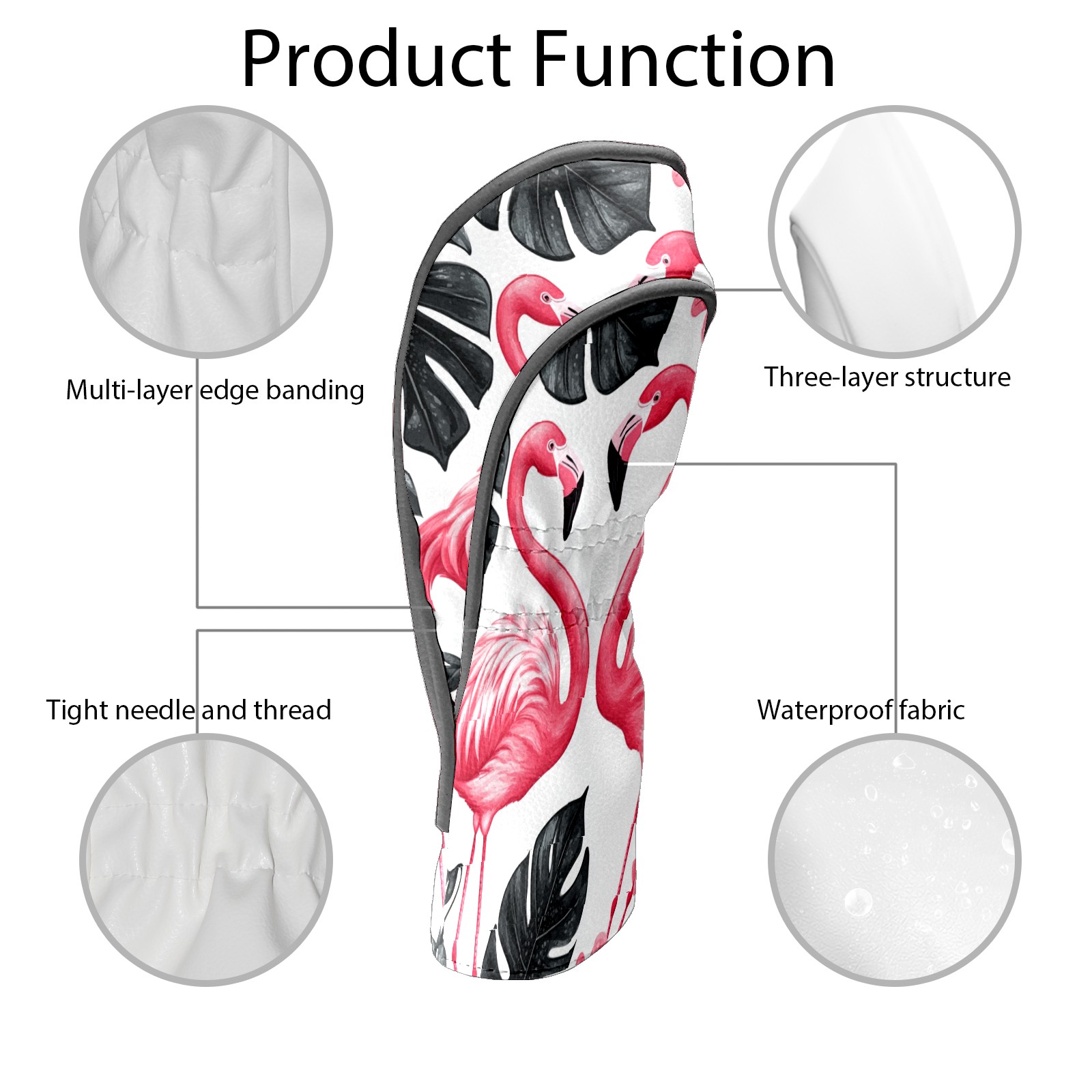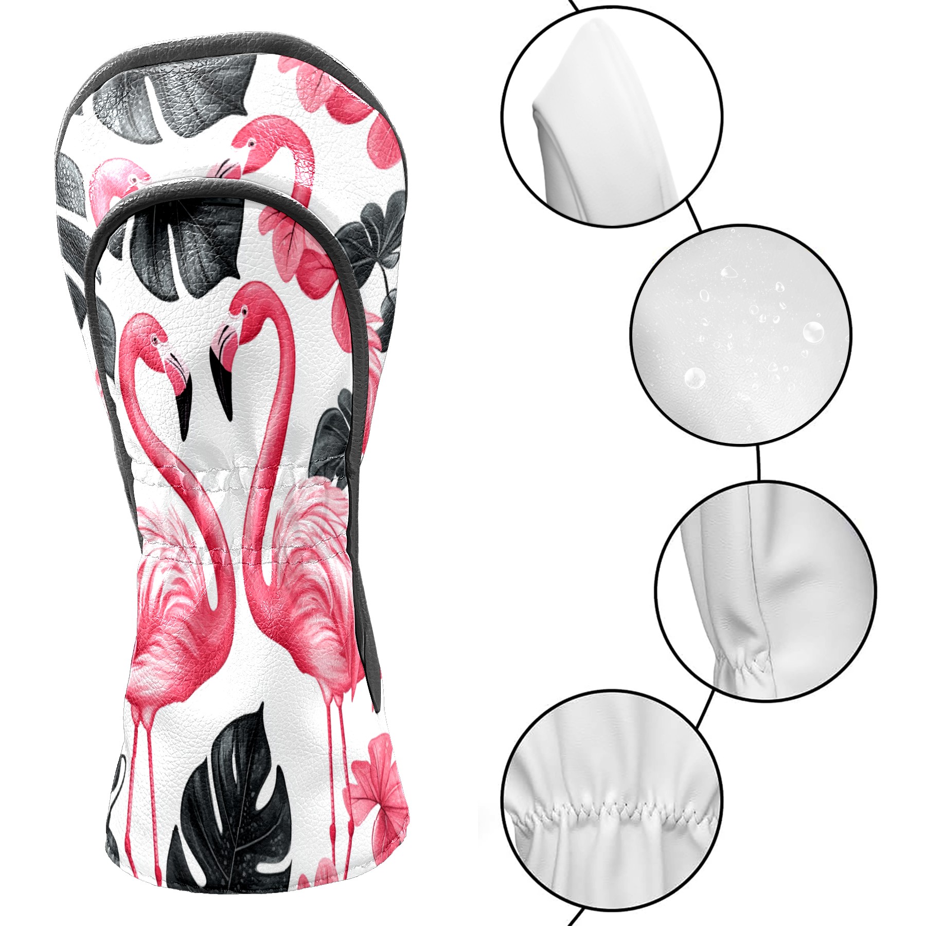 Golf Club Covers PU Leather Waterproof,Golf Club Head Covers for Fairway Woods and Hybrids Pink Flamingo Unisex Suitable for Most Brands