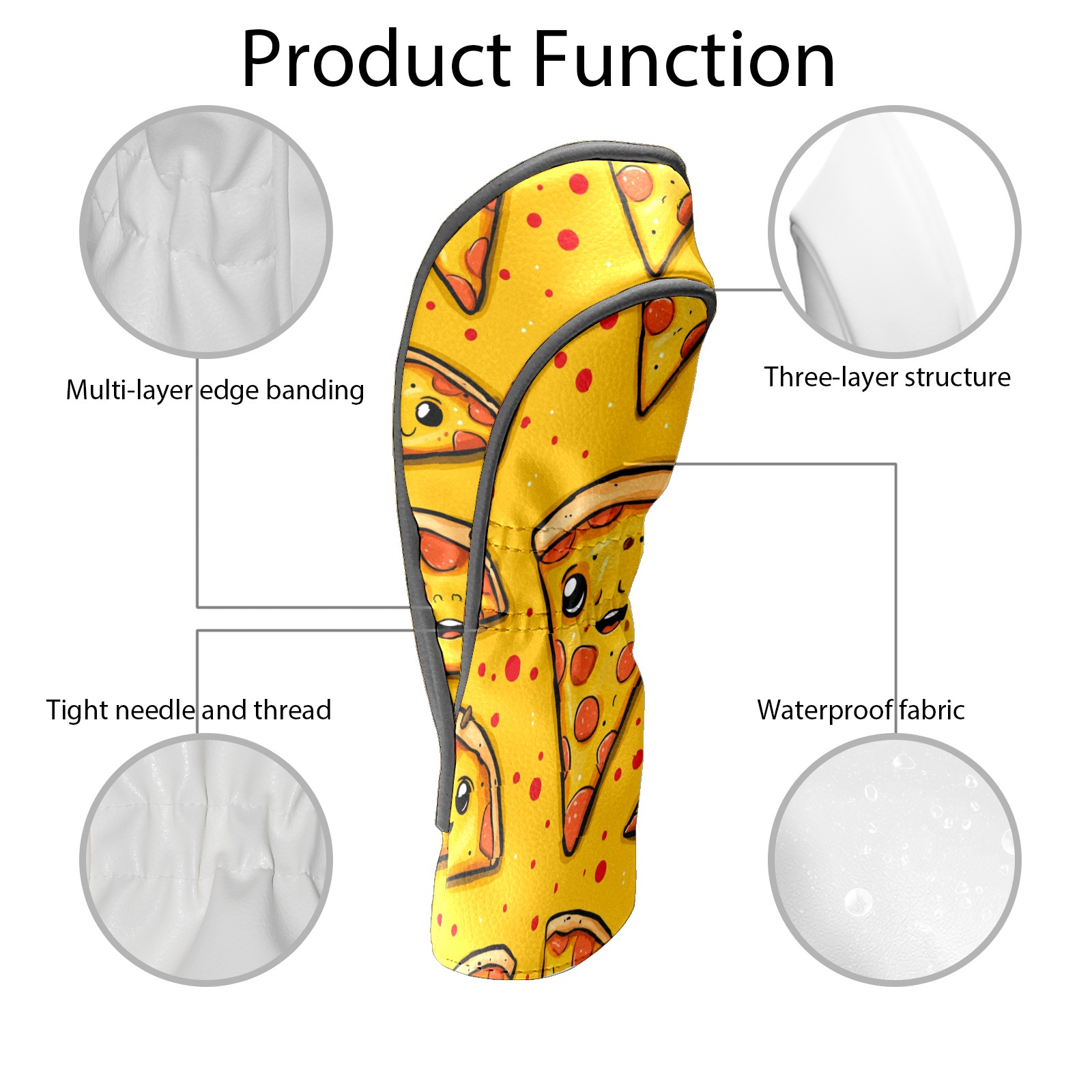 Golf Club Covers PU Leather Waterproof,Golf Club Head Covers for Fairway Woods and Hybrids Cute Cartoon Pizza Unisex Suitable for Most Brands