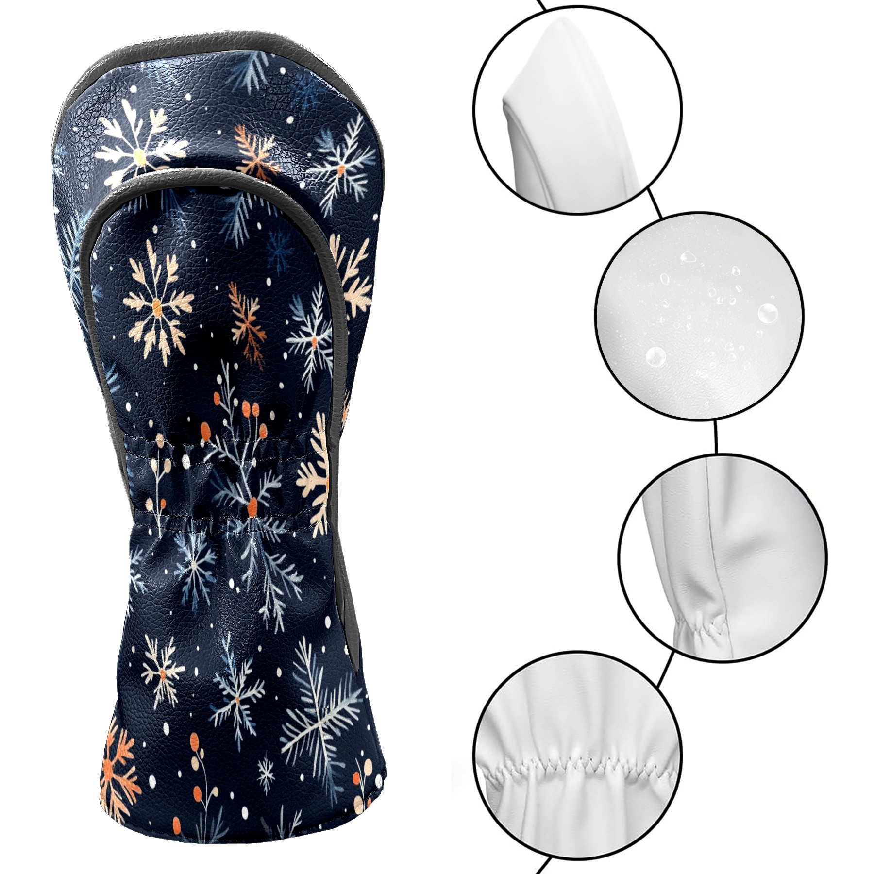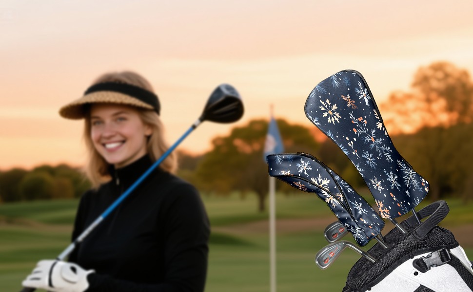 Golf Club Covers PU Leather Waterproof,Golf Club Head Covers for Fairway Woods and Hybrids Snowflake Pine Branches Unisex Suitable for Most Brands