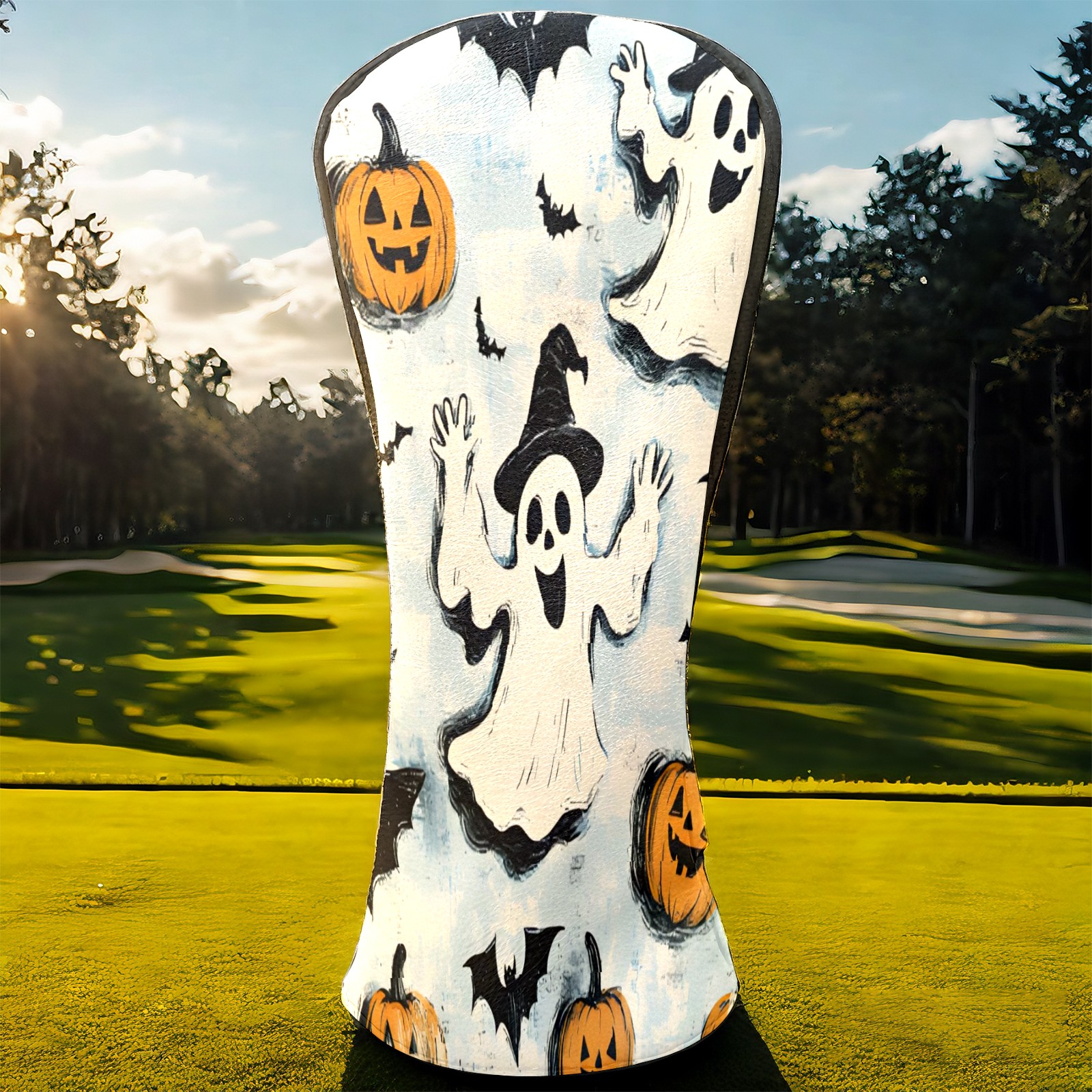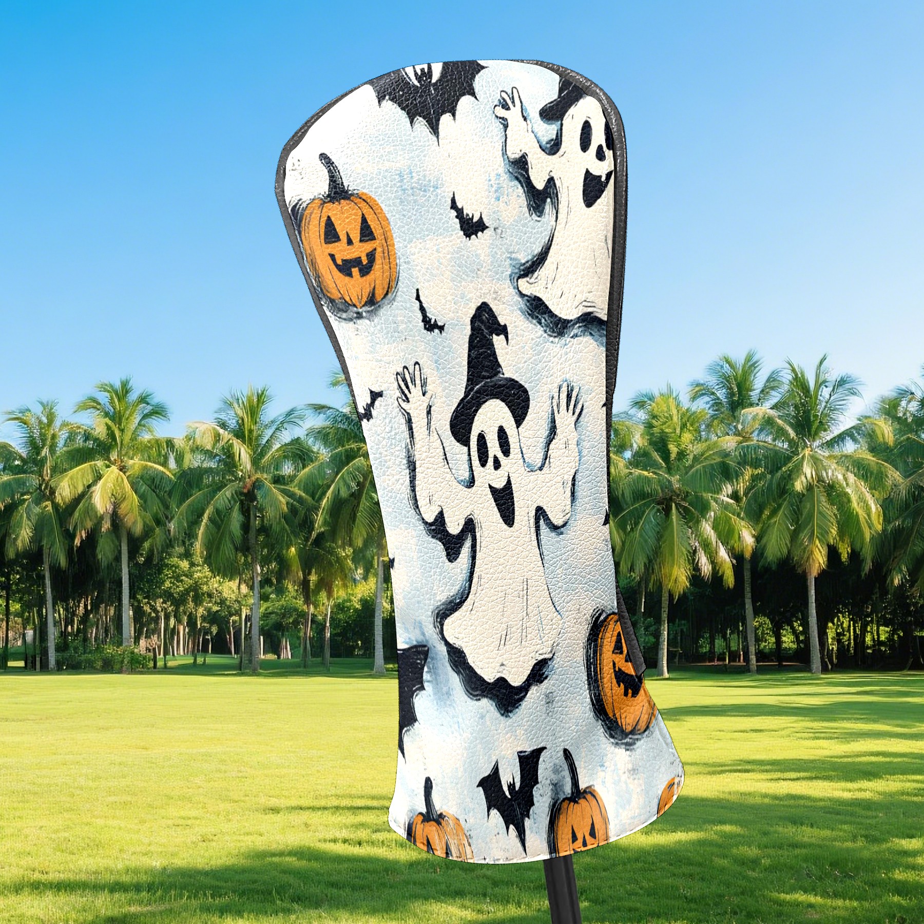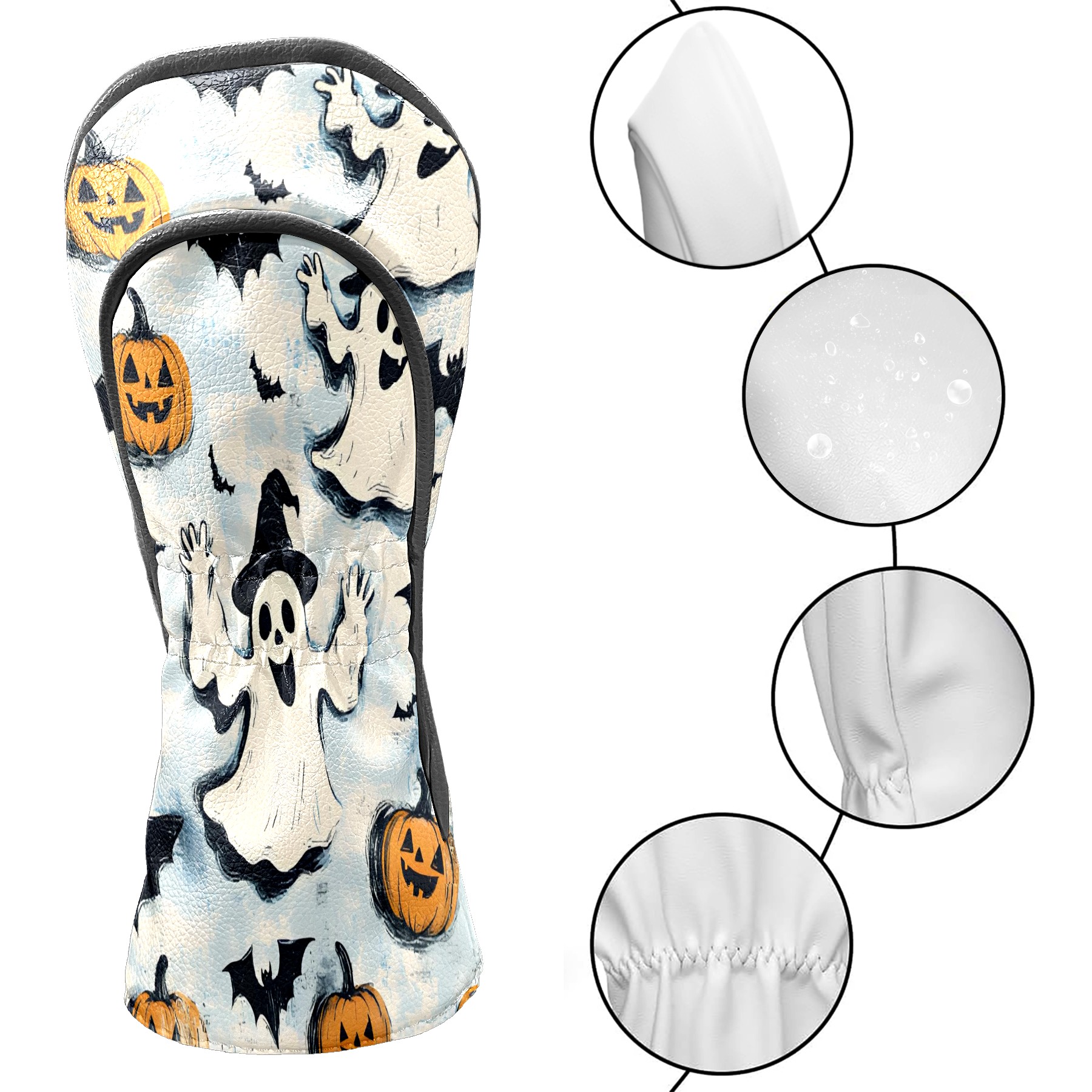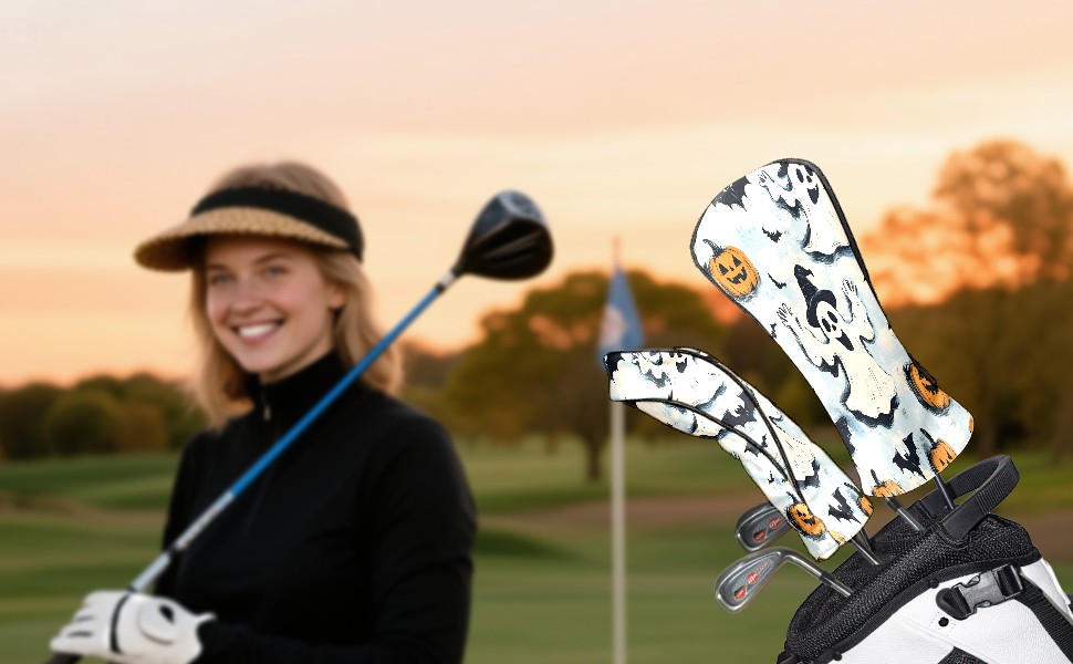 Golf Club Covers, LightBlue Ghost Premium PU Leather Driver Hybrid Putter Head Covers with Velvet Lining, Waterproof Golf Gifts for Men Women