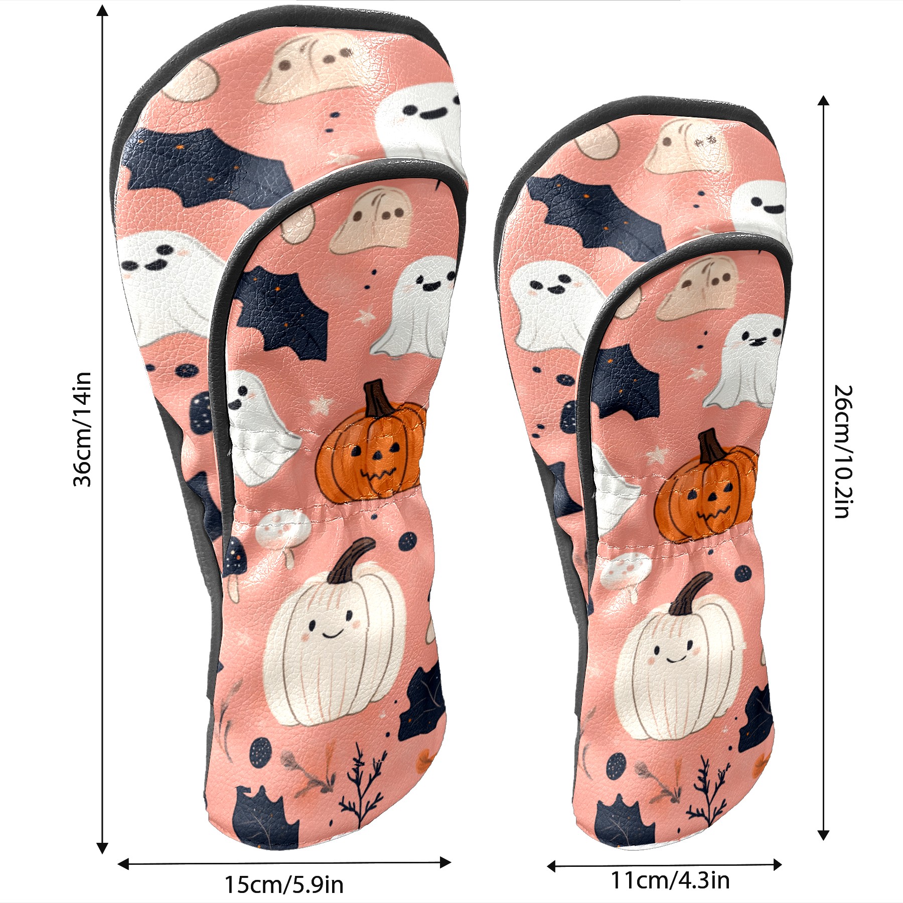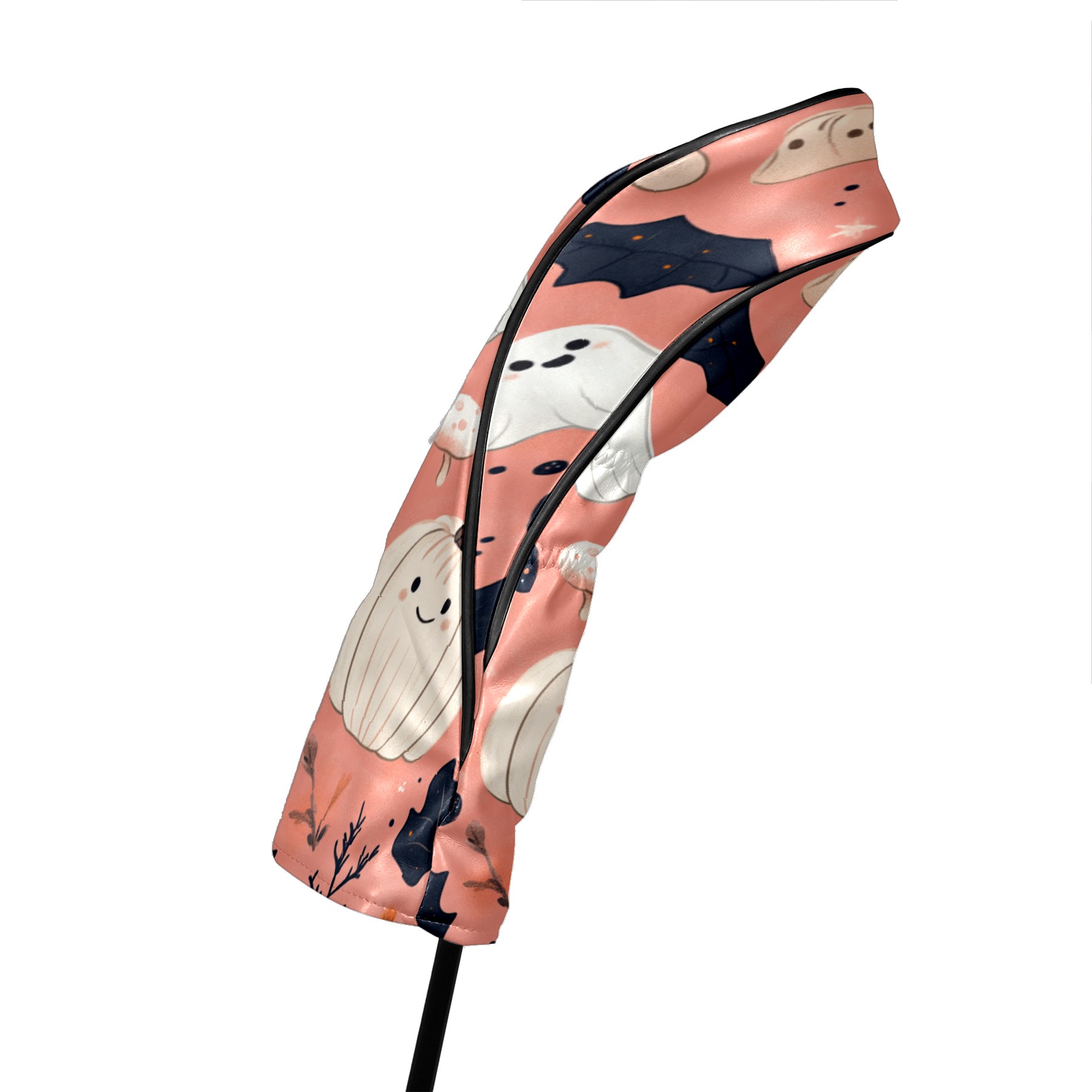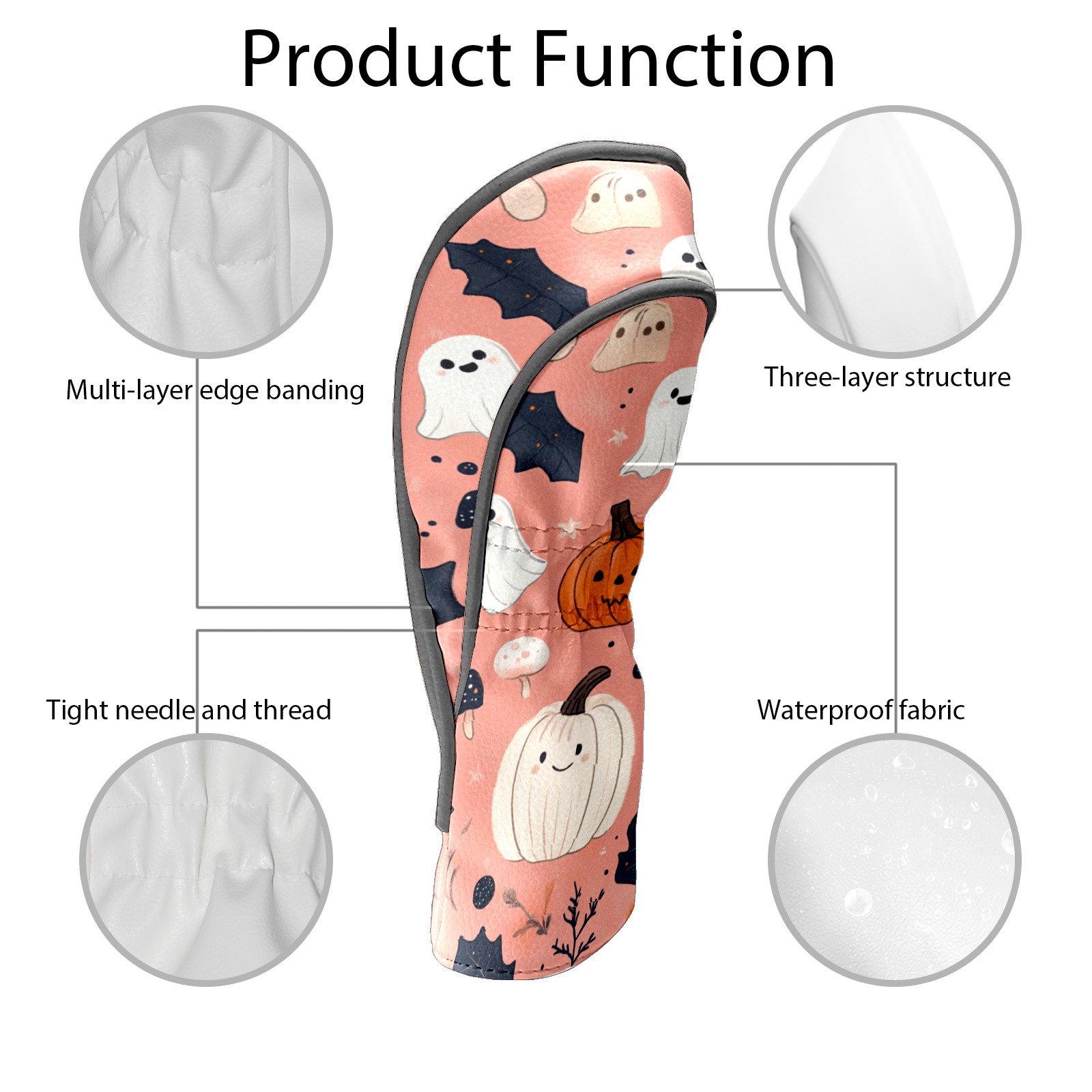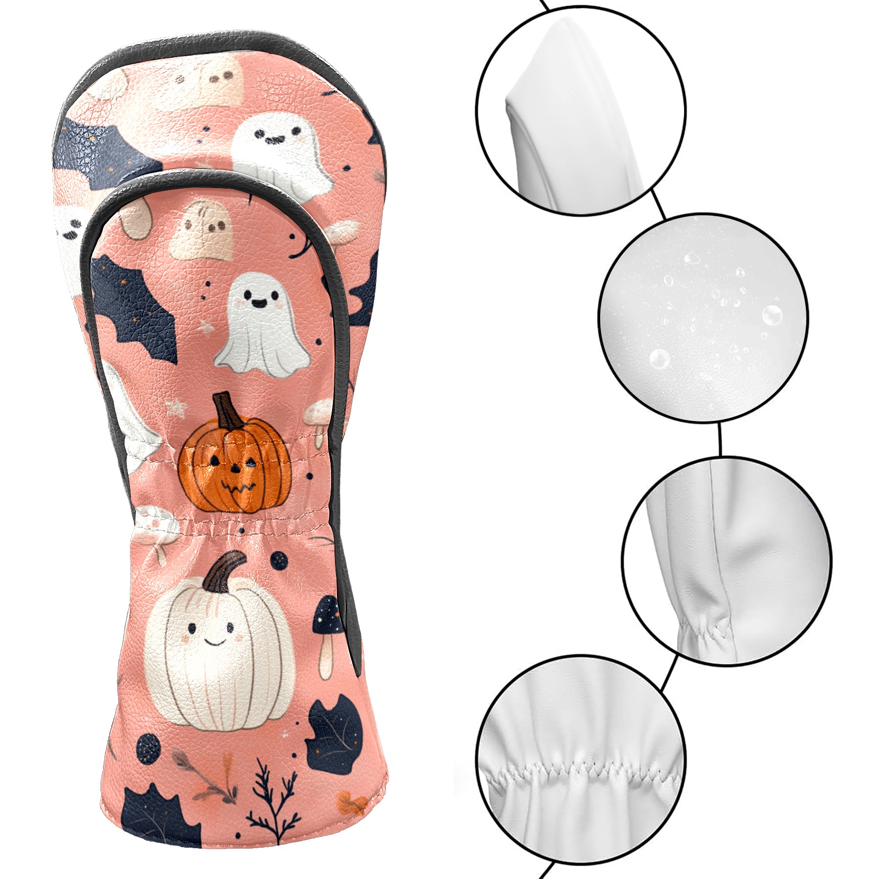 Golf Club Covers PU Leather Waterproof,Golf Club Head Covers for Fairway Woods and Hybrids Pink Halloween Pattern Unisex Suitable for Most Brands